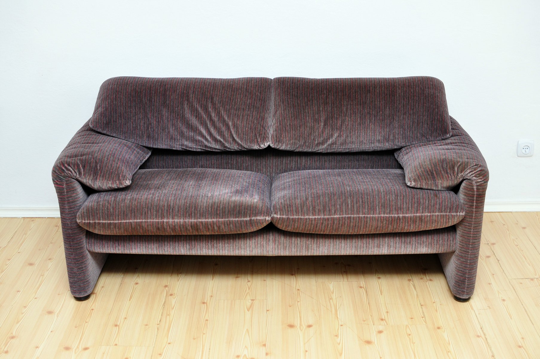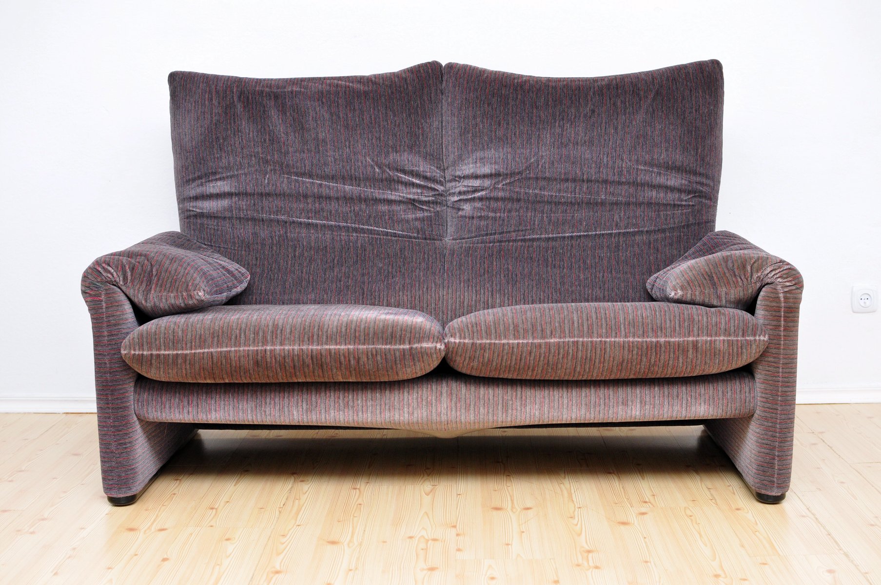 675 Samt Maralunga Zwei- Sitzer Sofa von Vico Magistretti für Cassina, 1970er