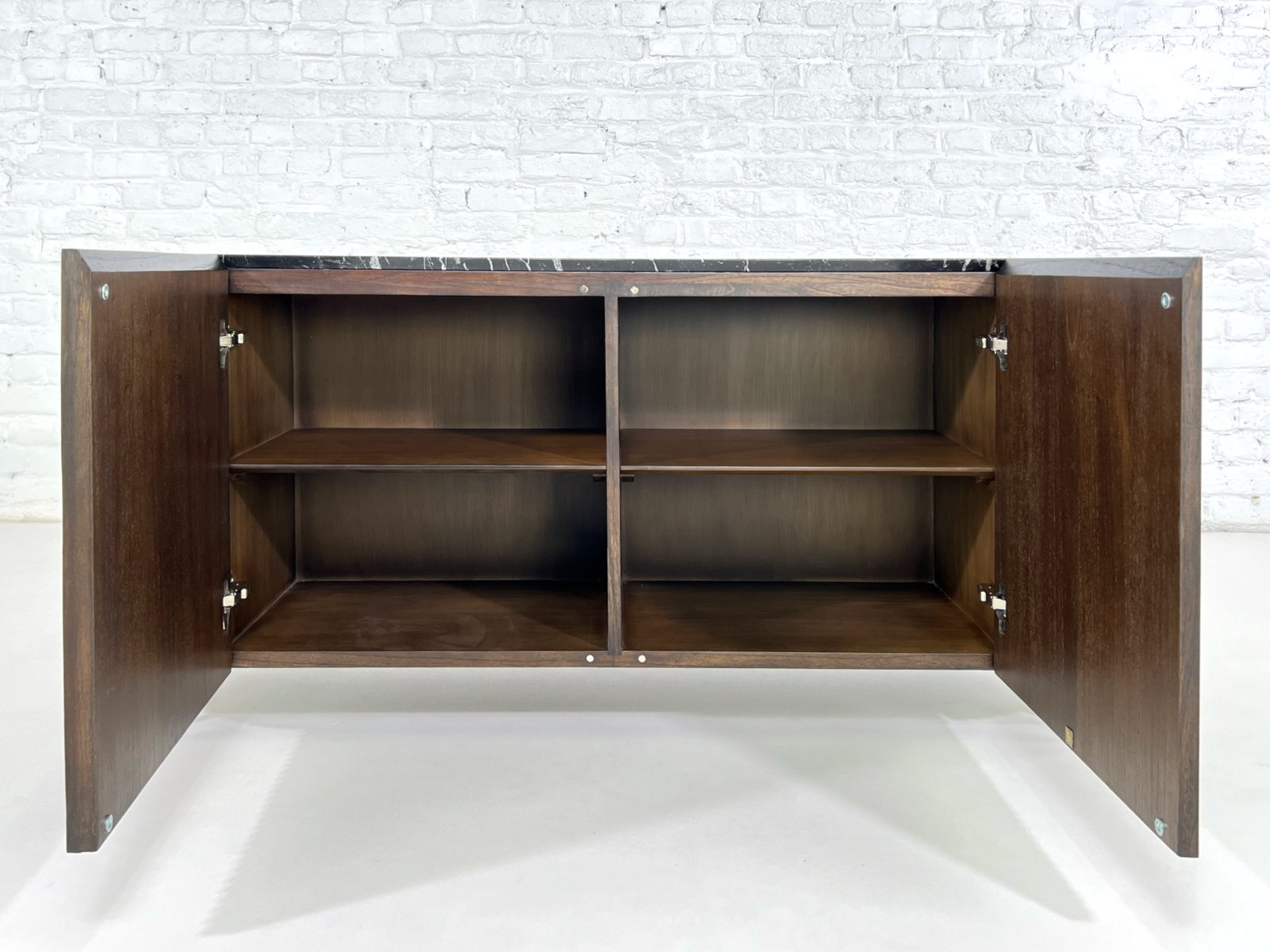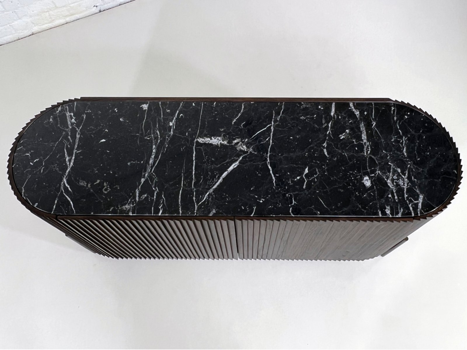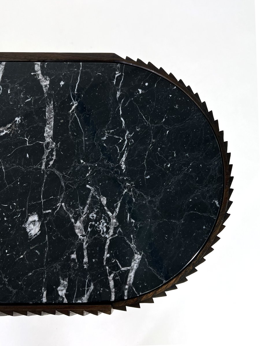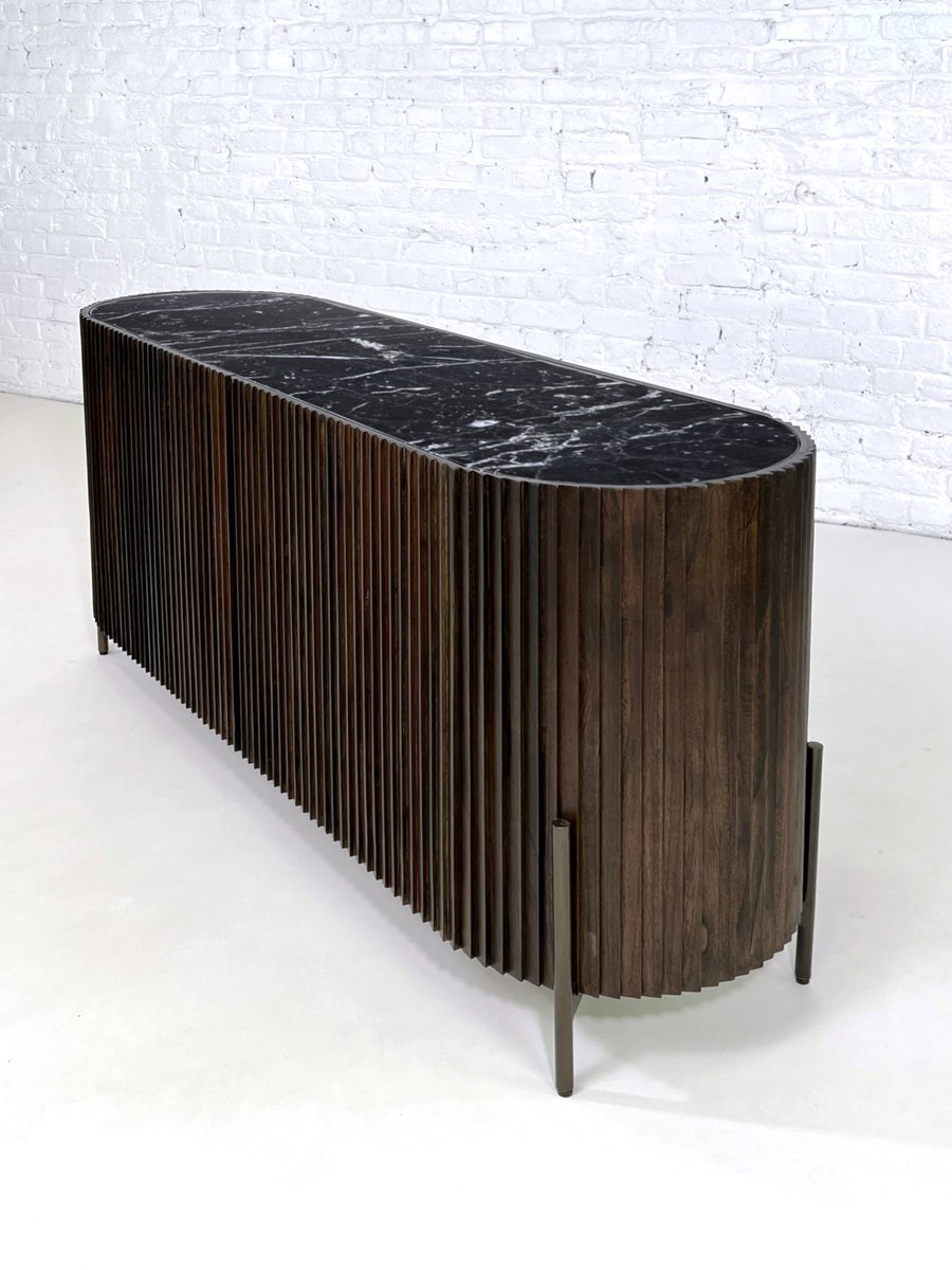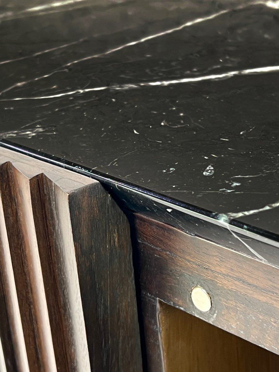 Abgerundetes brutalistisches Sideboard aus Holz & schwarzer Marmorplatte von Henri Paris
