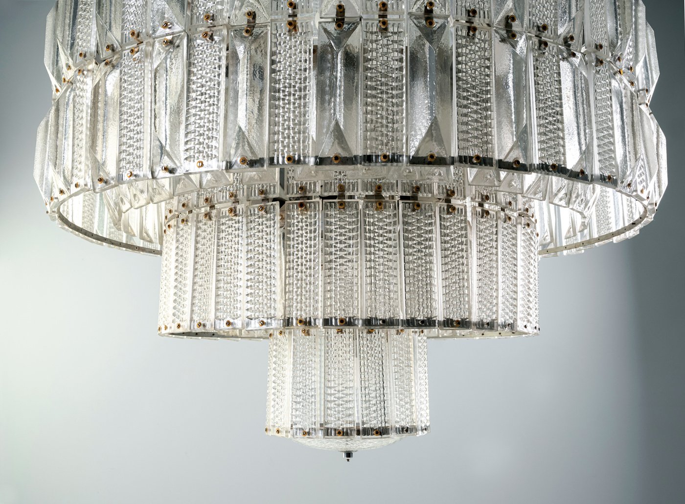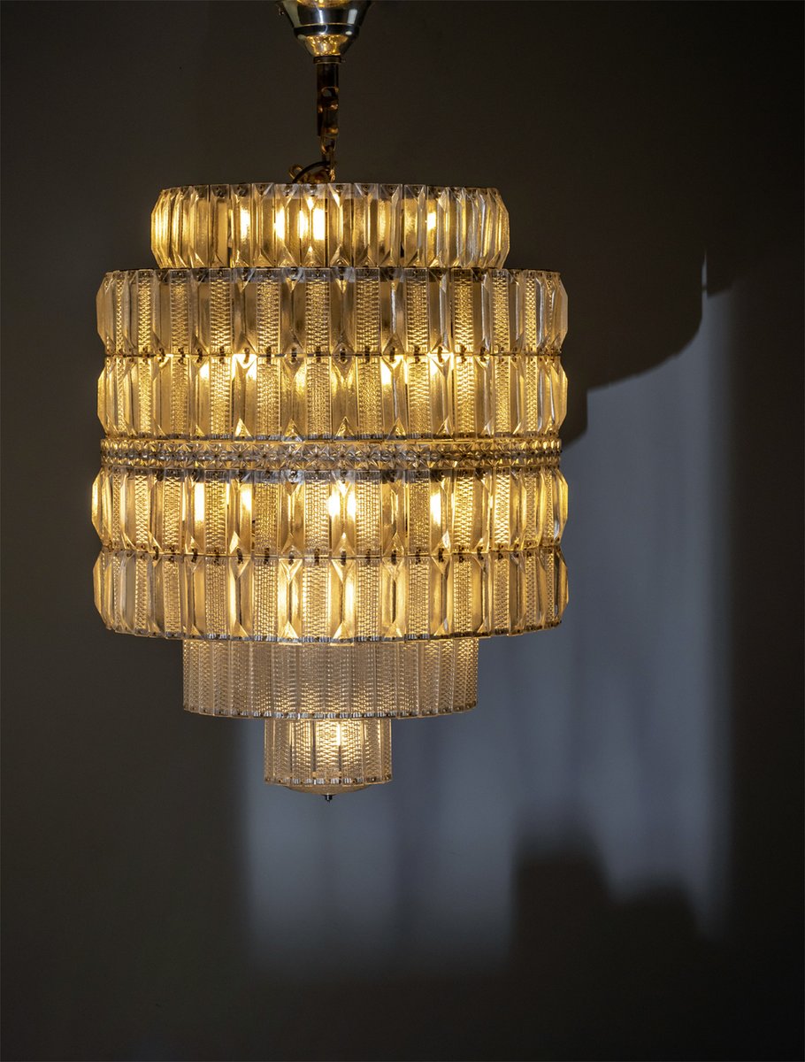 This tiered crystal chandelier was produced in the 1960s by Lustry Kamenický Šenov, a leading Czechoslovak manufacturer known for hotel and architectural lighting. Originally installed in a luxury interior, the piece demonstrates the precision and scale characteristic of mid-century Czech crystal craftsmanship.