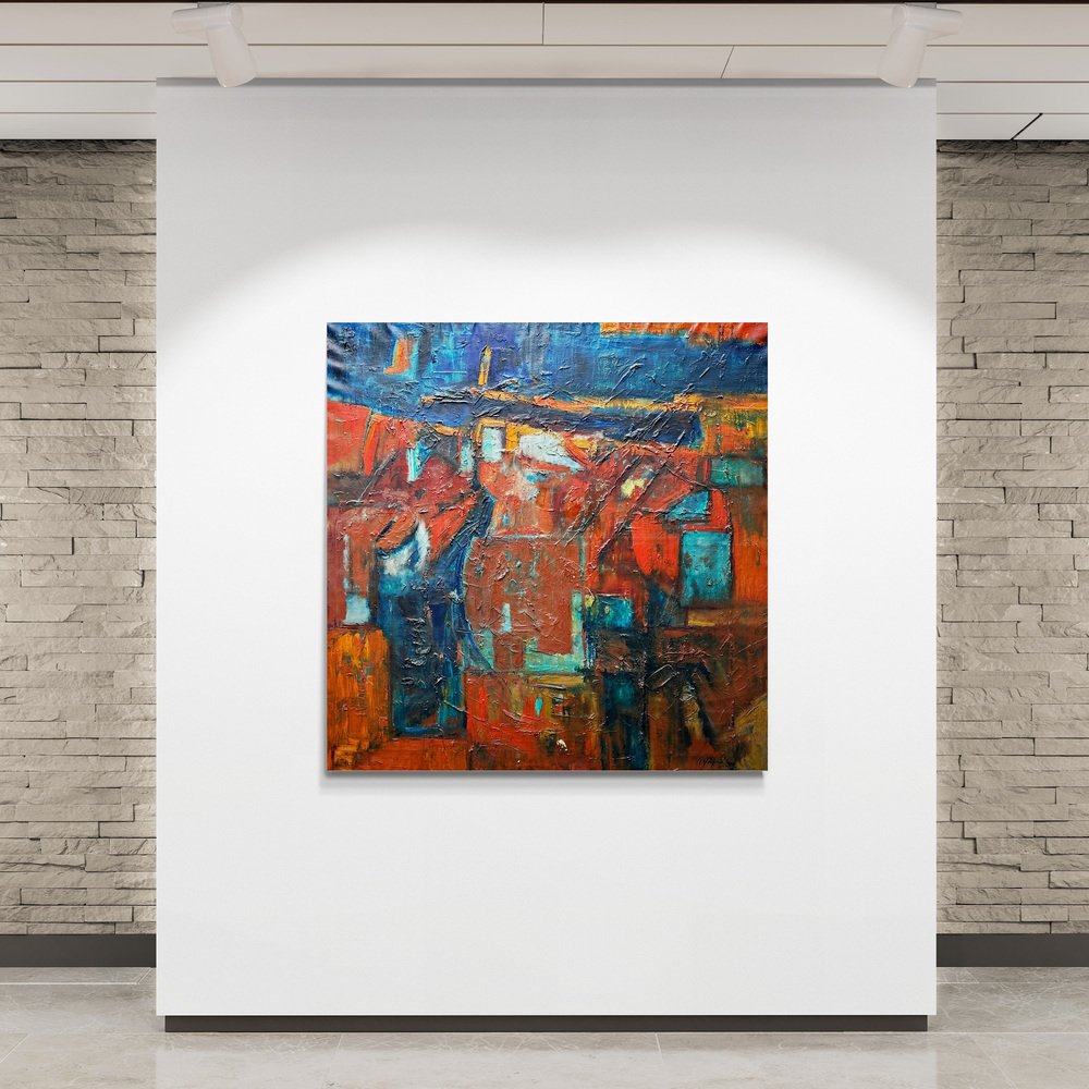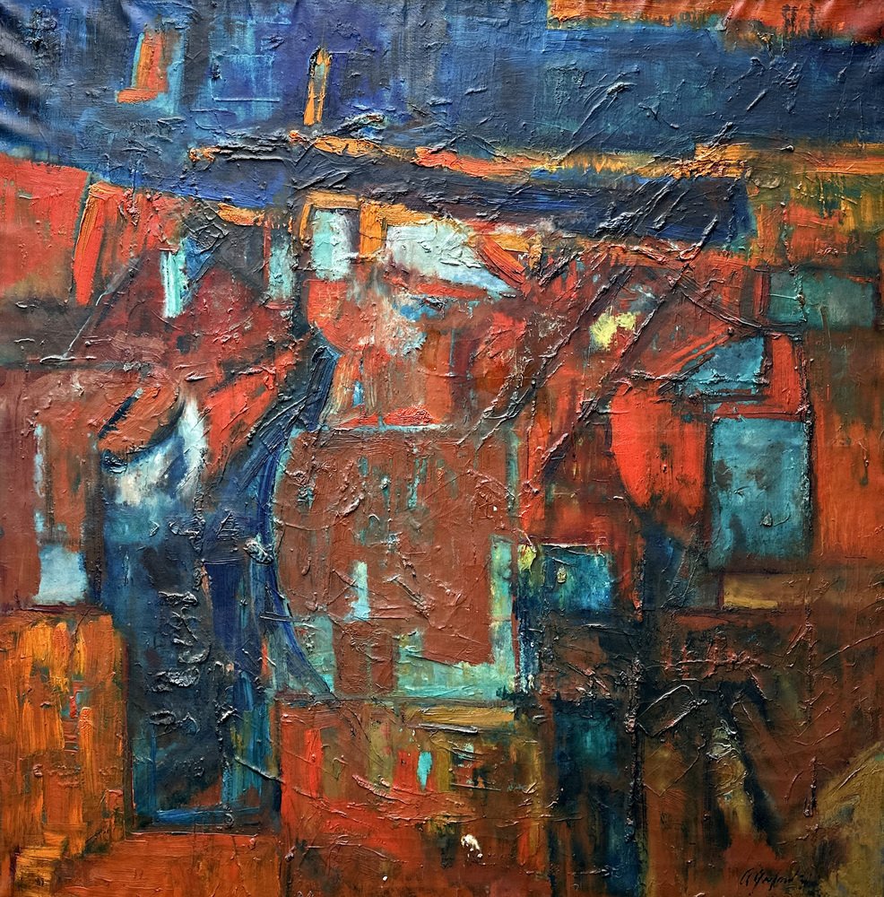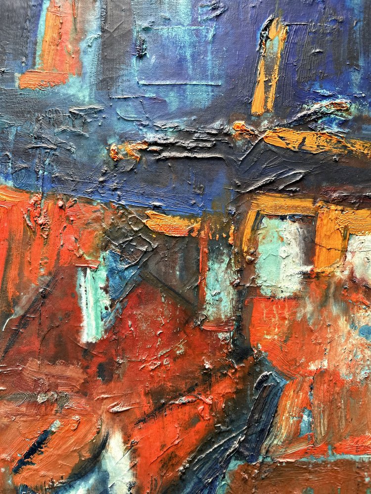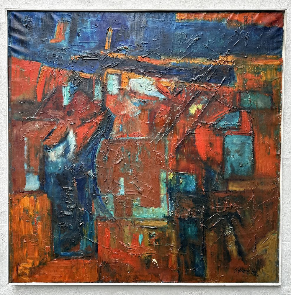 Adolf Gerhard, Komposition-Landschaft, Deutscher Expressionist, Großes Pastose Gemälde, 1970