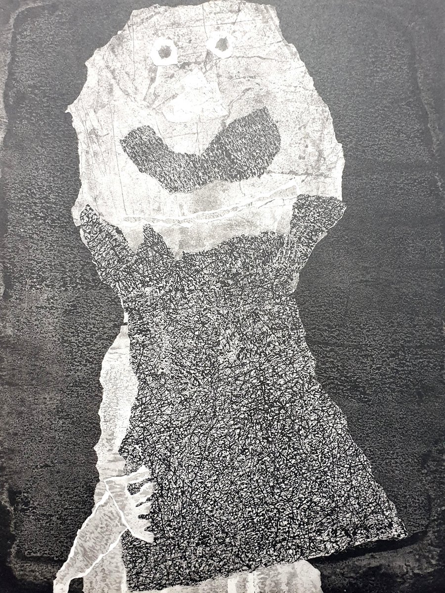 nach Jean Dubuffet - Mann - Pochoir 1960 Maße: 32 x 25 cm Edition: G. di San Lazzaro. Jean Dubuffet (1901 - 1985) Jean Dubuffet wurde am 31. Juli 1901 in Le Havre, Frankreich, geboren. In seiner Jugend besuchte er Kunstkurse und zog 1918 nach Paris, um an der Académie Julian zu studieren, die er aber nach sechs Monaten wieder verließ. Während dieser Zeit lernte Dubuffet Raoul Dufy, Max Jacob, Fernand Léger und Suzanne Valadon kennen und war fasziniert von Hans Prinzhorns Buch über psychopathische Kunst. Er reiste 1923 nach Italien und 1924 nach Südamerika. Dann gab Dubuffet die Malerei für etwa zehn Jahre auf, arbeitete als Industriezeichner und später im Weingeschäft der Familie. Erst 1942 widmete er sich dem Künstlerdasein. Dubuffets erste Einzelausstellung findet 1944 in der Galerie René Drouin, Paris, statt; die Pierre Matisse Gallery ermöglicht ihm 1947 seine erste Einzelausstellung in New York. In den 1940er Jahren verkehrte der Künstler mit André Breton, Georges Limbour, Jean Paulhan und Charles Ratton, und sein Stil und seine Thematik sind Paul Klee zu verdanken. Ab 1945 sammelte er Art Brut, spontane, unmittelbare Arbeiten von Unbelehrbaren, wie Geisteskranken und Kindern. Außerdem gründete er zusammen mit Schriftstellern, Kritikern und Händlern aus dadaistischen und surrealistischen Kreisen die Organisation Compagnie de l'Art Brut (1948-51). Zur ersten öffentlichen Art Brut-Ausstellung in der Galerie René Drouin 1949 veröffentlichte Dubuffet ein Manifest, in dem er die Überlegenheit des Stils gegenüber der offiziell anerkannten Kunst proklamierte. Von 1951 bis 1952 lebt Dubuffet in New York. Danach kehrt er nach Paris zurück, wo 1954 eine Retrospektive seines Werkes im Cercle Volney stattfindet. Seine erste museale Retrospektive fand 1957 im Schlo Morsbroich (heute Museum Morsbroich), Leverkusen, statt. Es folgten Ausstellungen im Musée des arts décoratifs, Paris (1960-61), im Museum of Modern Art, New York, und im Art Institute of Chicago (1962), im Palazzo Grassi, Venedig (1964), in der Tate Gallery, London, und im Stedelijk Museum, Amsterdam (1966), sowie im Guggenheim Museum (1966-67). Eine Sammlung von Dubuffets Schriften, Prospectus et tous écrits suivants (Prospectus und alle folgenden Texte), wurde 1967 veröffentlicht, im selben Jahr, in dem er mit seinen architektonischen Strukturen begann. Bald darauf begann er mit zahlreichen Aufträgen für monumentale Außenskulpturen. 1971 entstehen seine ersten Theaterrequisiten, die ''practicables'' Eine Dubuffet-Retrospektive wurde in der Akademie der Künste, Berlin, im Museum moderner Kunst, Wien, und in der Joseph-Haubrichkunsthalle, Köln (1980-81), gezeigt. 1981 würdigte das Guggenheim Museum den 80. Geburtstag des Künstlers mit einer Ausstellung. Geburtstag mit einer Ausstellung. Auch das Centre Georges Pompidou widmete ihm eine große Retrospektive (2001). Dubuffet starb am 12. Mai 1985 in Paris.