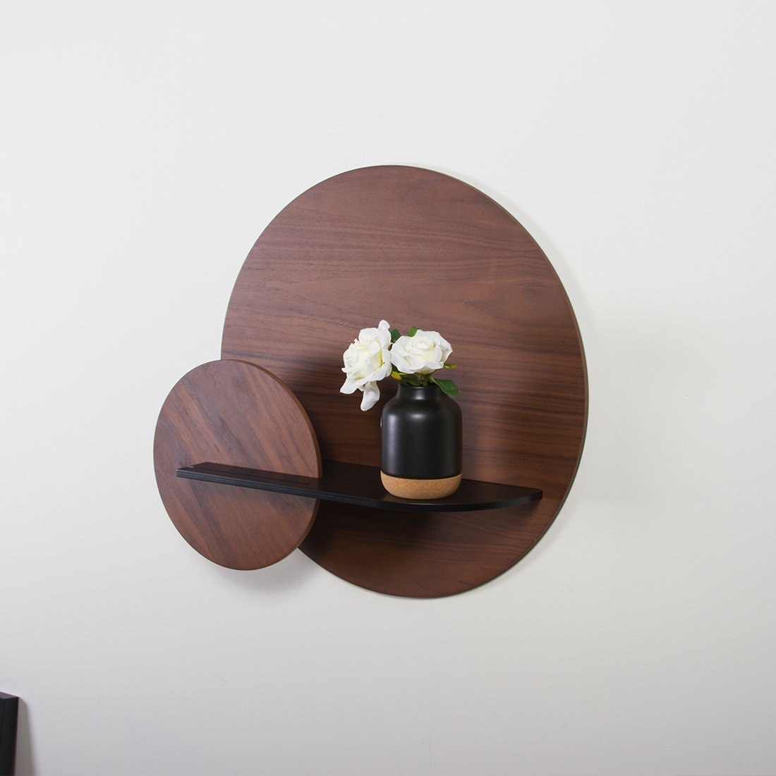 - Walnut back panel, Walnut shelf cover, Walnut Circle front panel.