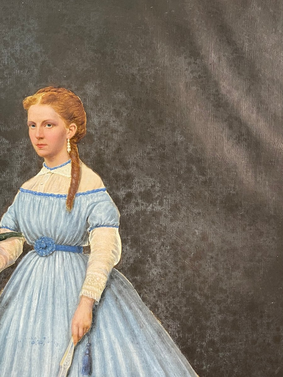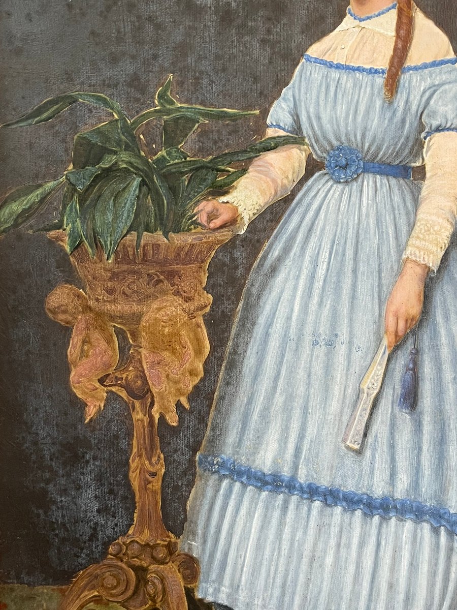 Beautiful gouache technique painting representing a distinguished young lady.