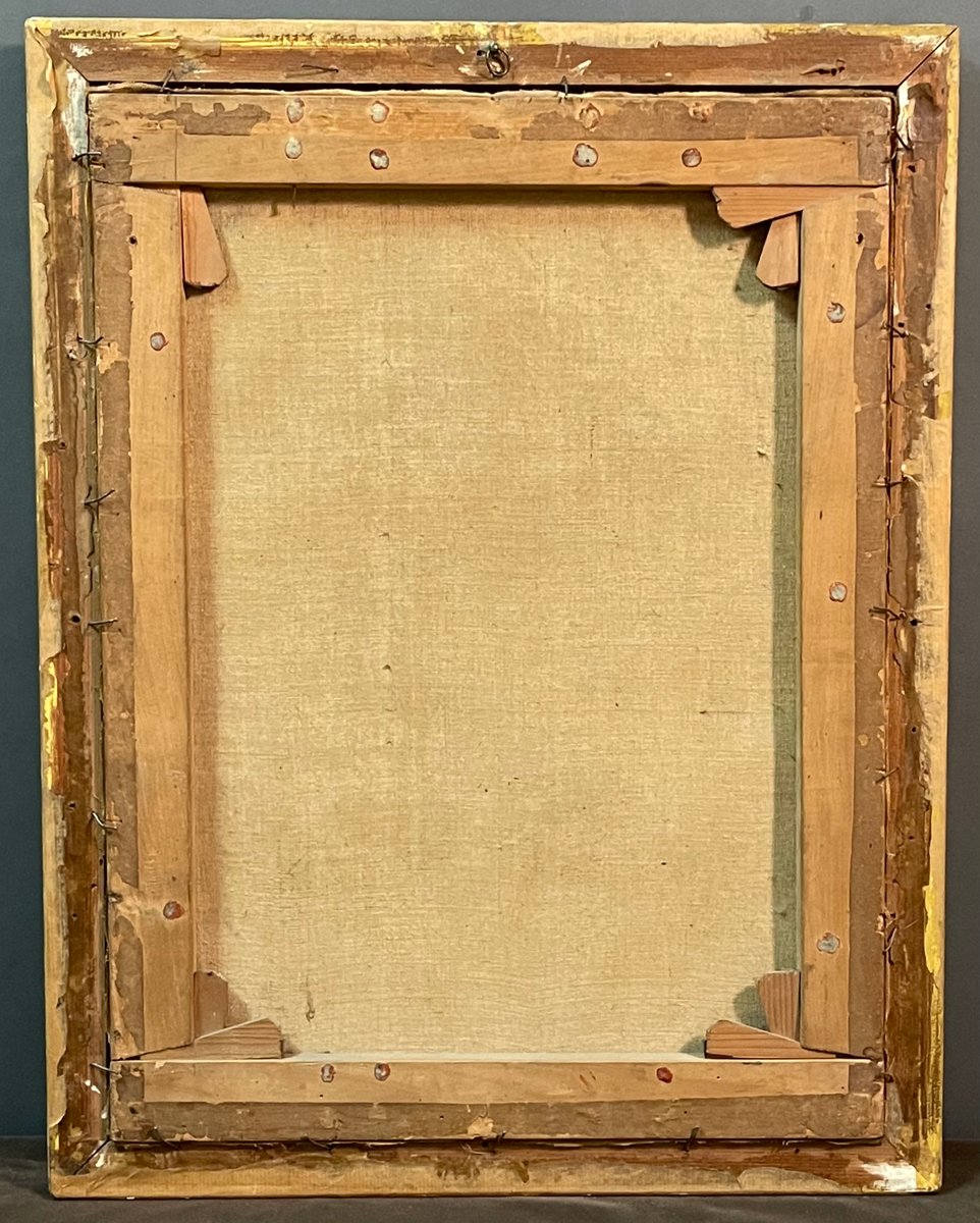 The painting comes with a beautiful coeval wood and pure gold gilded pastille frame.