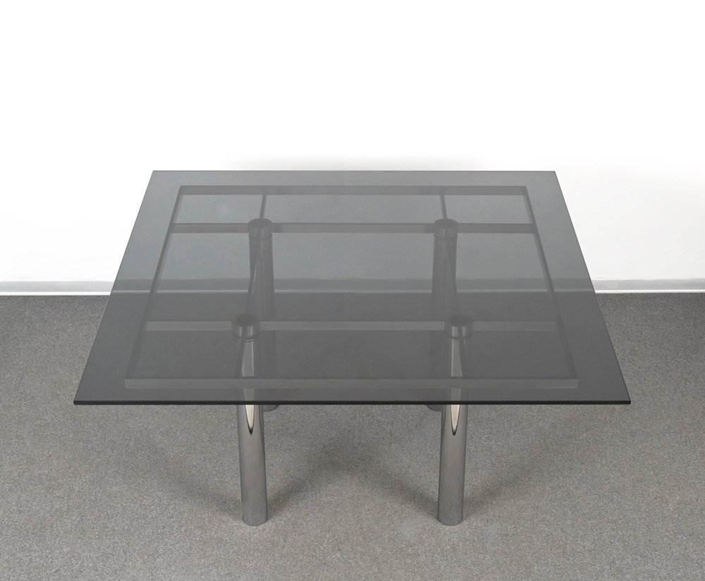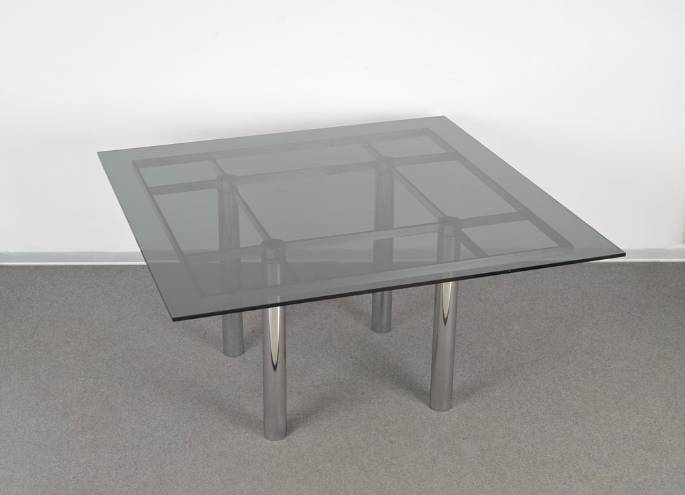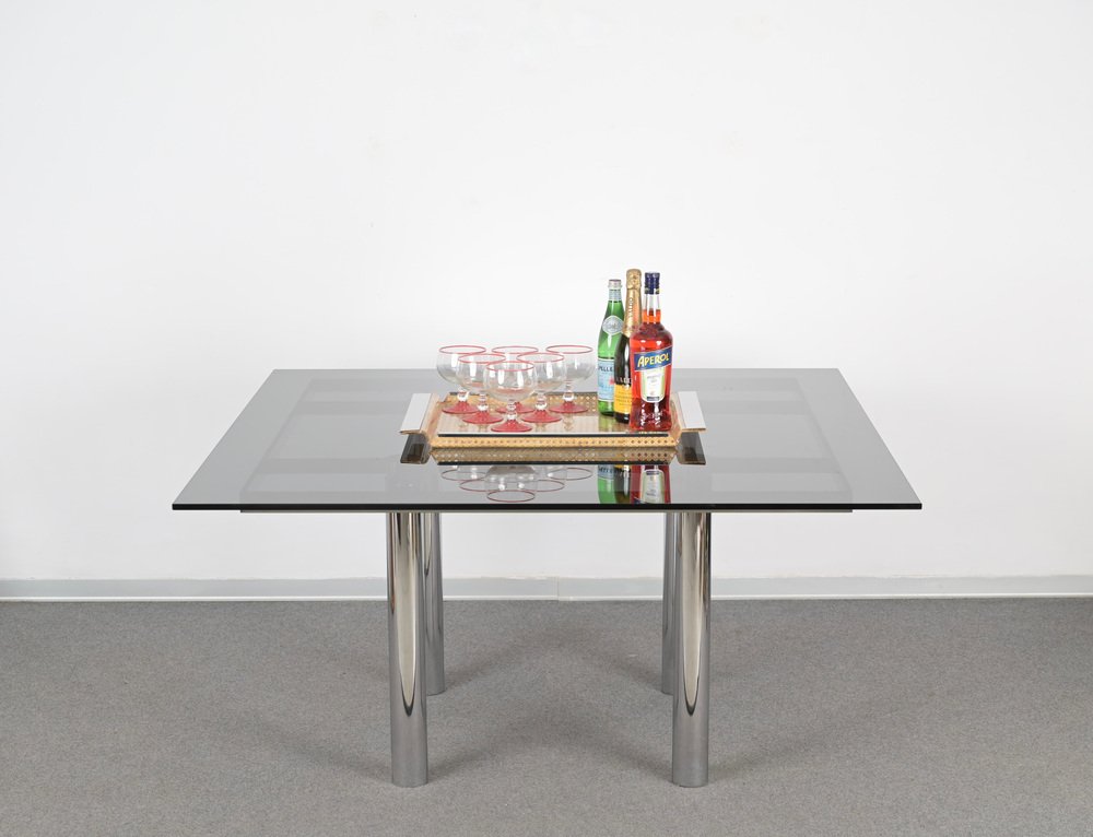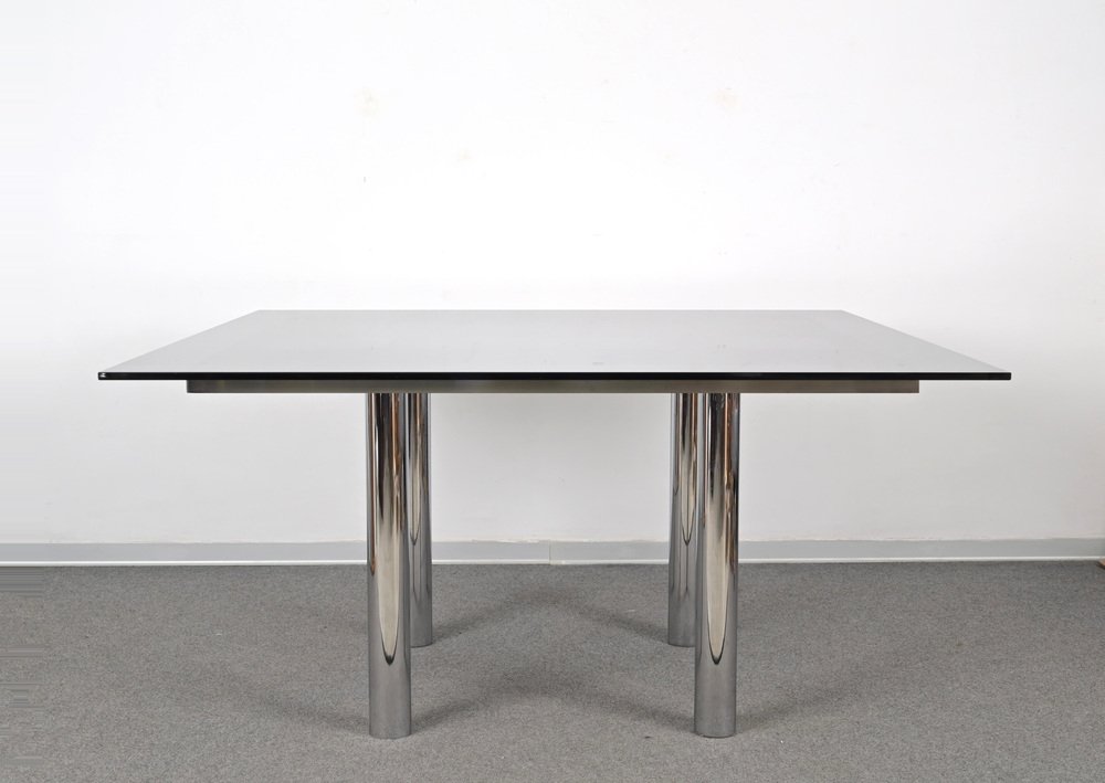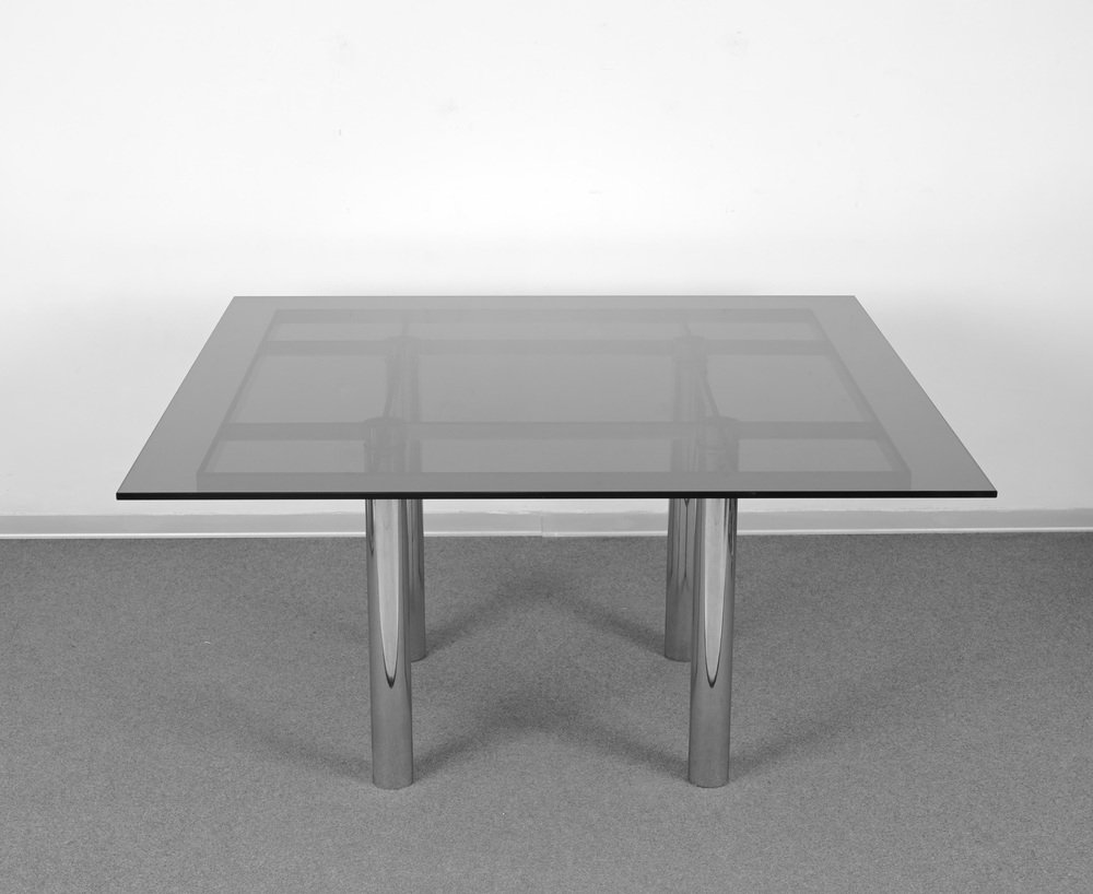 Andre Esstisch aus Chrom & Rauchglas von Tobia Scarpa für Gavina, Italien, 1968