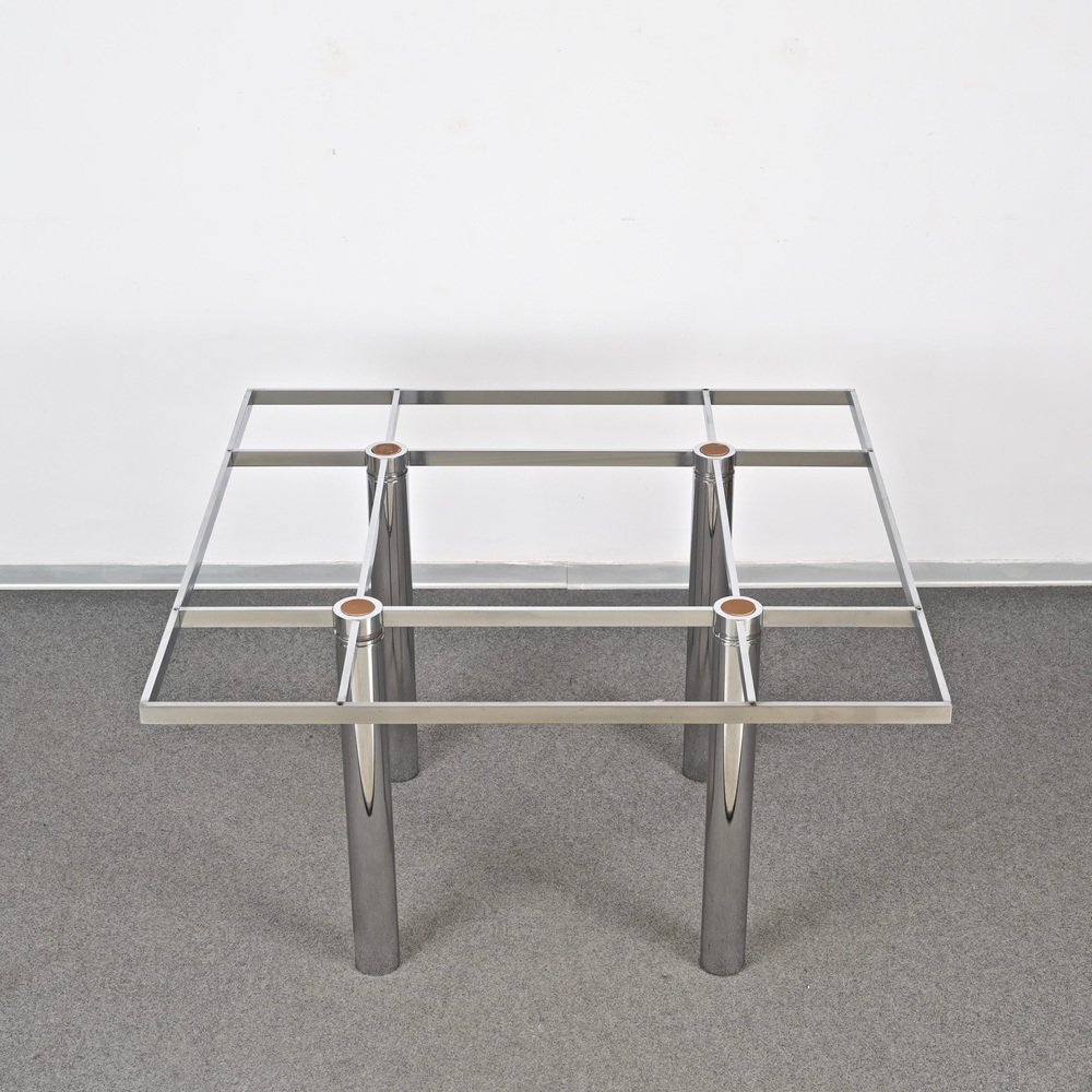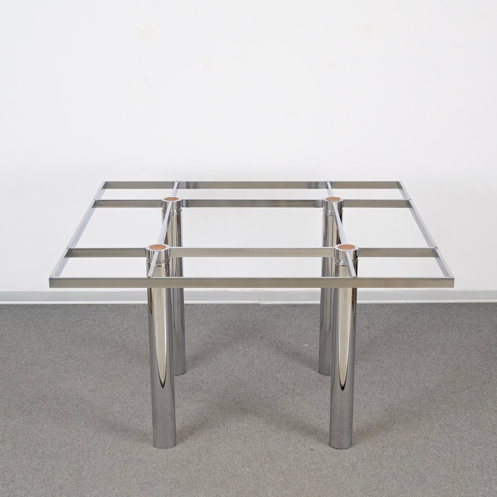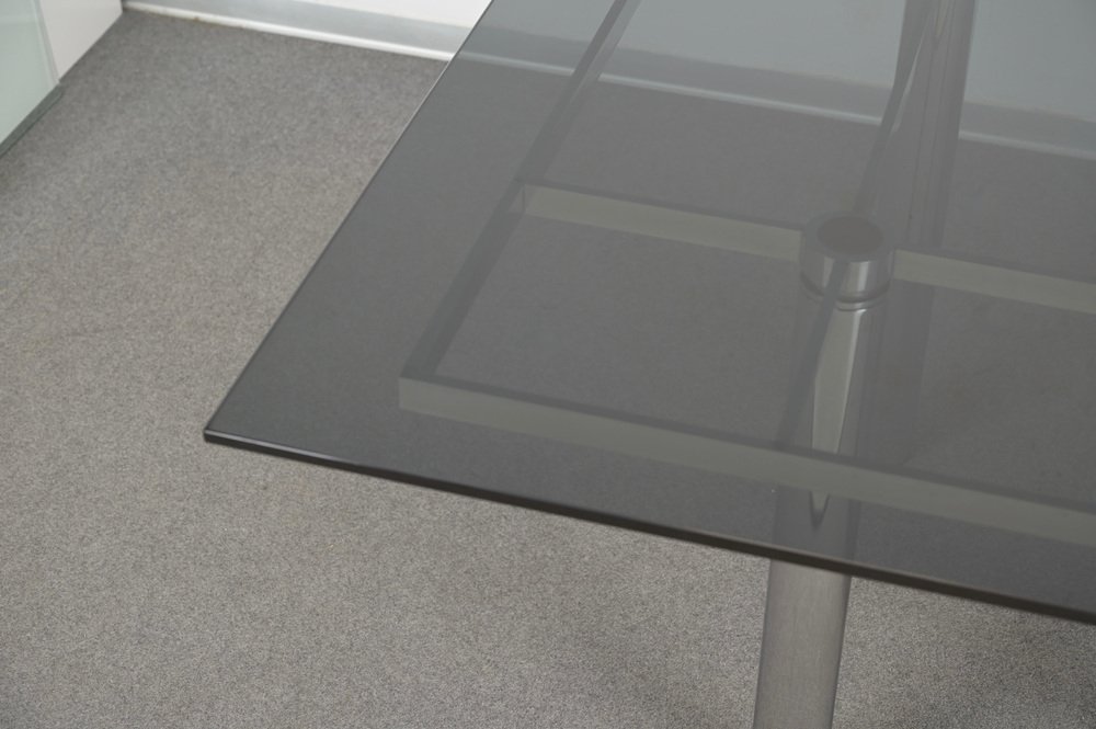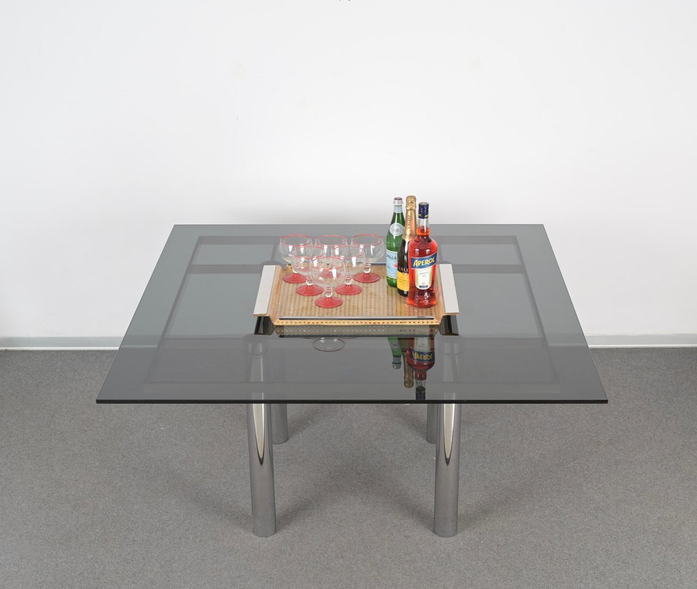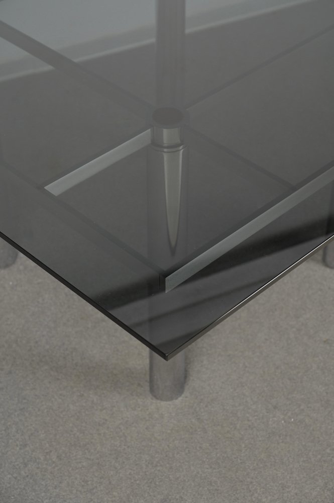 Andre Esstisch aus Chrom & Rauchglas von Tobia Scarpa für Gavina, Italien, 1968
