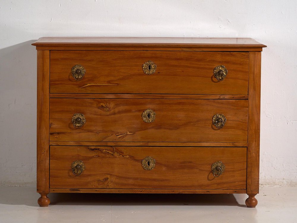 Antike Biedermeier Kommode mit blumenförmigen Beschlägen, 1850er