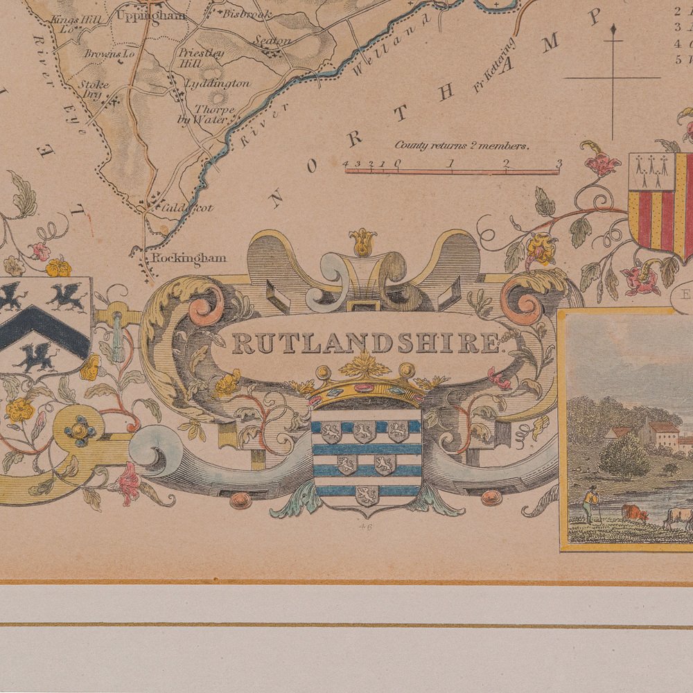 Superb lithography of Rutlandshire and its county detail, perfect for display
