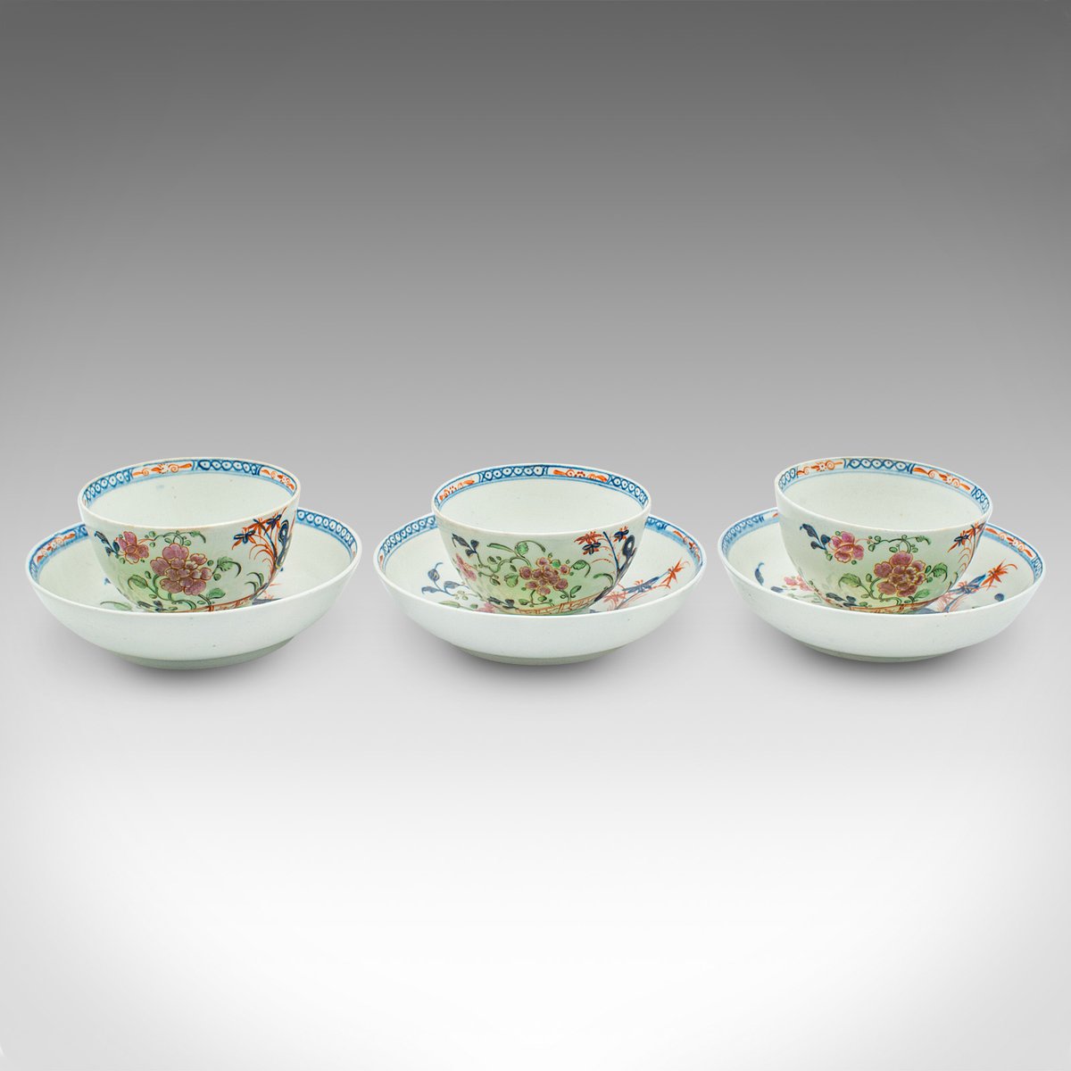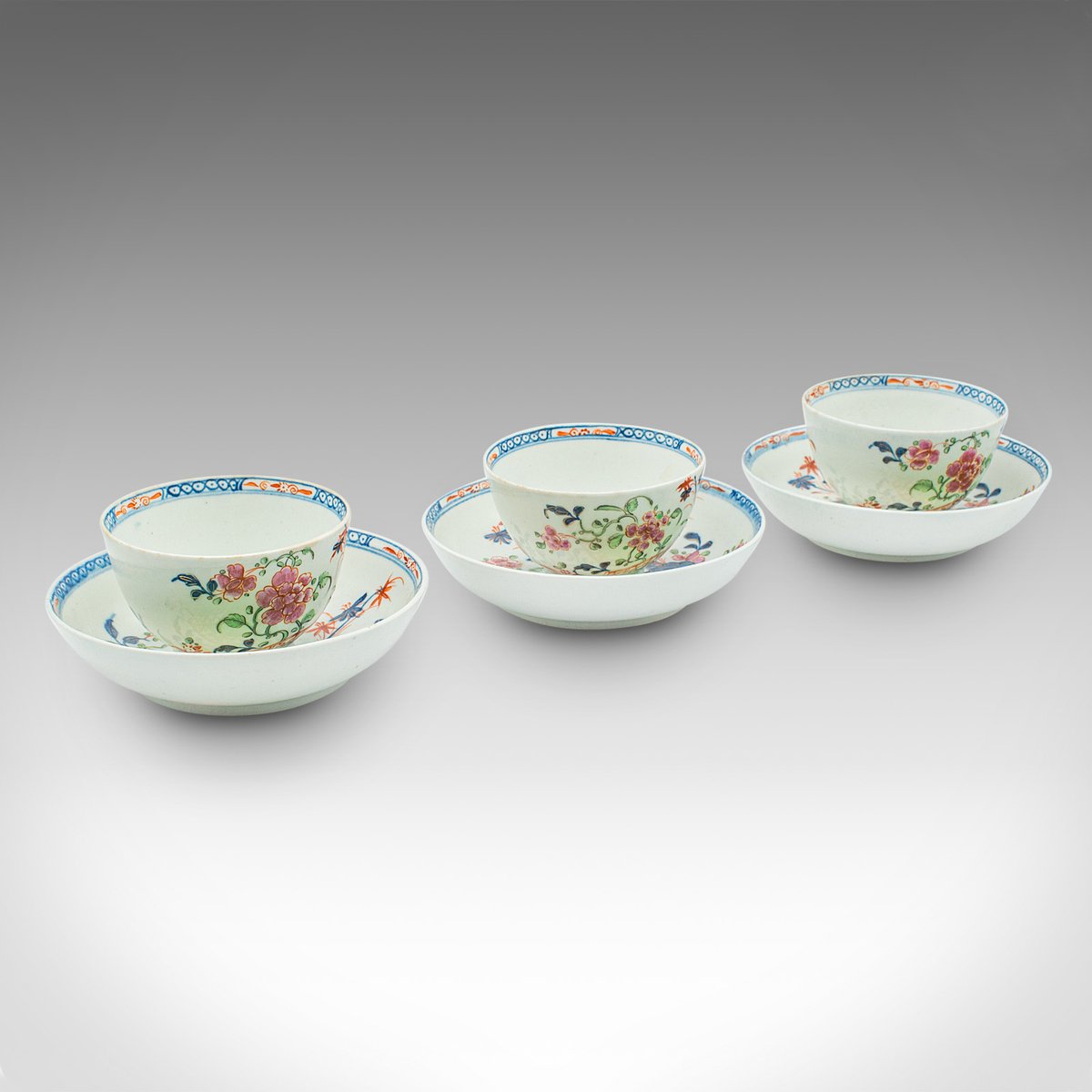 This is a trio of small teacups. A Chinese, ceramic cup and saucer, dating to the late Victorian period, circa 1900.
