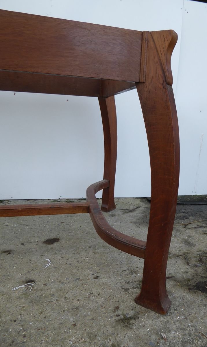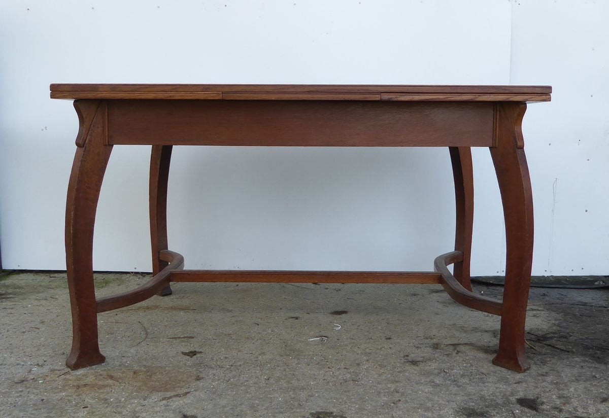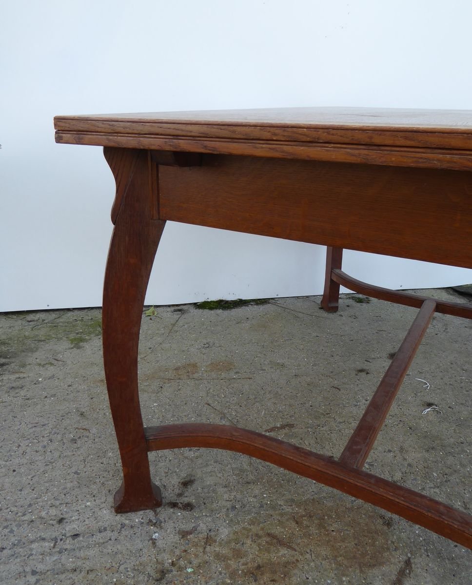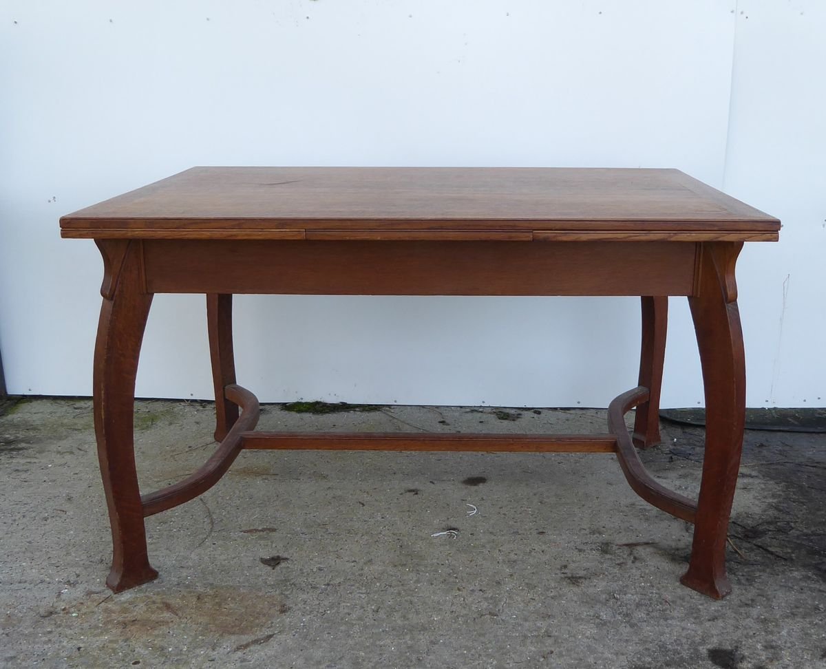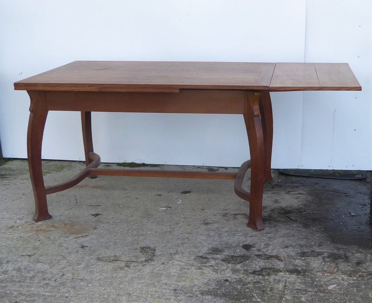 Antiker belgischer Art Deco Esstisch aus Eiche von Gustave Serrurier-Bovy