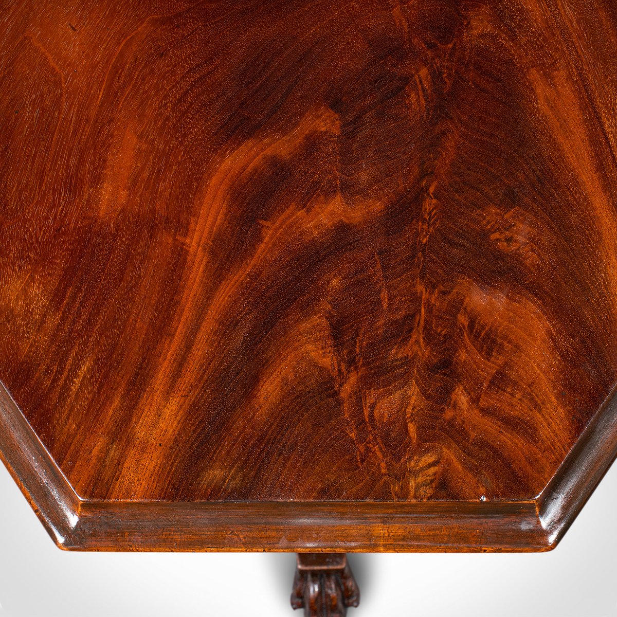 Dies ist ein antiker achteckiger Weintisch. Eine englische Lampe oder ein Beistelltisch aus geflammtem Mahagoni, aus der Zeit Wilhelms IV, um 1835.