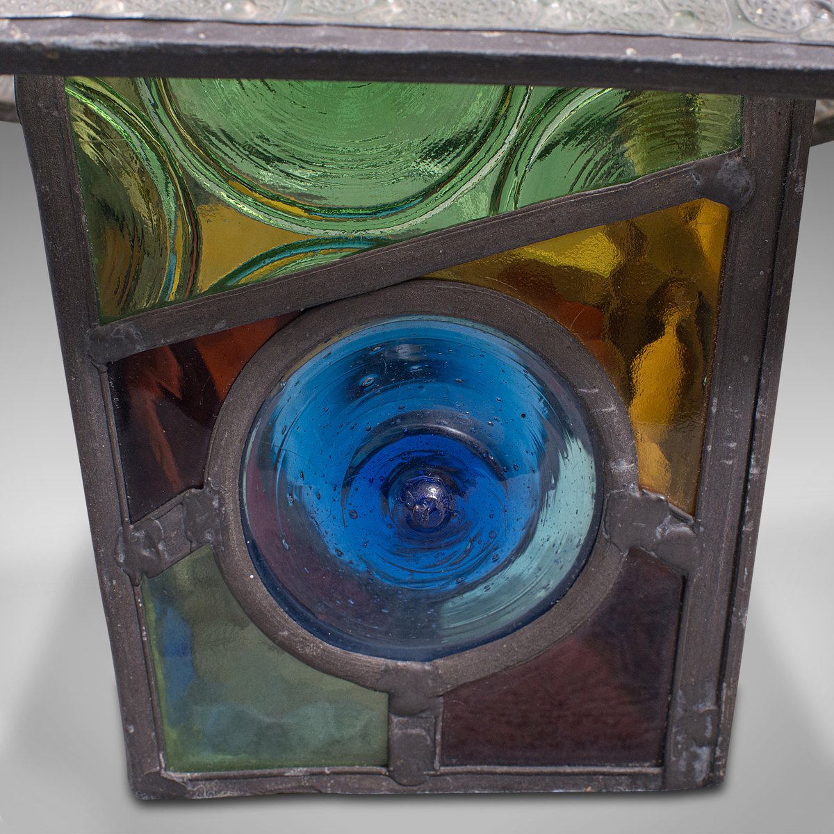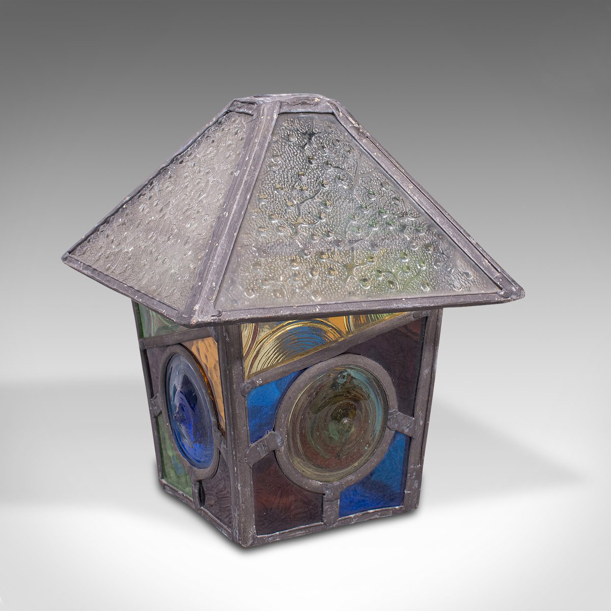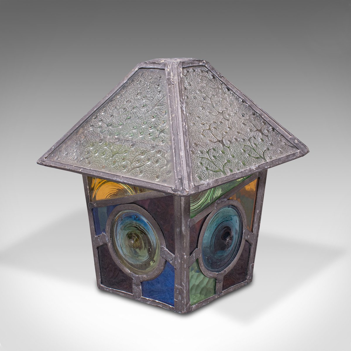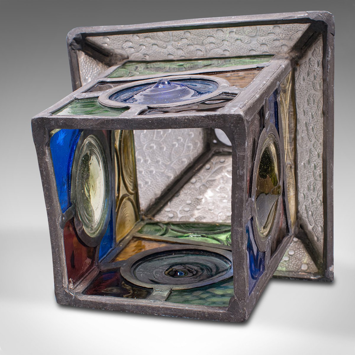 Antiker englischer dekorativer viktorianischer Lampenschirm aus gefärbtem Glas