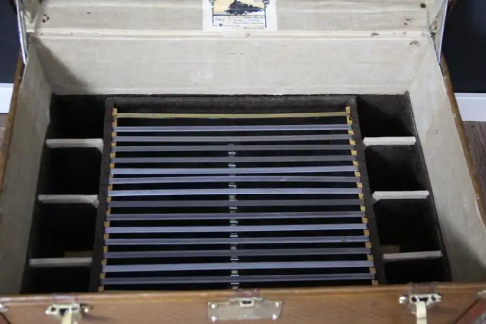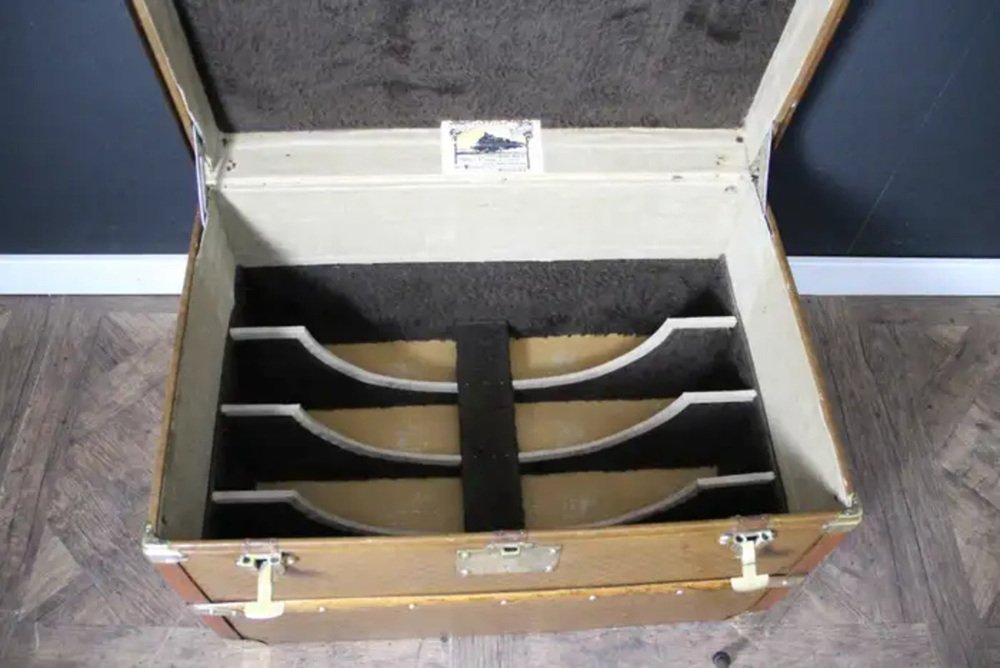 Im Inneren befindet sich noch das originale Moynat-Etikett sowie das Herstellungsdatum 1916. Das Innere ist original und für sein Alter sehr sauber und frisch.