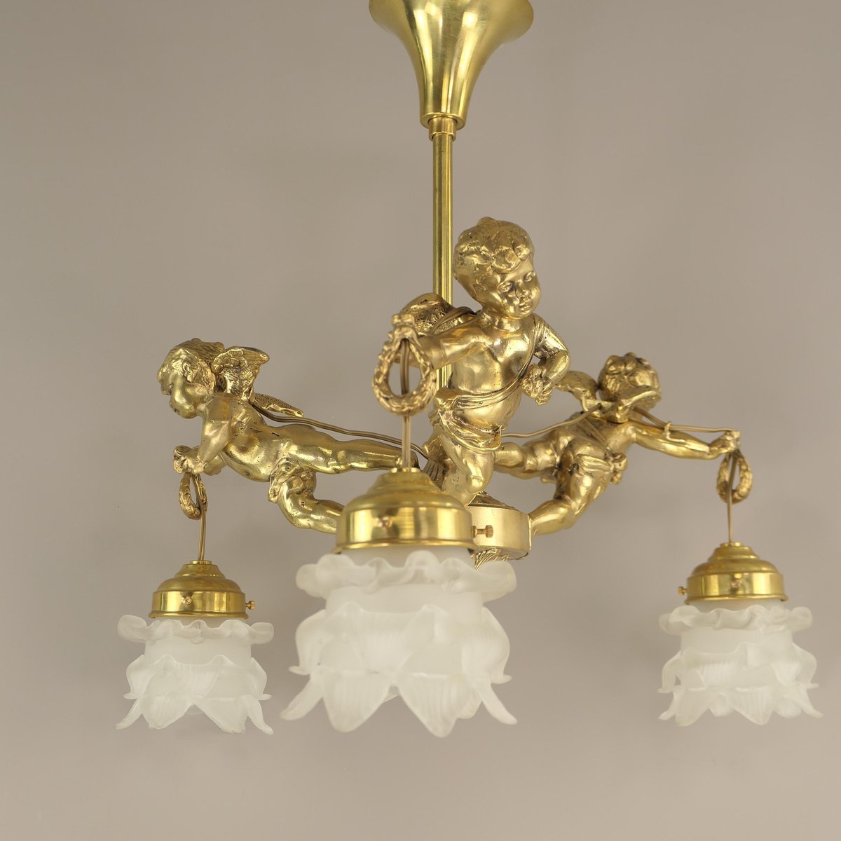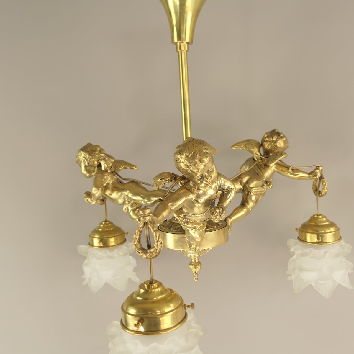 Antiker Kronleuchter mit 3 Putten, Frankreich, 1910er