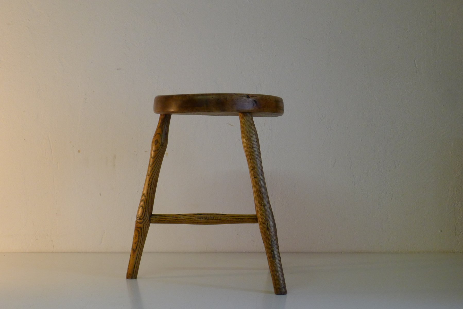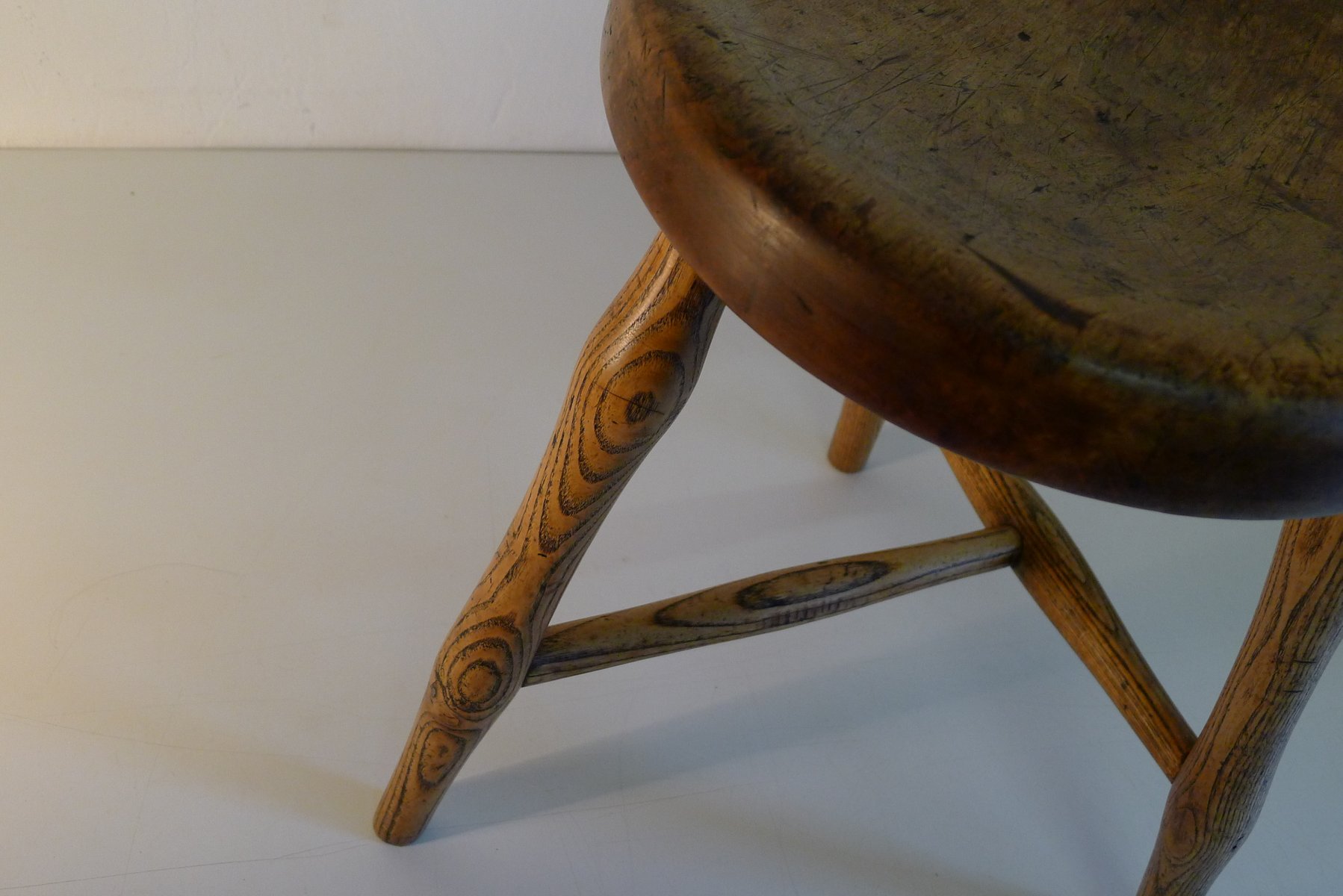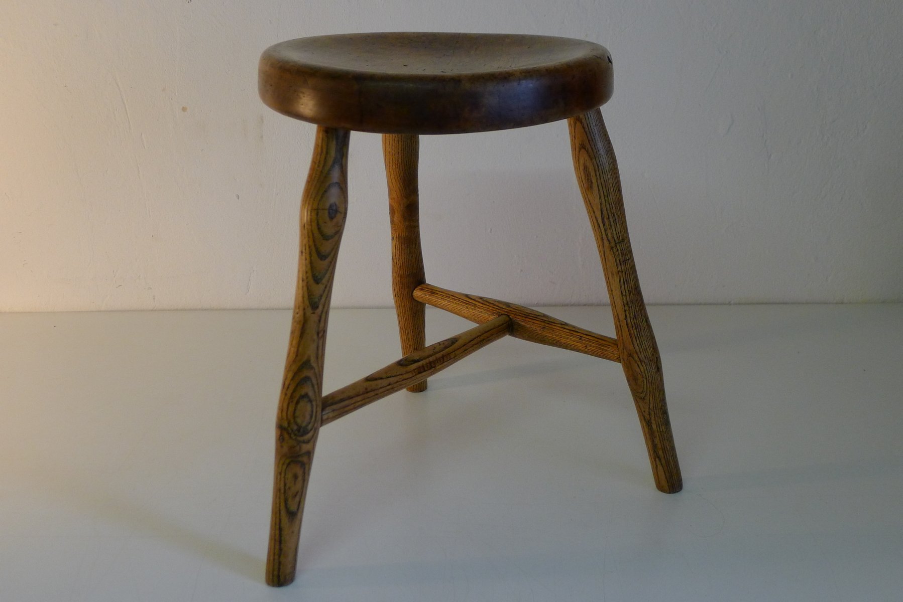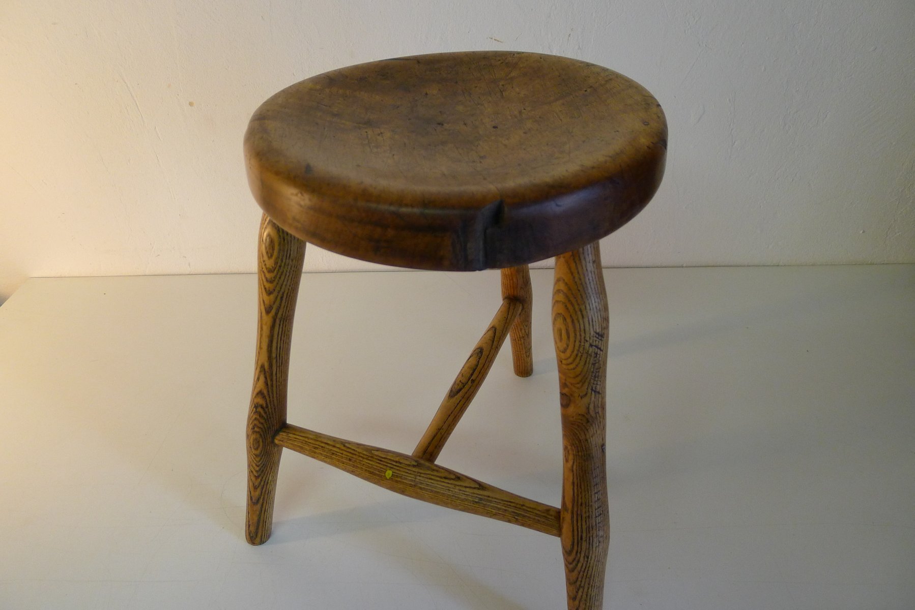 Antiker Werkstatthocker aus Esche und Ahorn