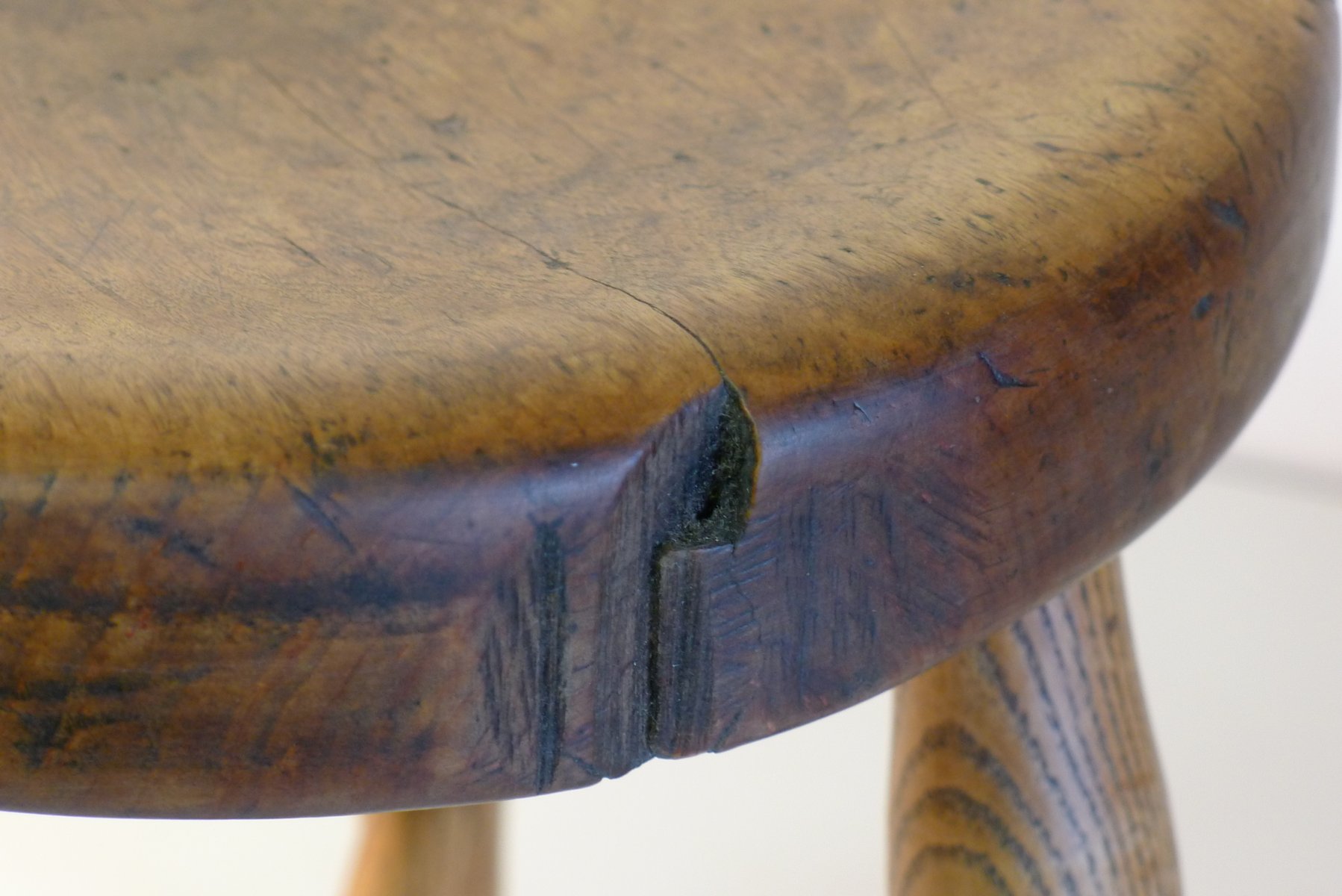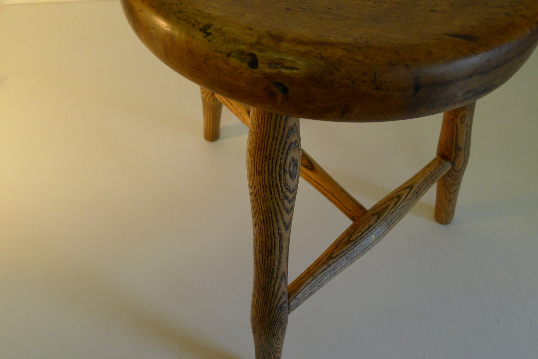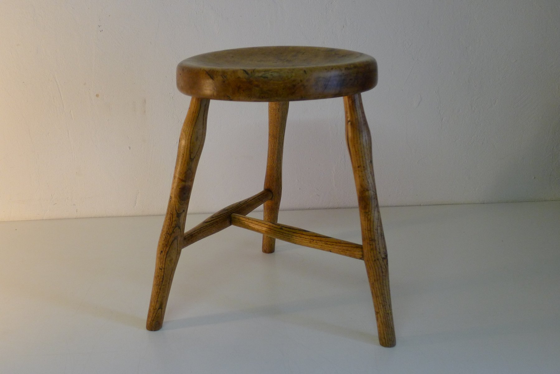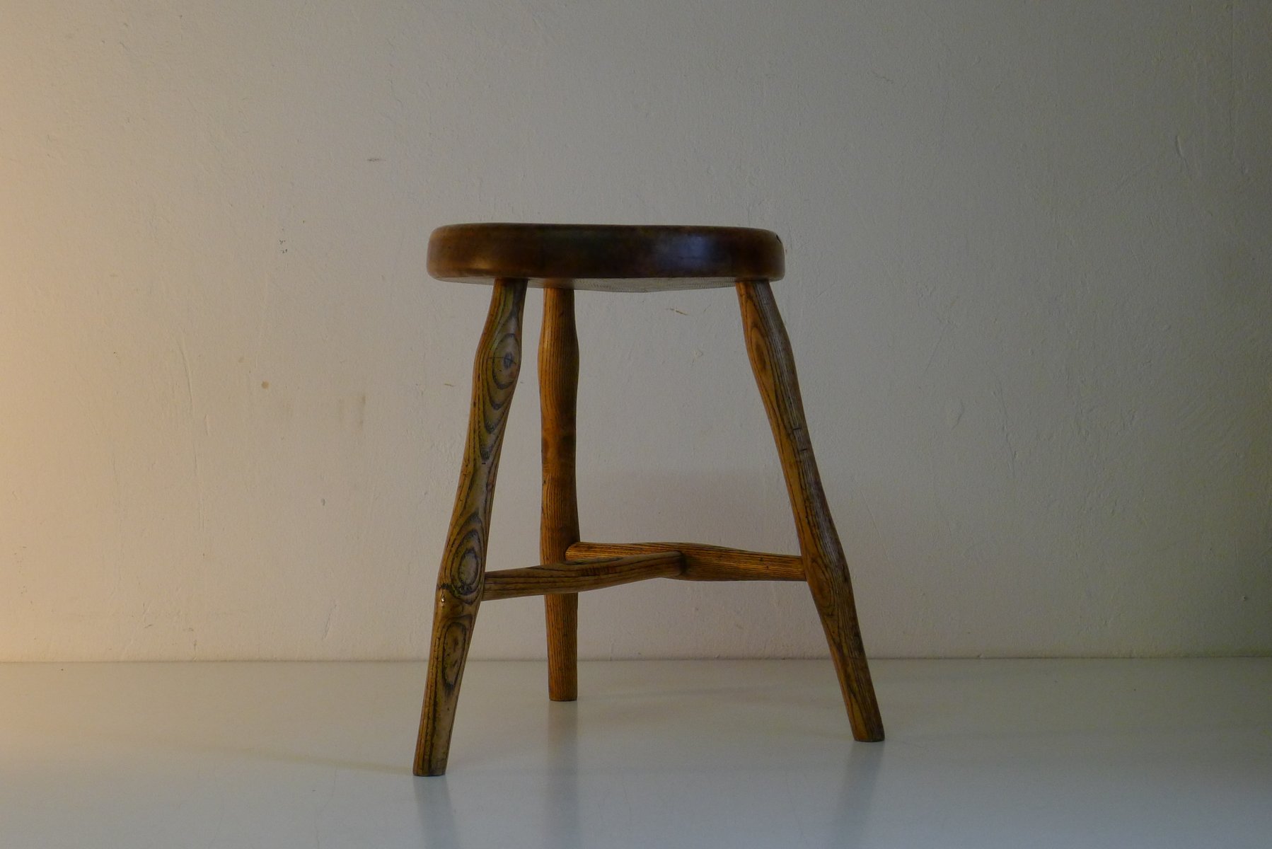 Antiker Werkstatthocker aus Esche und Ahorn