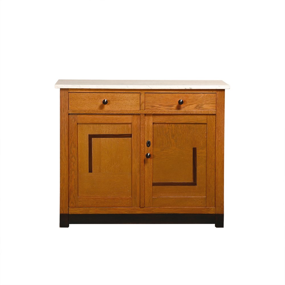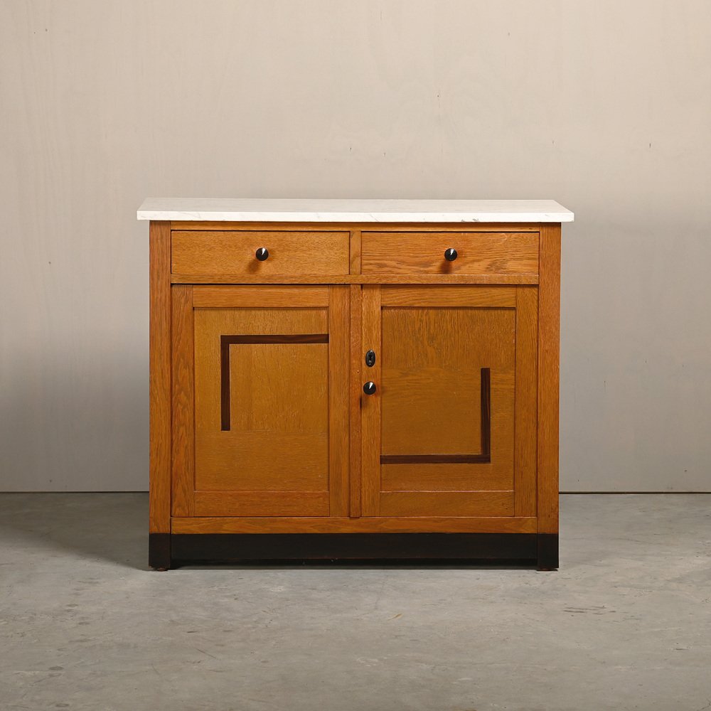 Art Deco Amsterdam School Sideboard aus Eiche & Marmor, Niederlande, 1930er