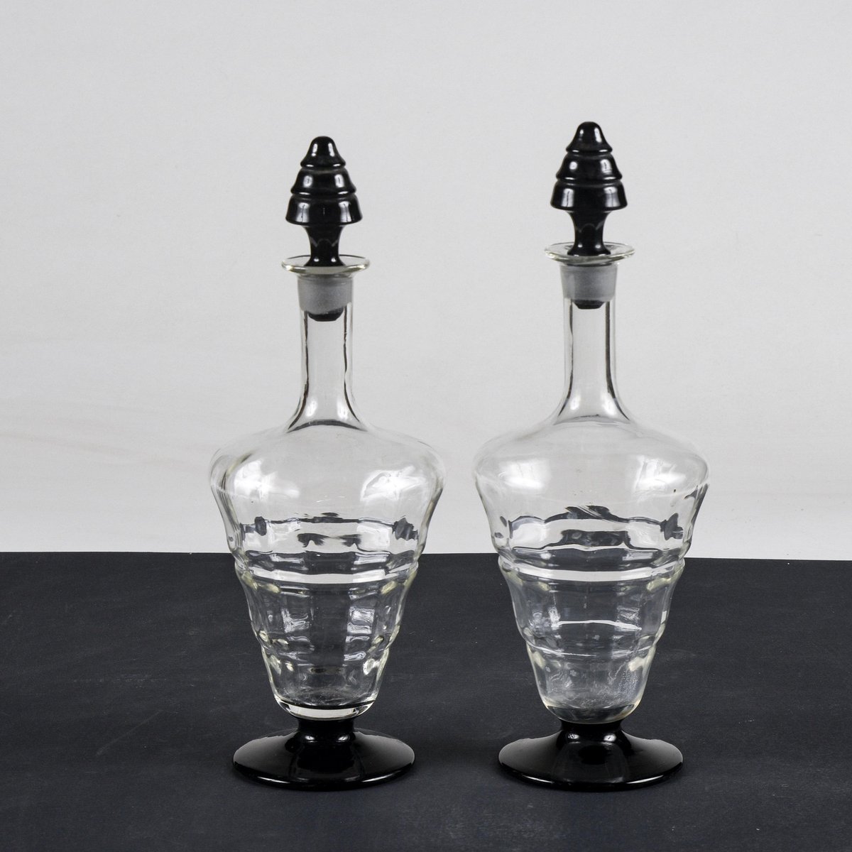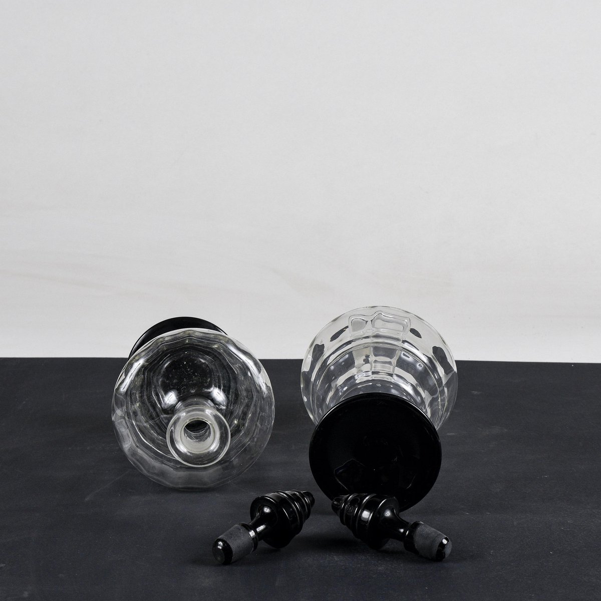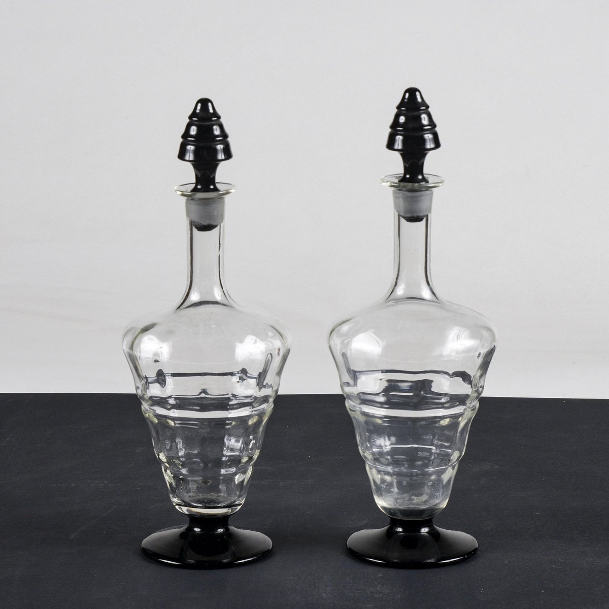 Art Deco Glasflaschen mit schwarzem Verschluss und Sockel, Italien, 2er Set