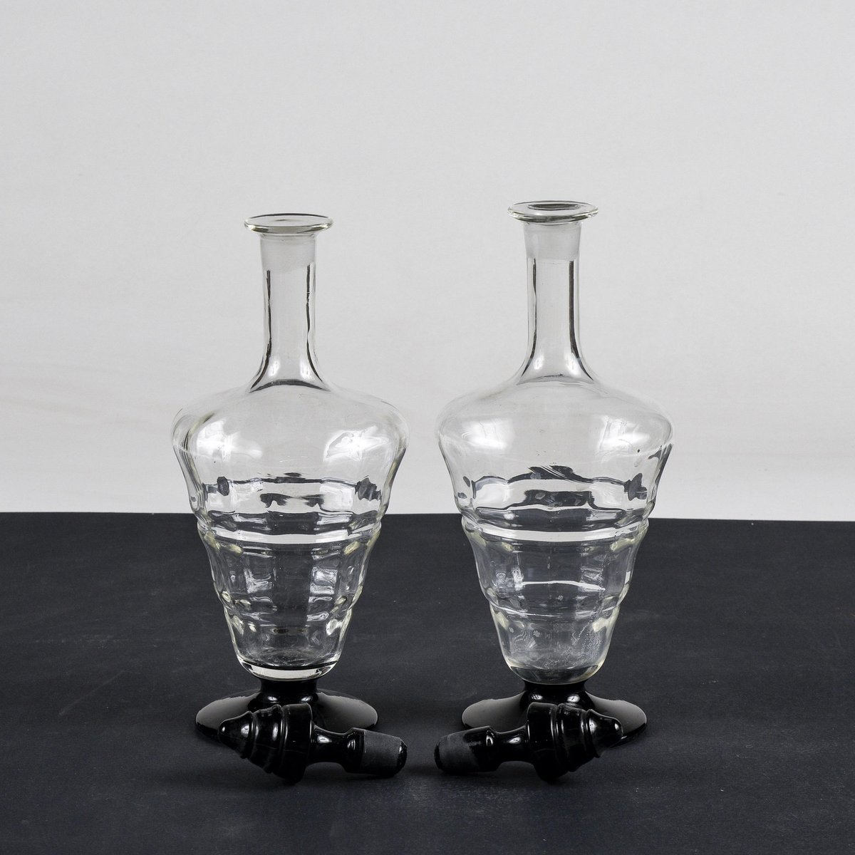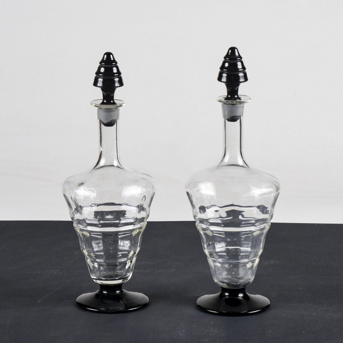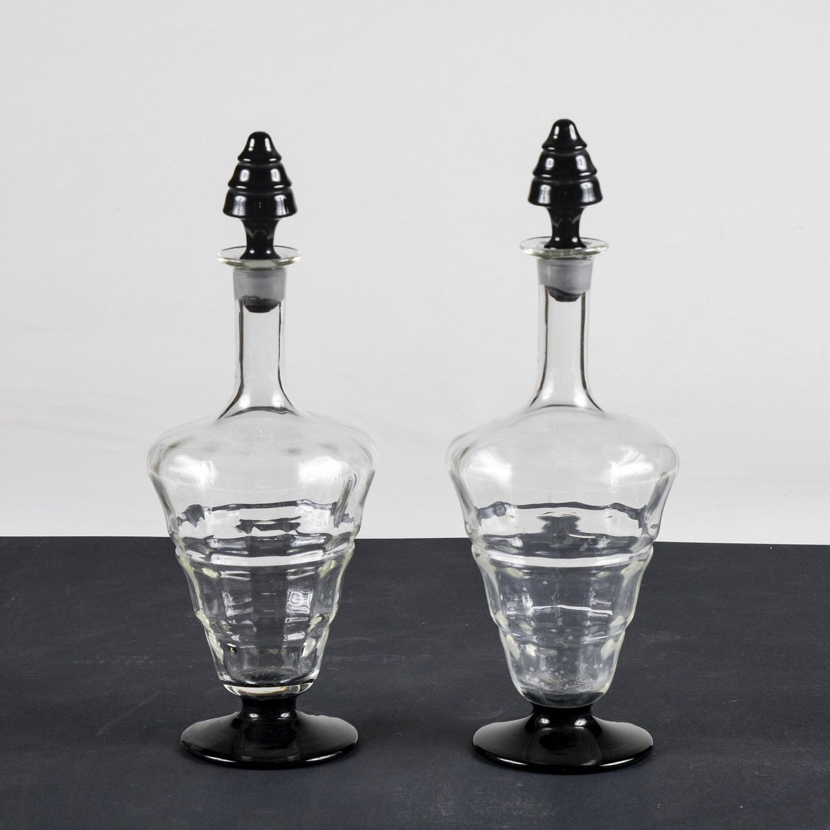 Art Deco Glasflaschen mit schwarzem Verschluss und Sockel, Italien, 2er Set