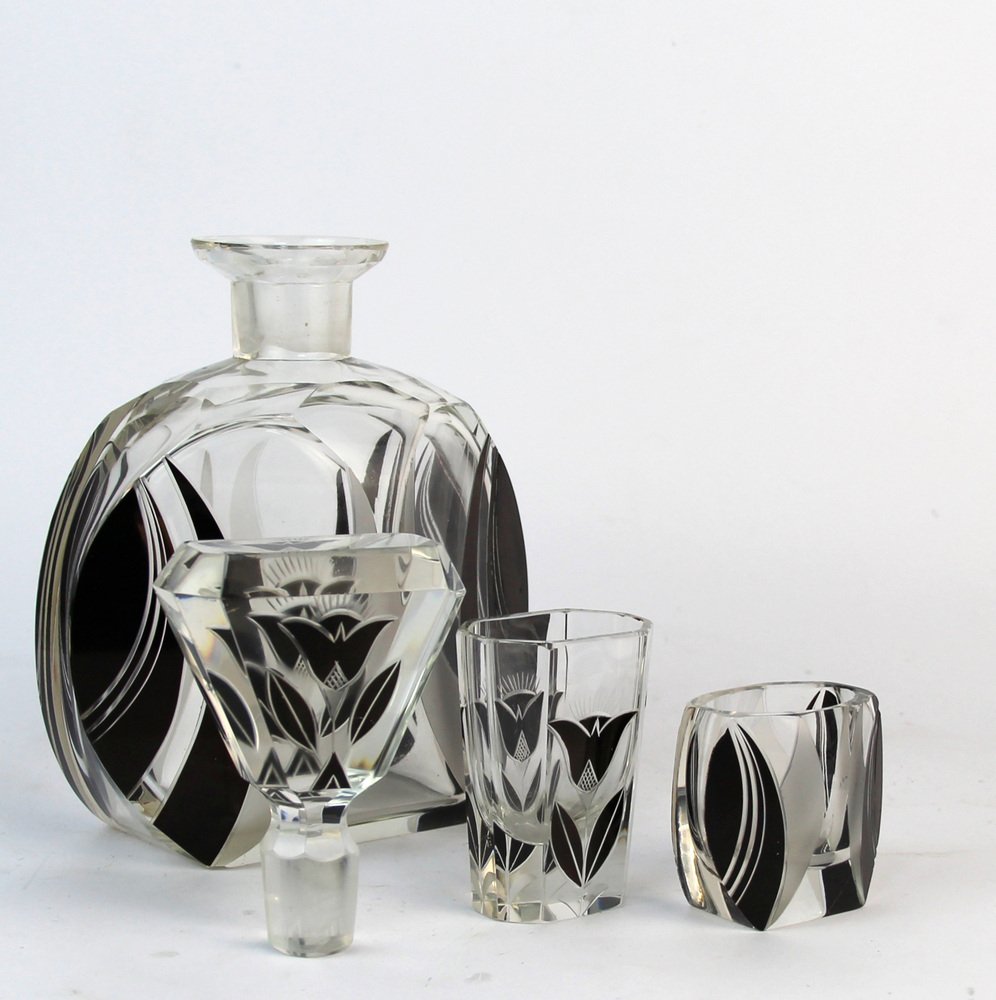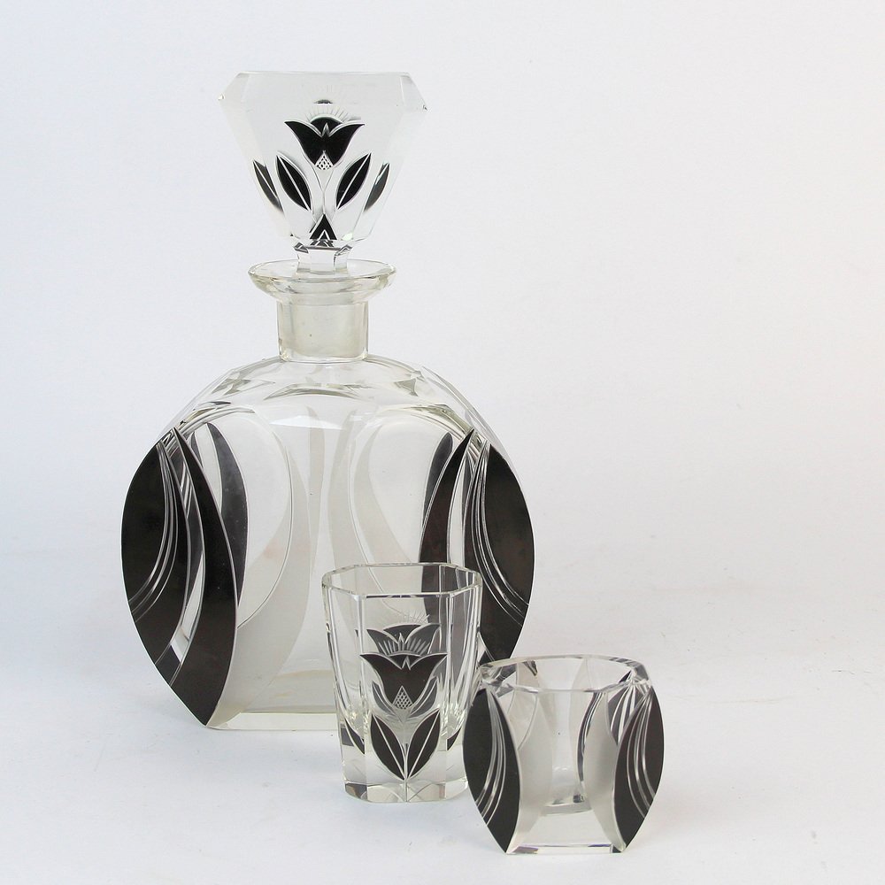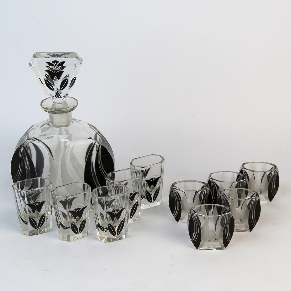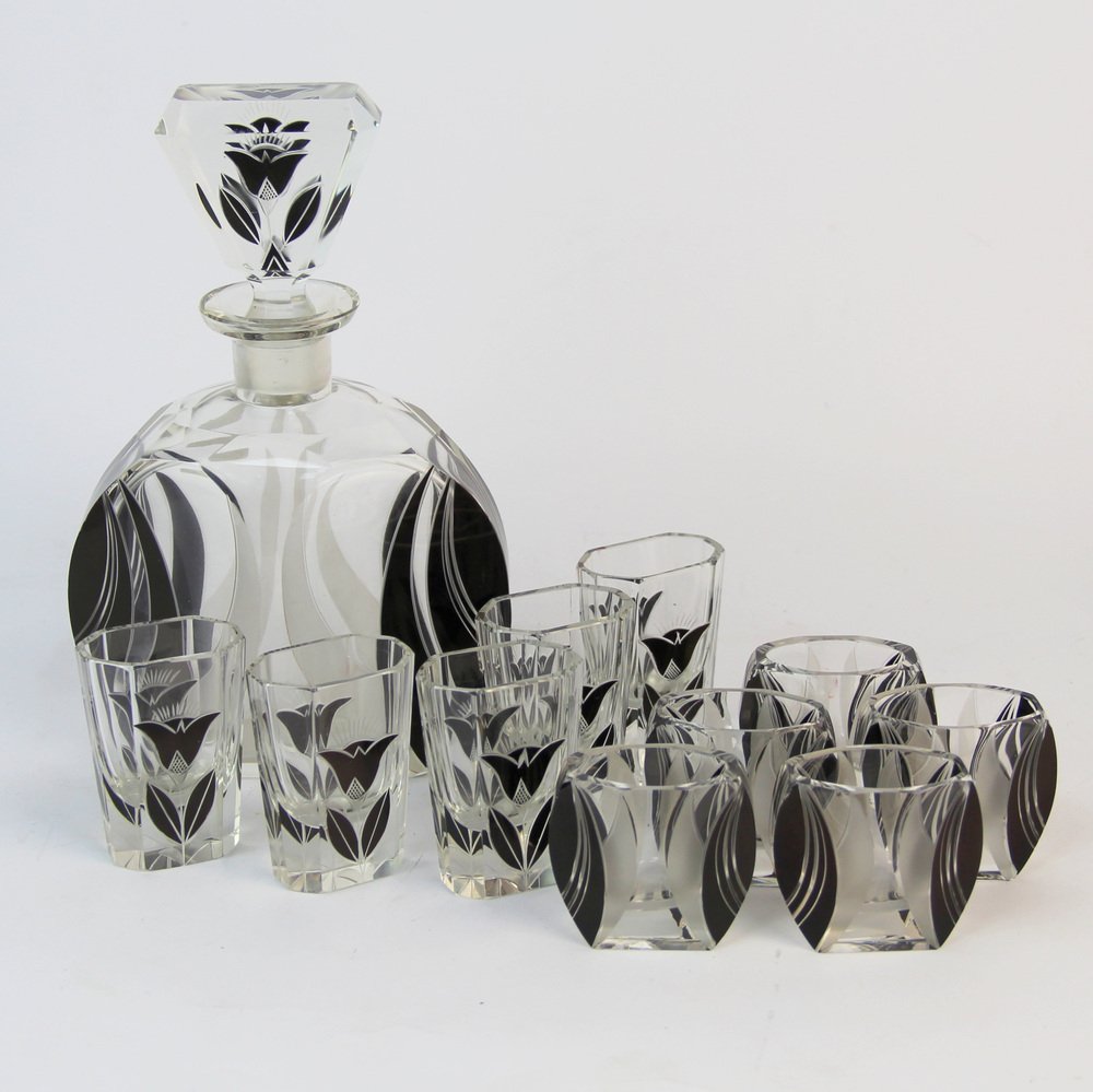 Art Deco Karaffe Set mit Gläsern von Karl Palda, 1920er, 11 . Set