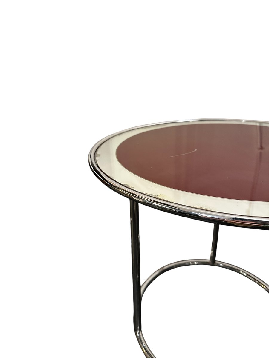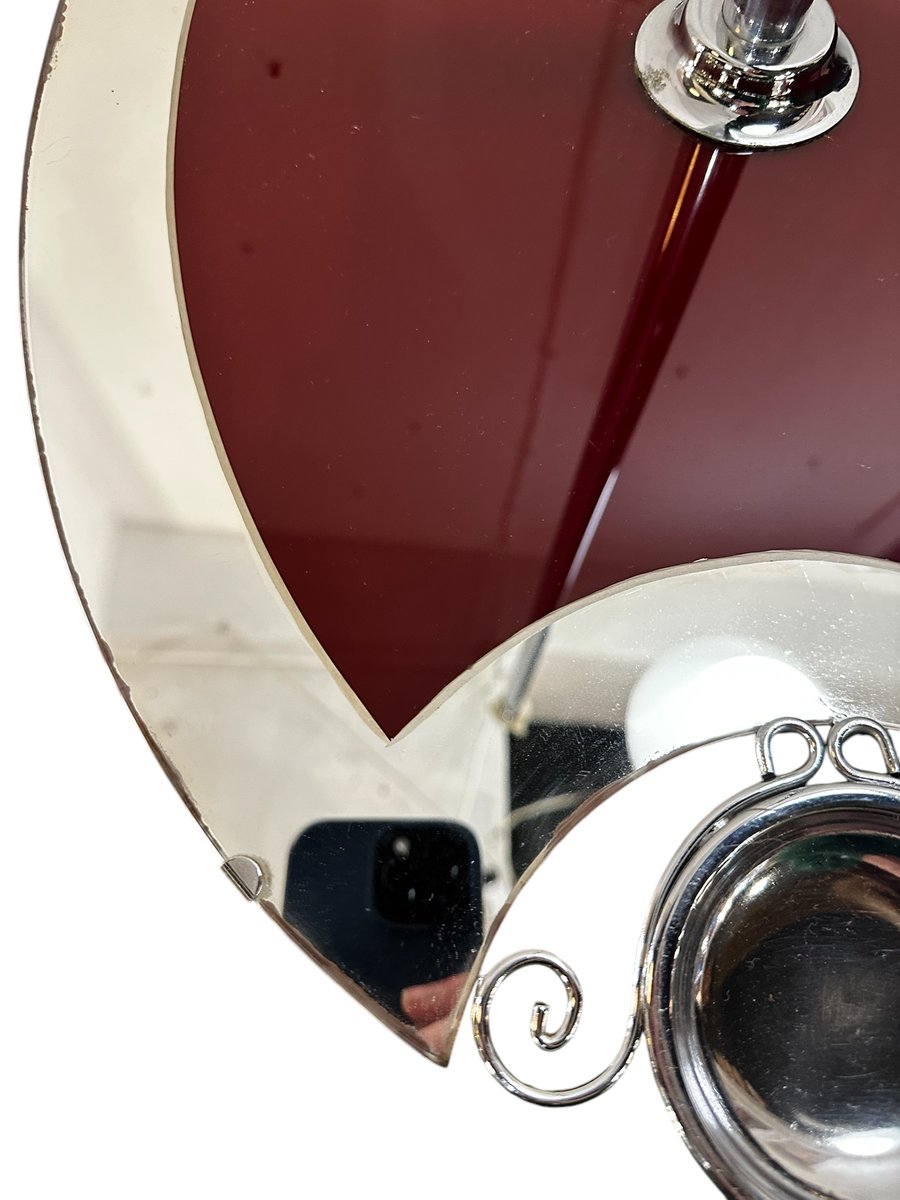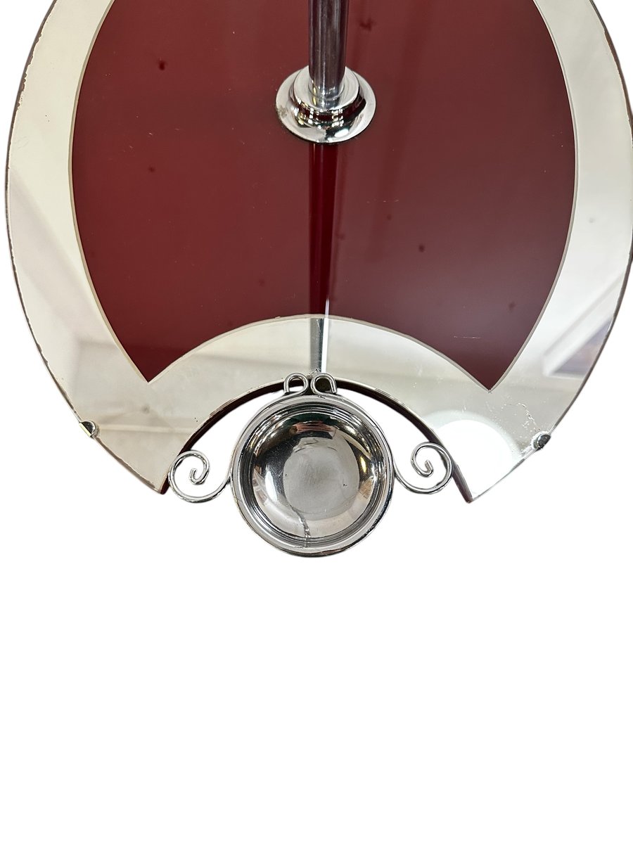 Excellent Antique Condition, the chrome is beautifully polished, the light is fully working, the ask trays are in tact, the mirrors are un-chipped at the edges, the painted mirror and burgundy on the small table have some visible ageing, the mirror on the lamp is beautifully preserved, please refer to photos.