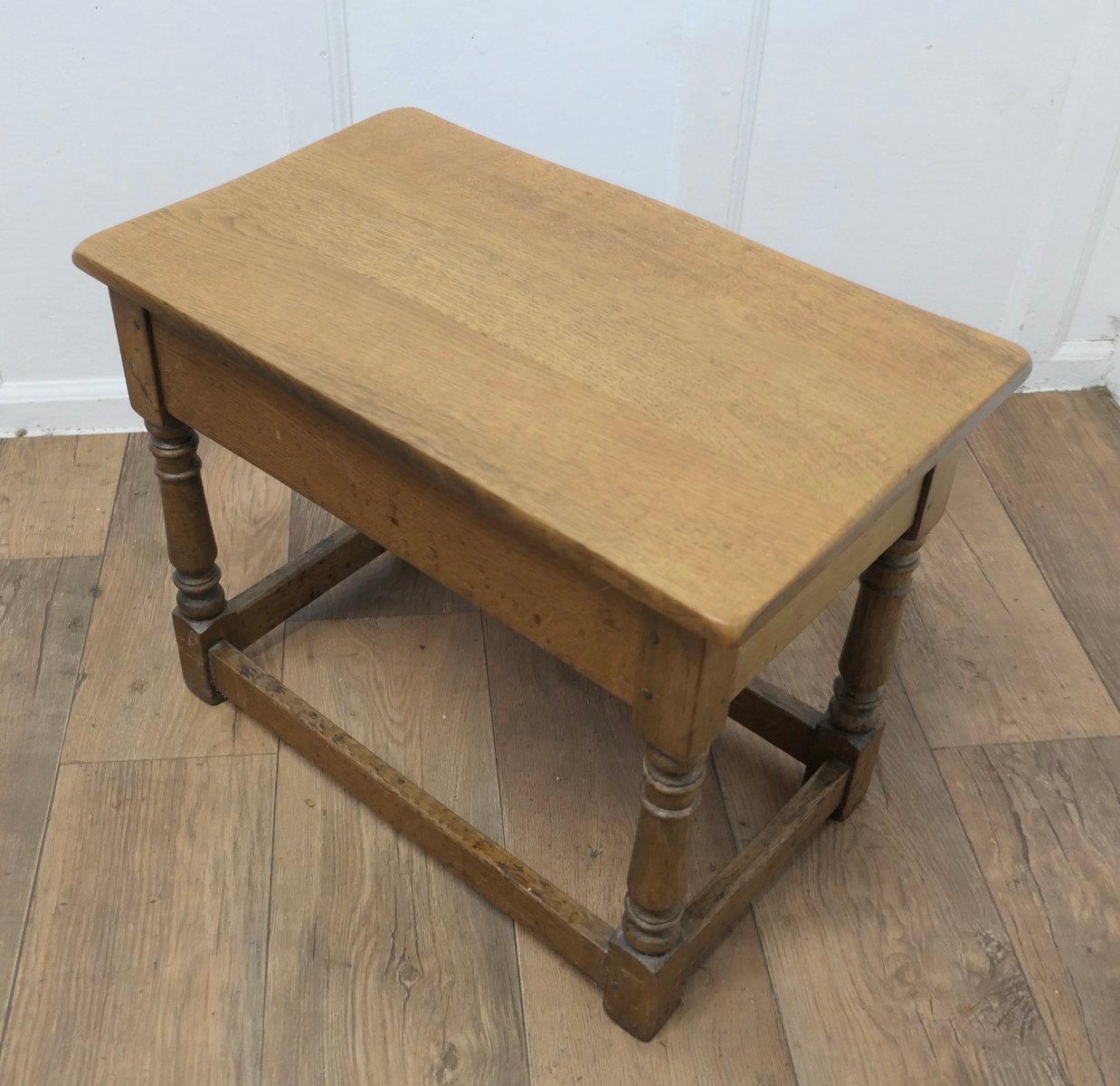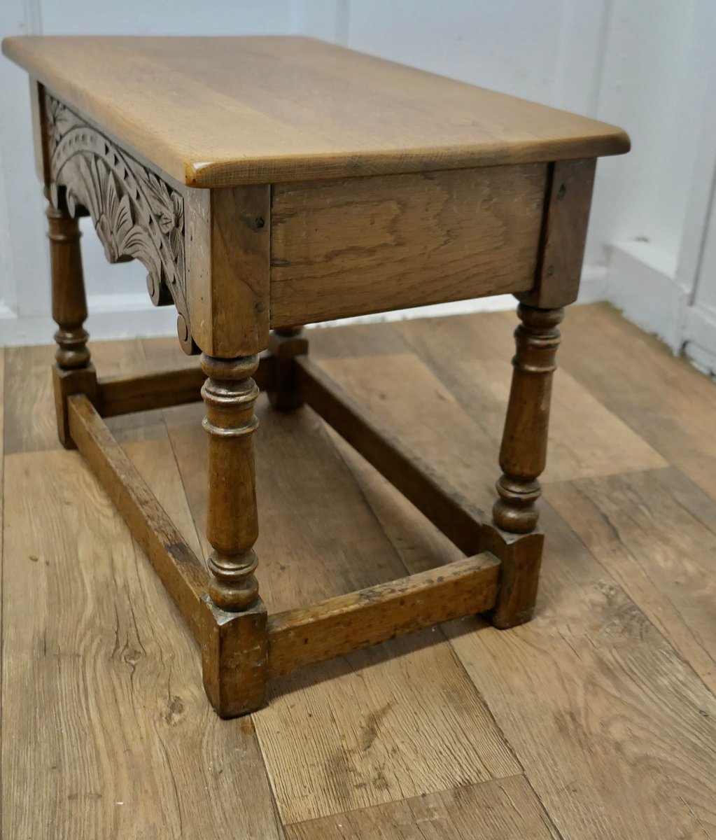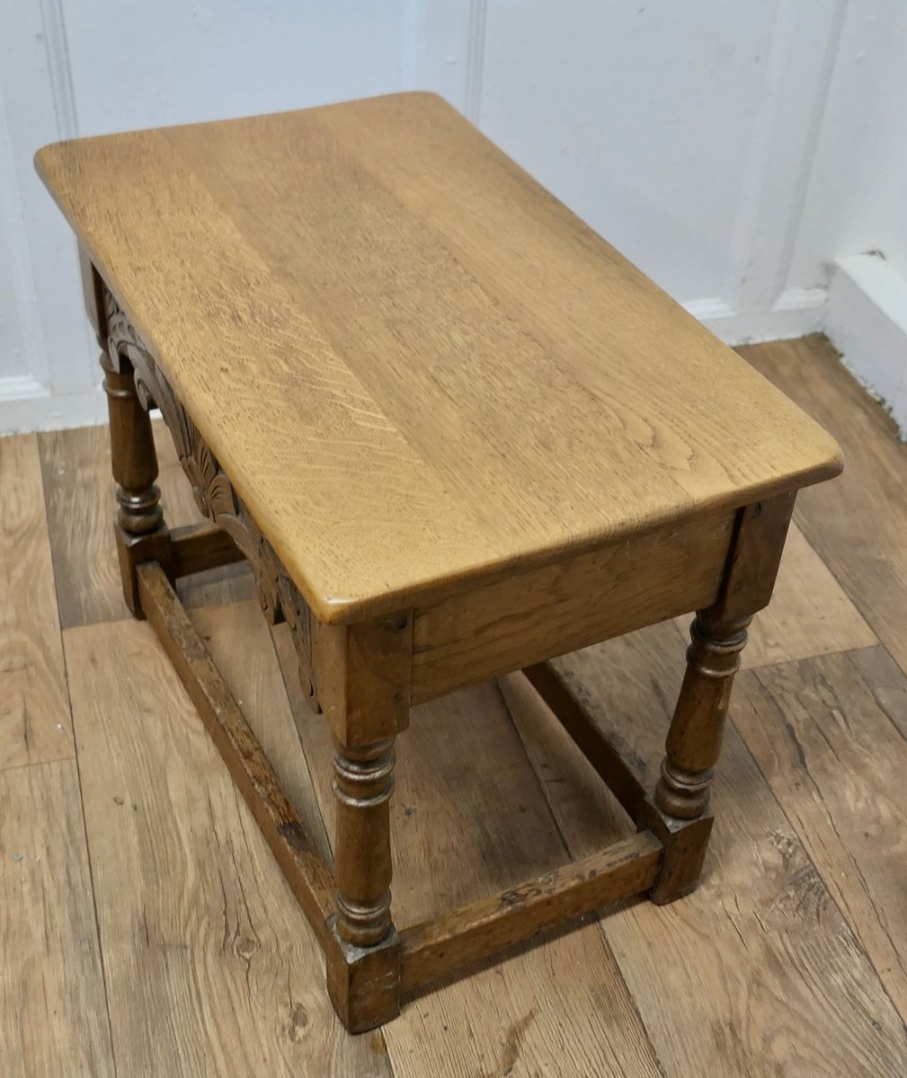 Arts and Crafts Hocker oder Beistelltisch aus Eiche mit Schublade