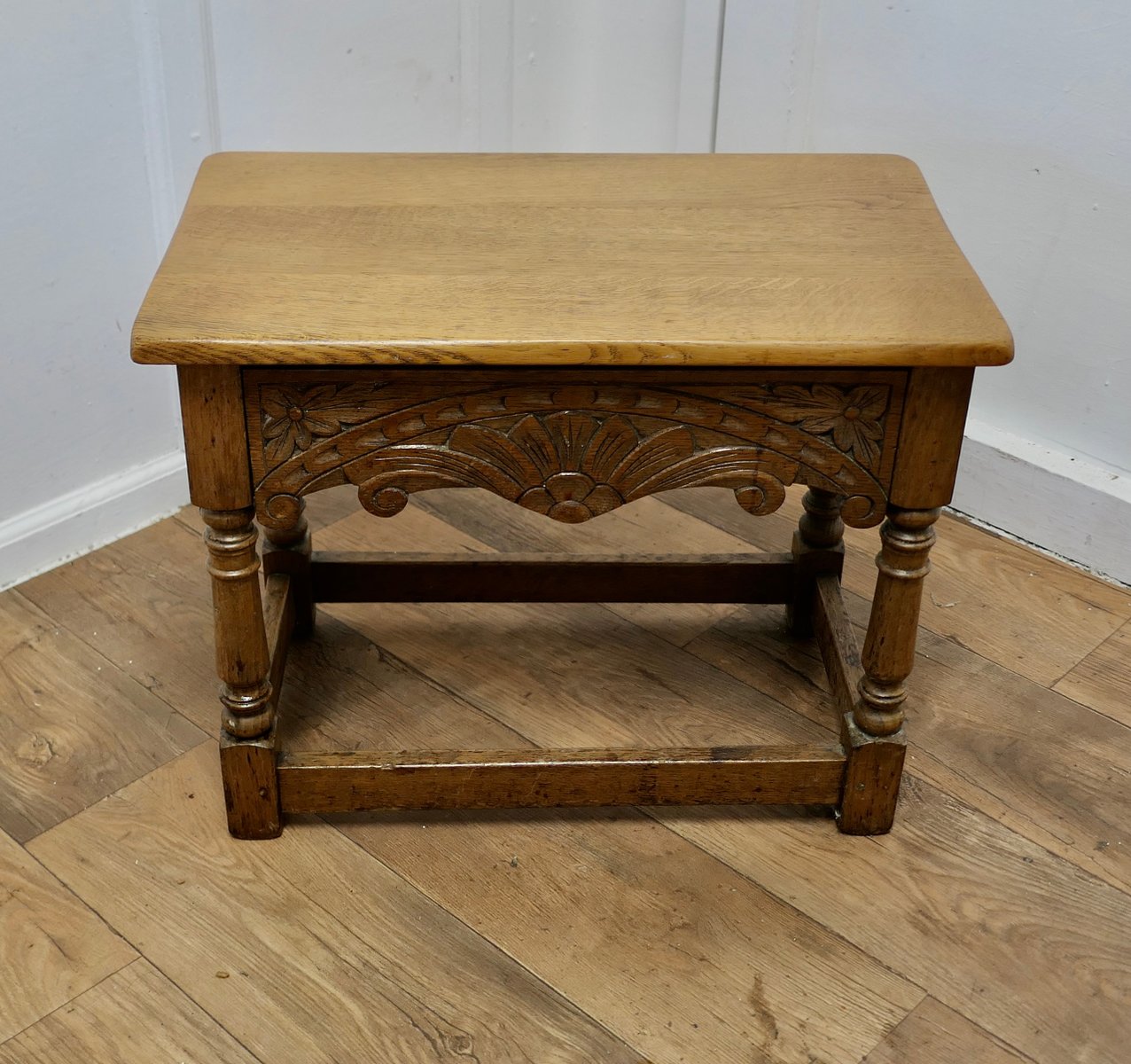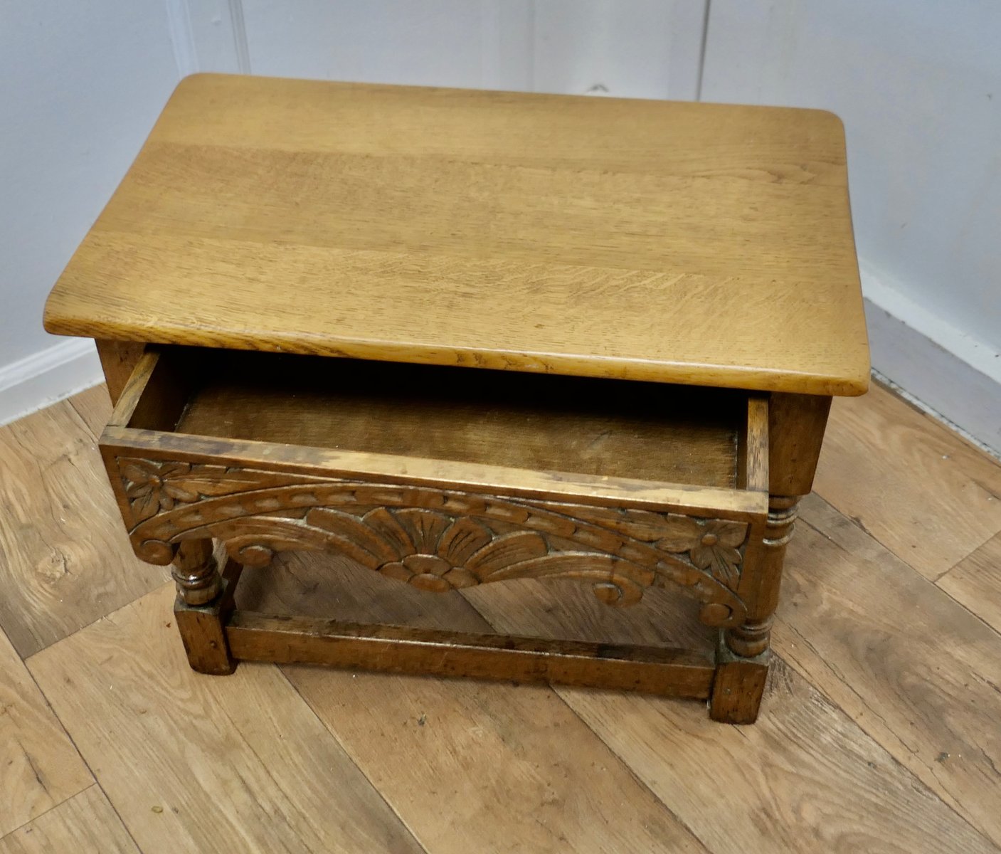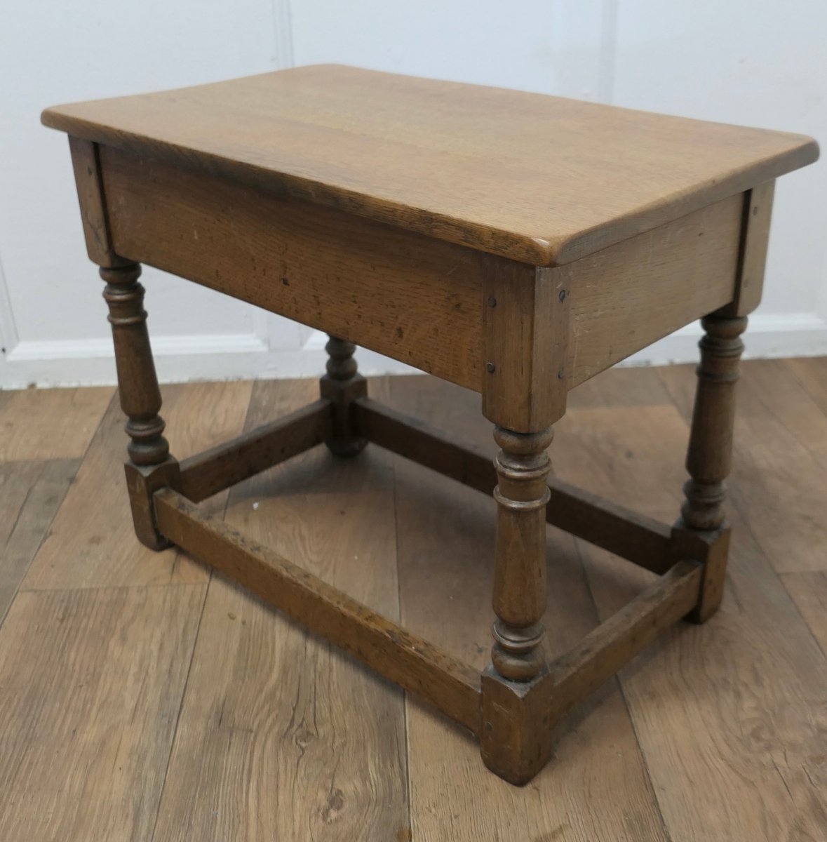 Arts and Crafts Hocker oder Beistelltisch aus Eiche mit Schublade