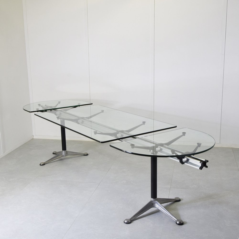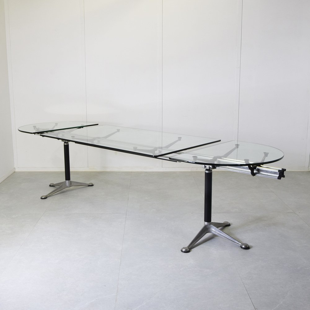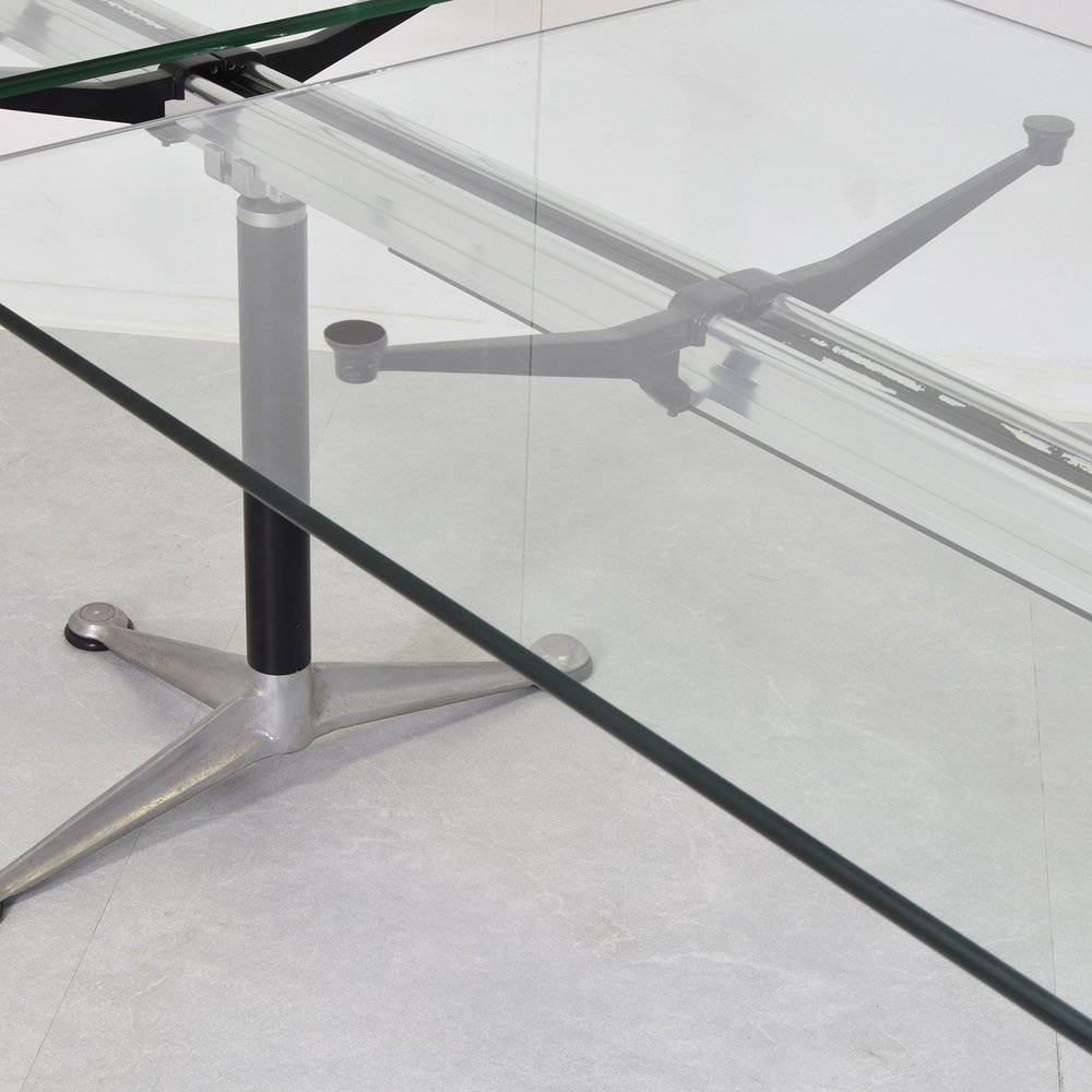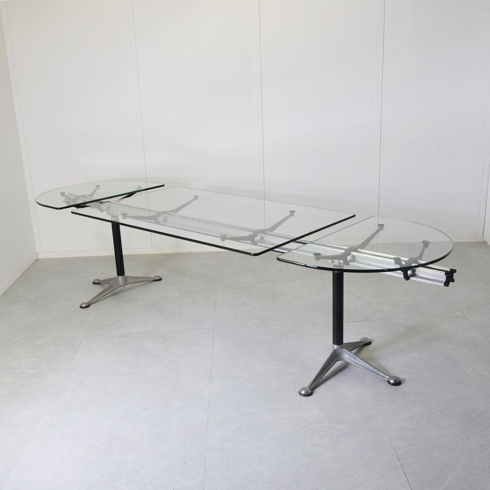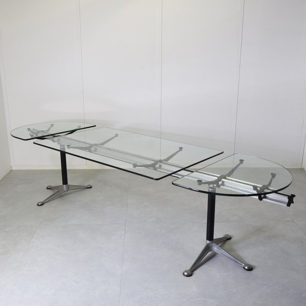 Ausziehbarer Besprechungstisch namens Burdick Group System Tisch mit Gestell aus Stahl & Aluminium mit Glasplatte von Bruce Burdick für Herman Miller, 1980er