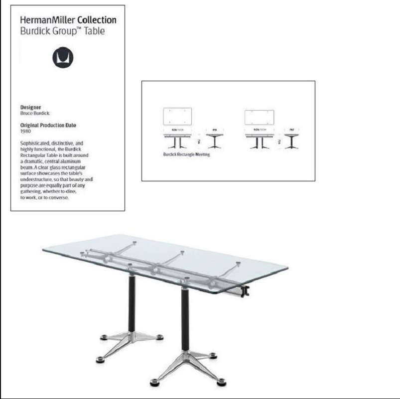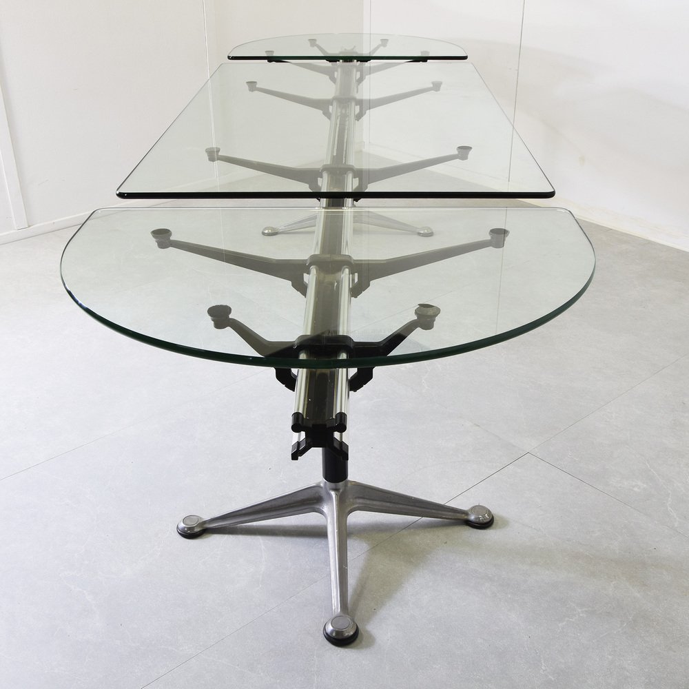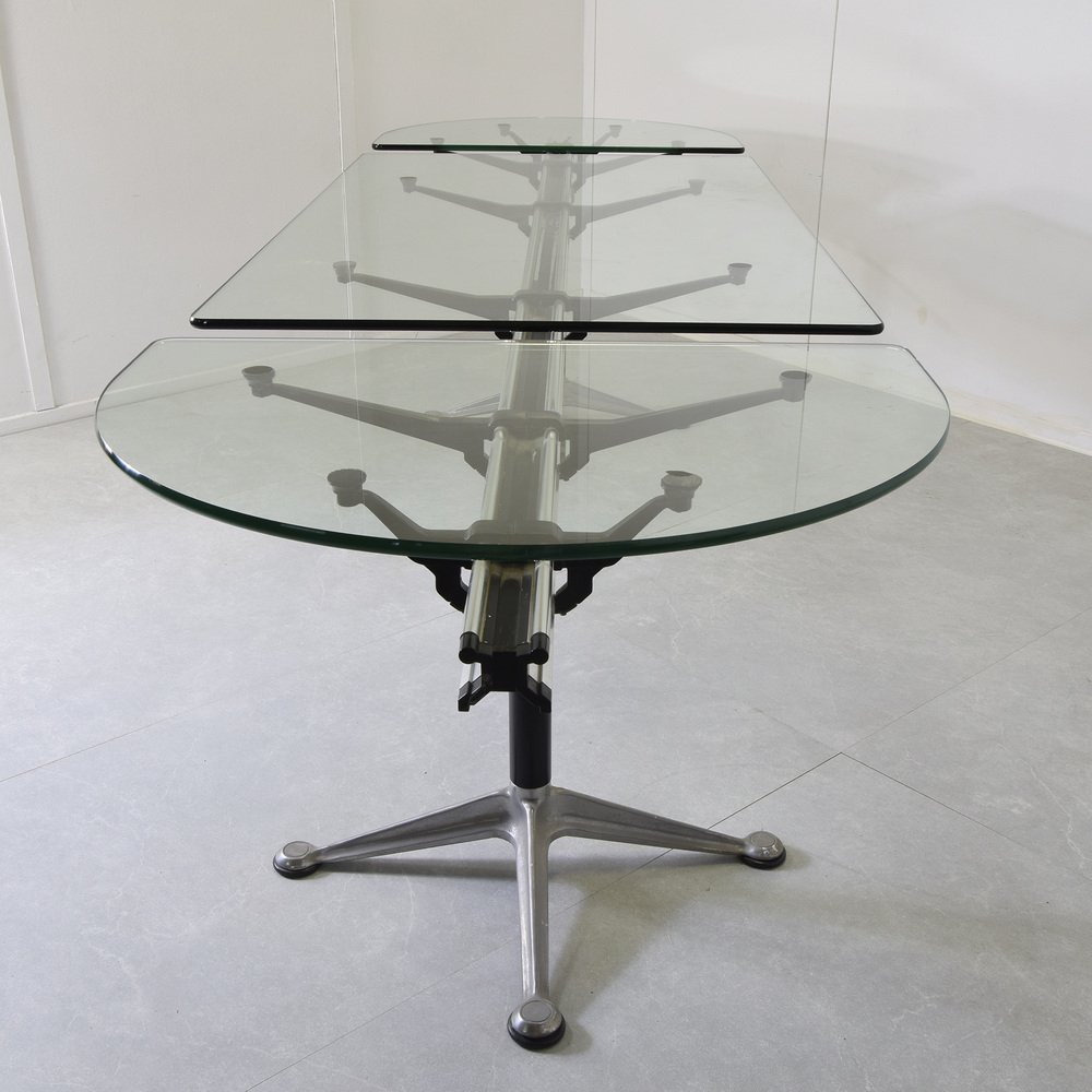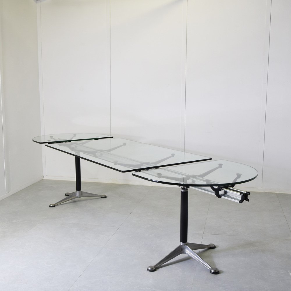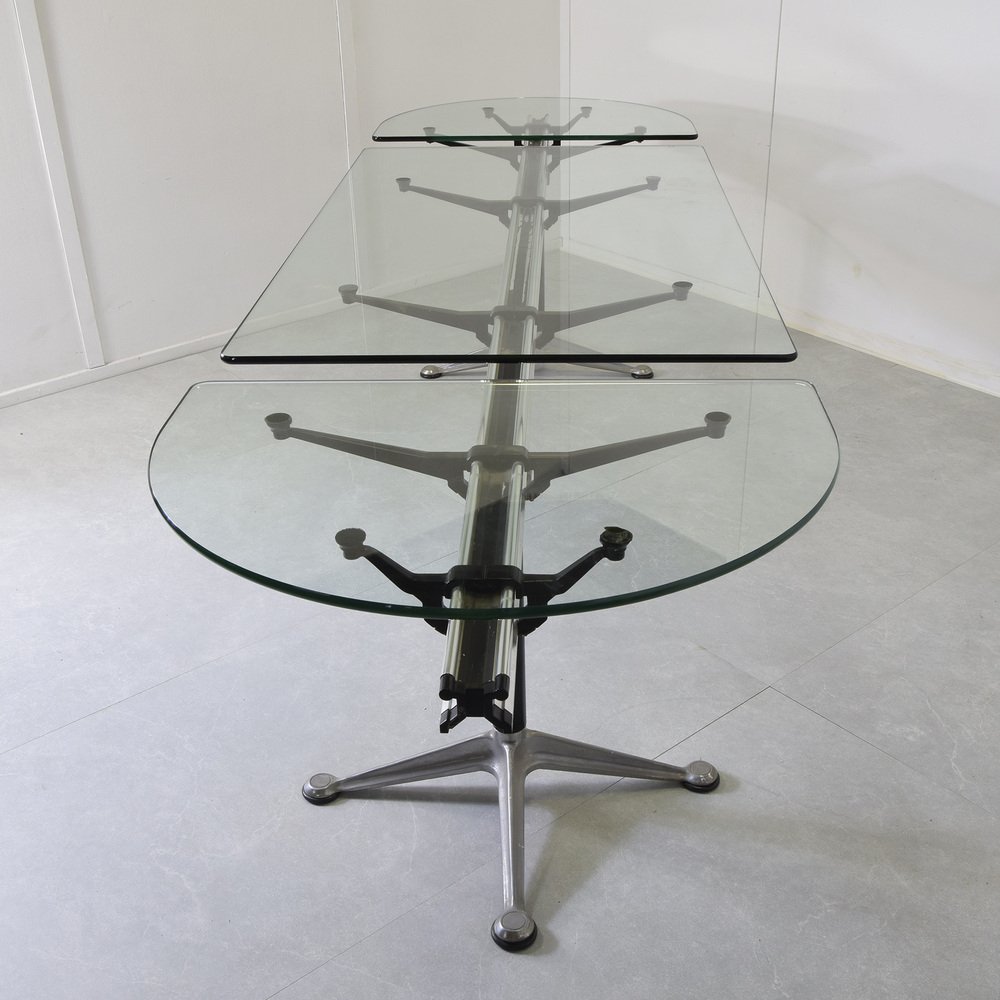 Ausziehbarer Besprechungstisch namens Burdick Group System Tisch mit Gestell aus Stahl & Aluminium mit Glasplatte von Bruce Burdick für Herman Miller, 1980er