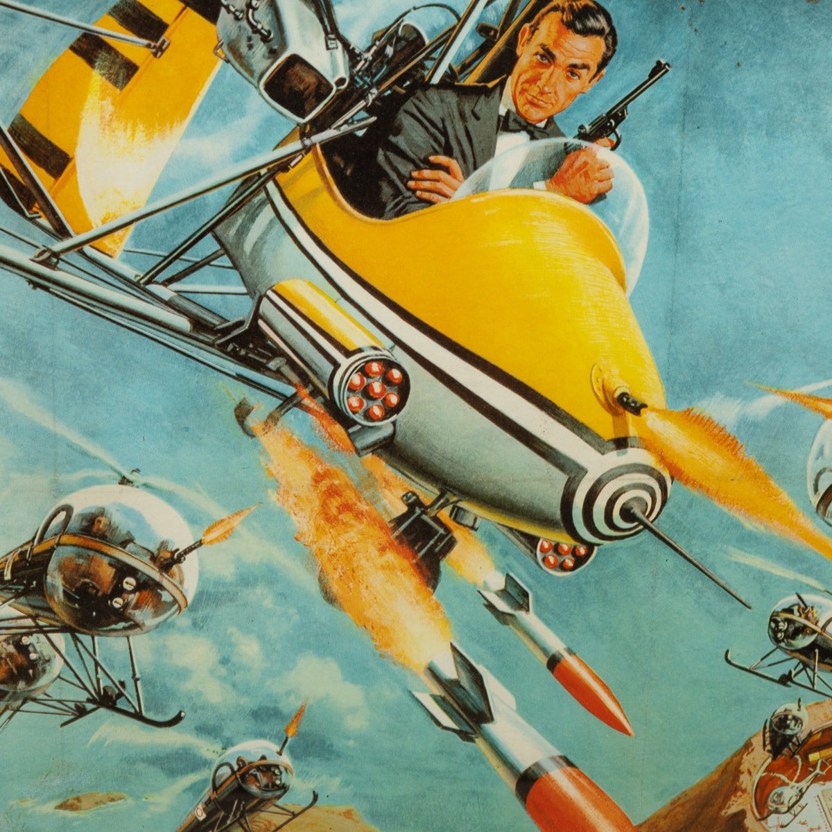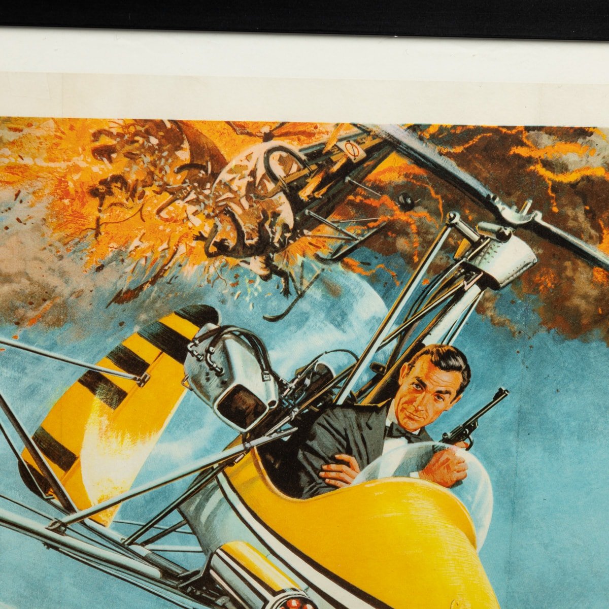 Dieser Teil war der fünfte James-Bond-Film von Eon Productions unter der Regie von Lewis Gilbert, dem ersten seiner drei Bond-Filme. Das Drehbuch, das sich an Ian Flemings Roman von 1964 anlehnt, stammt aus der Feder von Roald Dahl. Während der Produktion wurde Sean Connerys Rücktritt von der Rolle des Bond bekannt gegeben, obwohl er später in "Diamonds are Forever" (1971) und "Never Say Never Again" (1983) zurückkehrte. Die Werbemaßnahmen für die Veröffentlichung des Films waren umfangreich und umfassten drei verschiedene Plakate, auf denen Connery zu sehen war: eines in einer von Frauen umgebenen Badewanne, ein anderes mit dem ikonischen Flugzeug Little Nelly und das dritte, das Connery in einem Vulkan zeigte. Künstler: Frank McCarthy (1924-2002). Dieses großartige Poster wird mit einem zeitlosen, maßgefertigten schwarzen Rahmen geliefert.