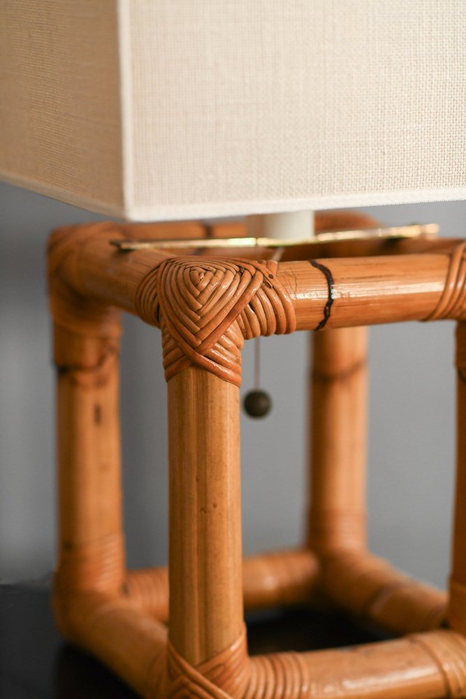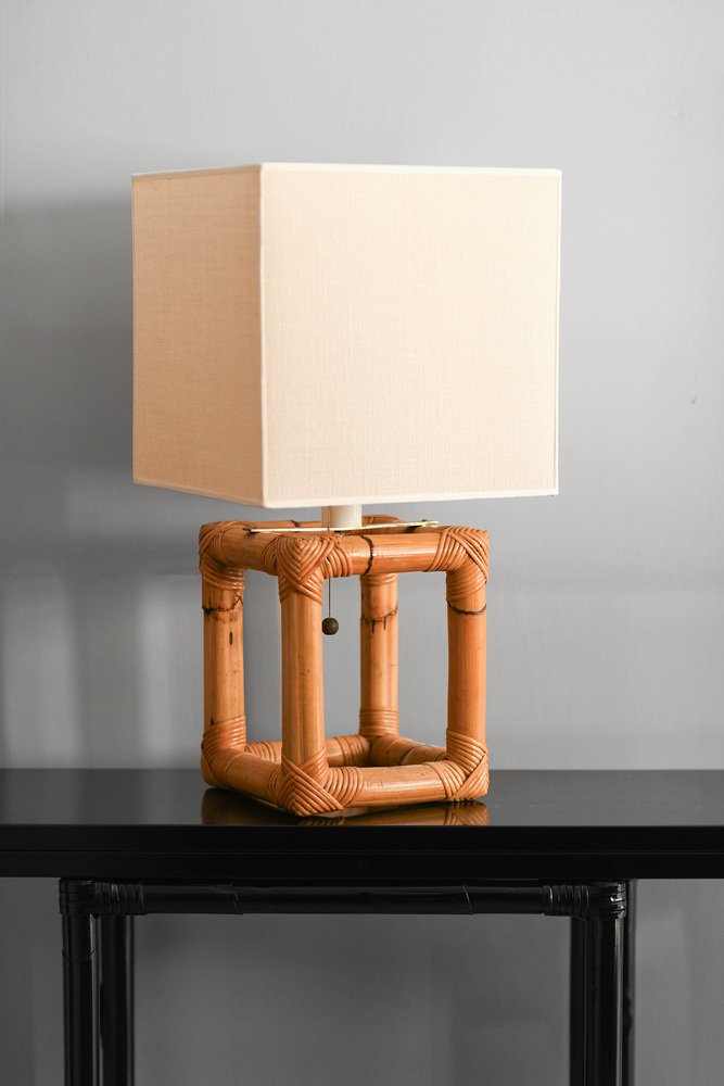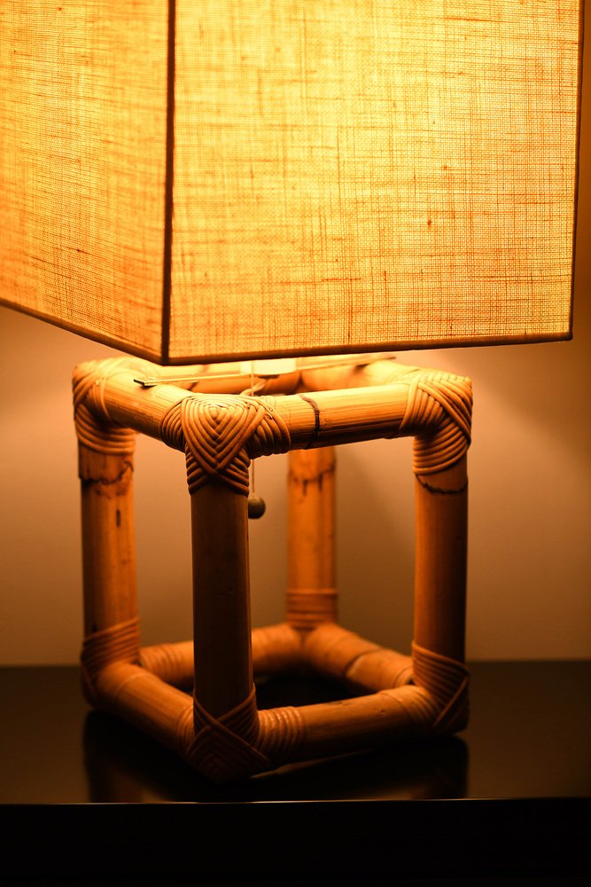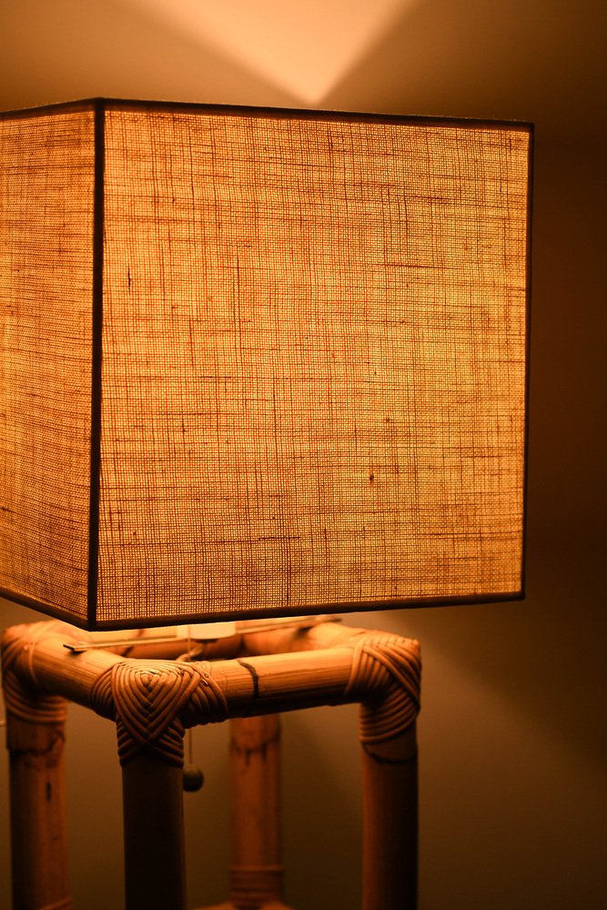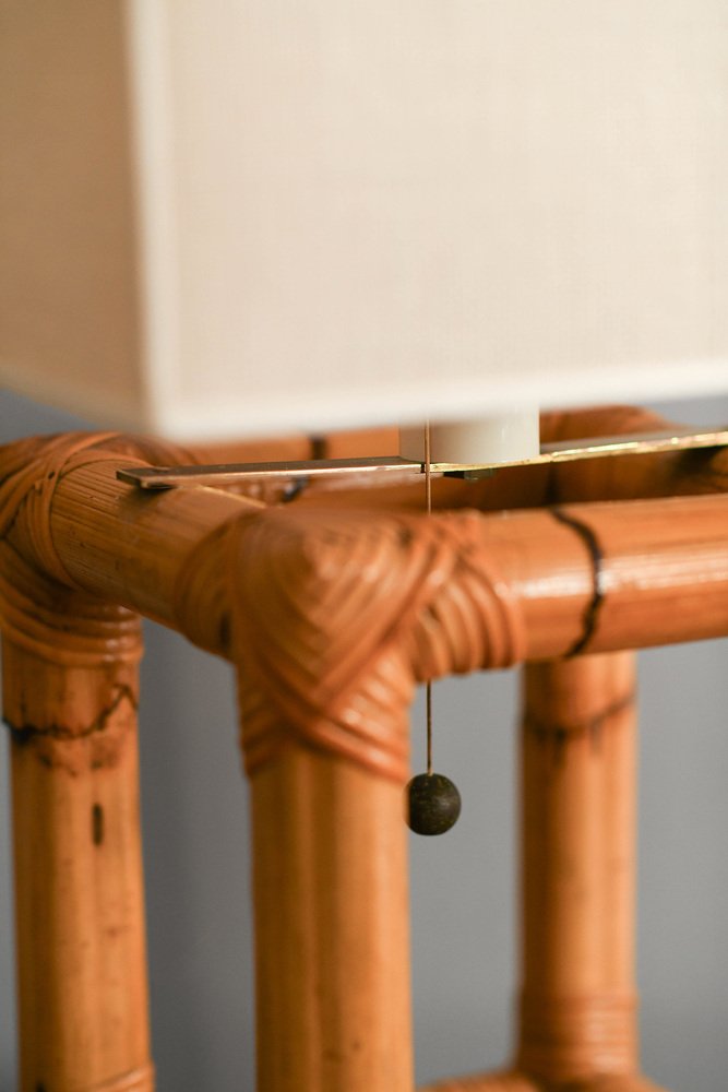Bambus Lampe mit Stoff Lampenschirm, 1980er