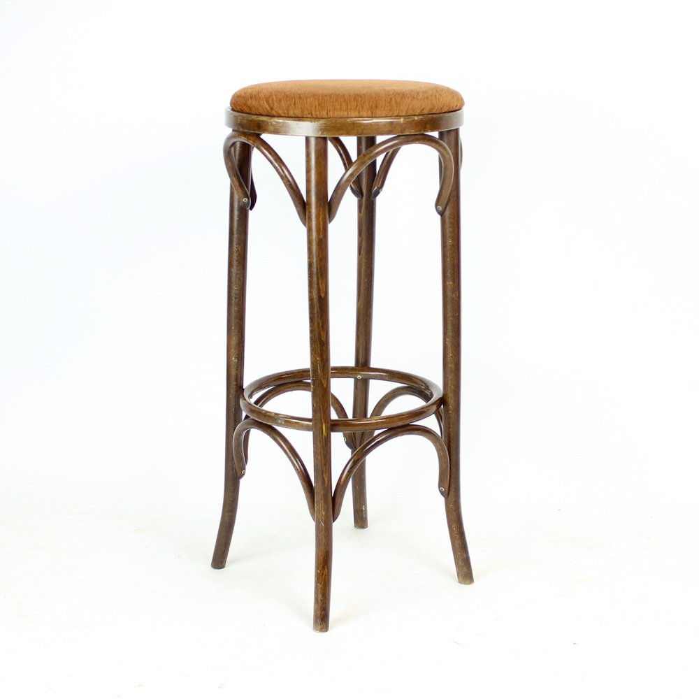 A beautiful set of six vintage high bar stools, crafted in the 1960s by TON in Czechoslovakia, following the original Thonet No. 73 bentwood design. Made of beautifully curved bent beechwood, these iconic backless stools showcase the timeless elegance and flowing lines that made Thonet’s bentwood furniture world-famous.