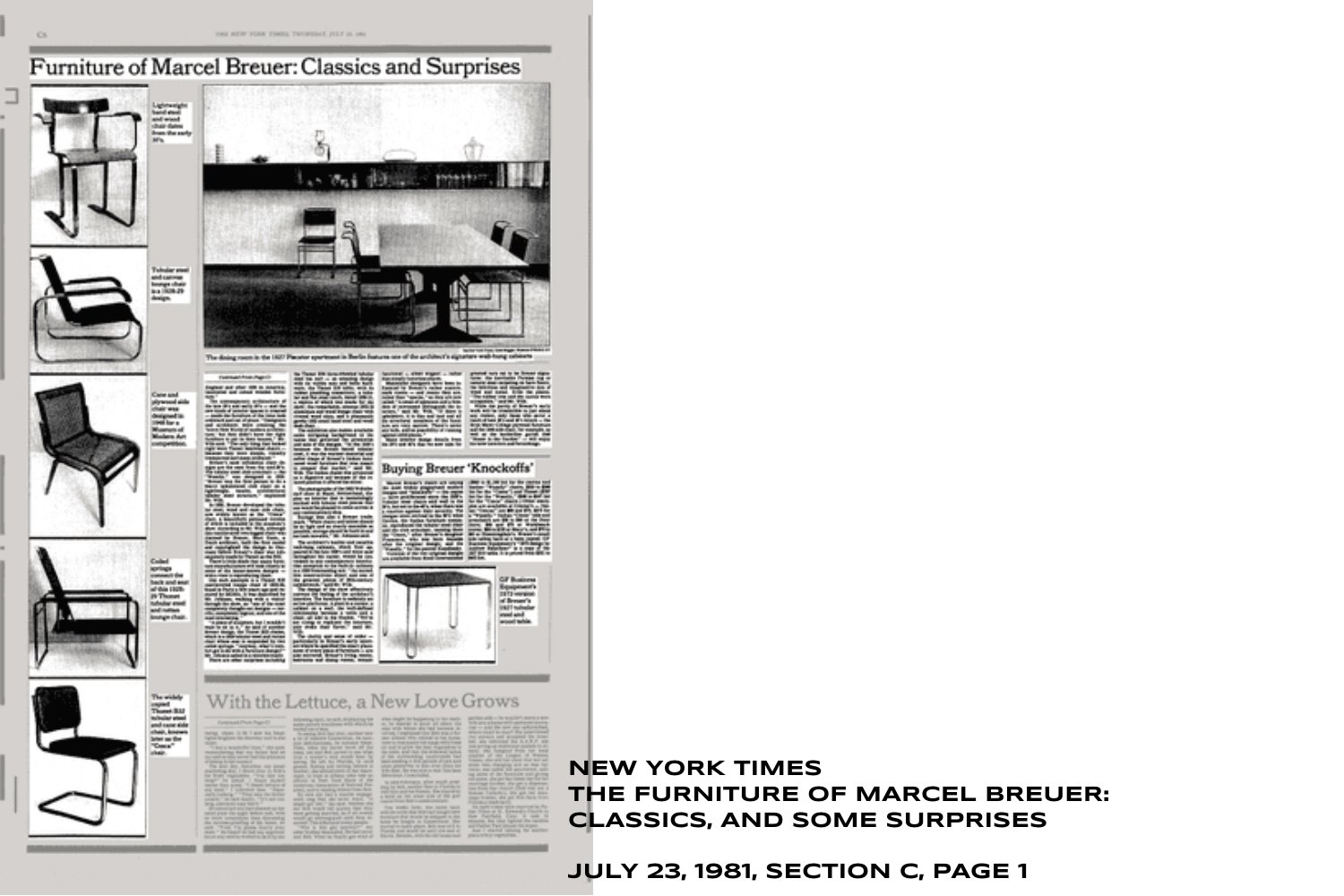 Thonet ist das älteste bestehende Möbelunternehmen der Welt. Es begann seine langjährige Tätigkeit im Jahr 1819, als der Tischler Michael Thonet in Boppard, Deutschland, eine Möbelwerkstatt gründete. Als Anhänger des Biedermeierstils spezialisierte er sich auf Stühle, Tische und Schränke, die sich durch klare Linien, reduzierte Verzierungen und die Betonung der Prinzipien des Funktionalismus auszeichnen. In den 1930er Jahren erlangten Thonets Experimente mit verleimten und dampfgebogenen Holzmöbeln, wie etwa sein berühmter Boppard-Stuhl (1836), internationale Anerkennung. Thonets Projekte zeichneten sich durch eine Leichtigkeit, Langlebigkeit und Bequemlichkeit aus, die es zu dieser Zeit in der europäischen Möbelwelt noch nicht gab. Zu den ikonischen Werken der Thonet-Sammlung gehören: der Schaukelstuhl Nr. 1 (1860), der Caféhausstuhl Nr. 14 (um 1859), der Stuhl des Adolf-Loos-Cafémuseums (1899), der Stuhl Nr. 209 (um 1900), Otto Wagners Stuhl Nr. 247 (1904) und Josef Hoffmanns Nr. 811 (1925). In den frühen 1920er Jahren begannen die Gebrüder Thonet auch mit der Produktion von gebogenen Stahlrohrentwürfen von Bauhaus-Meistern wie Marcel Breuer, Ludwig Mies van der Rohe und Mart Stam.