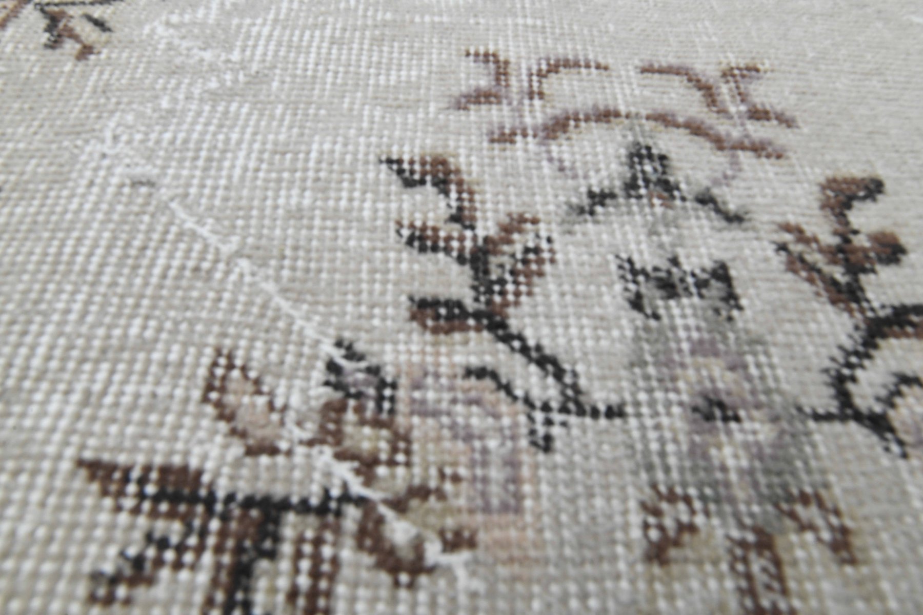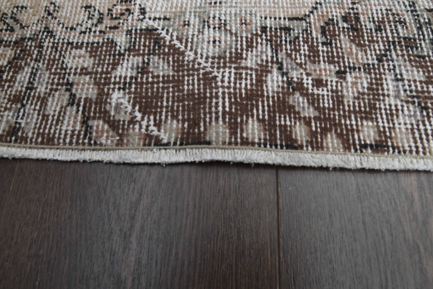 Dieser einzigartige Vintage-Läufer ist handgeknüpft und handgewebt von erfahrenen Kunsthandwerkern, die reine Wolle in gedeckten Naturtönen und ein stilvolles, florales Design in Farbe verwenden. Er ist in sehr gutem Zustand, professionell gereinigt und versandfertig. Dieser einzigartige Teppich wird von erfahrenen Kunsthandwerkern mit sehr feiner, handgesponnener Wolle gefertigt, die die Haltbarkeit des Teppichs über Generationen hinweg verlängert. Jeder türkische Vintage-Teppich ist ein Kunstwerk und erzählt durch seine Muster und Farben eine Geschichte. Sie verleihen jedem Raum in Ihrem Zuhause ein besonderes Aussehen. Florhöhe: Niedriger Flor 0,2" (0,5 cm)