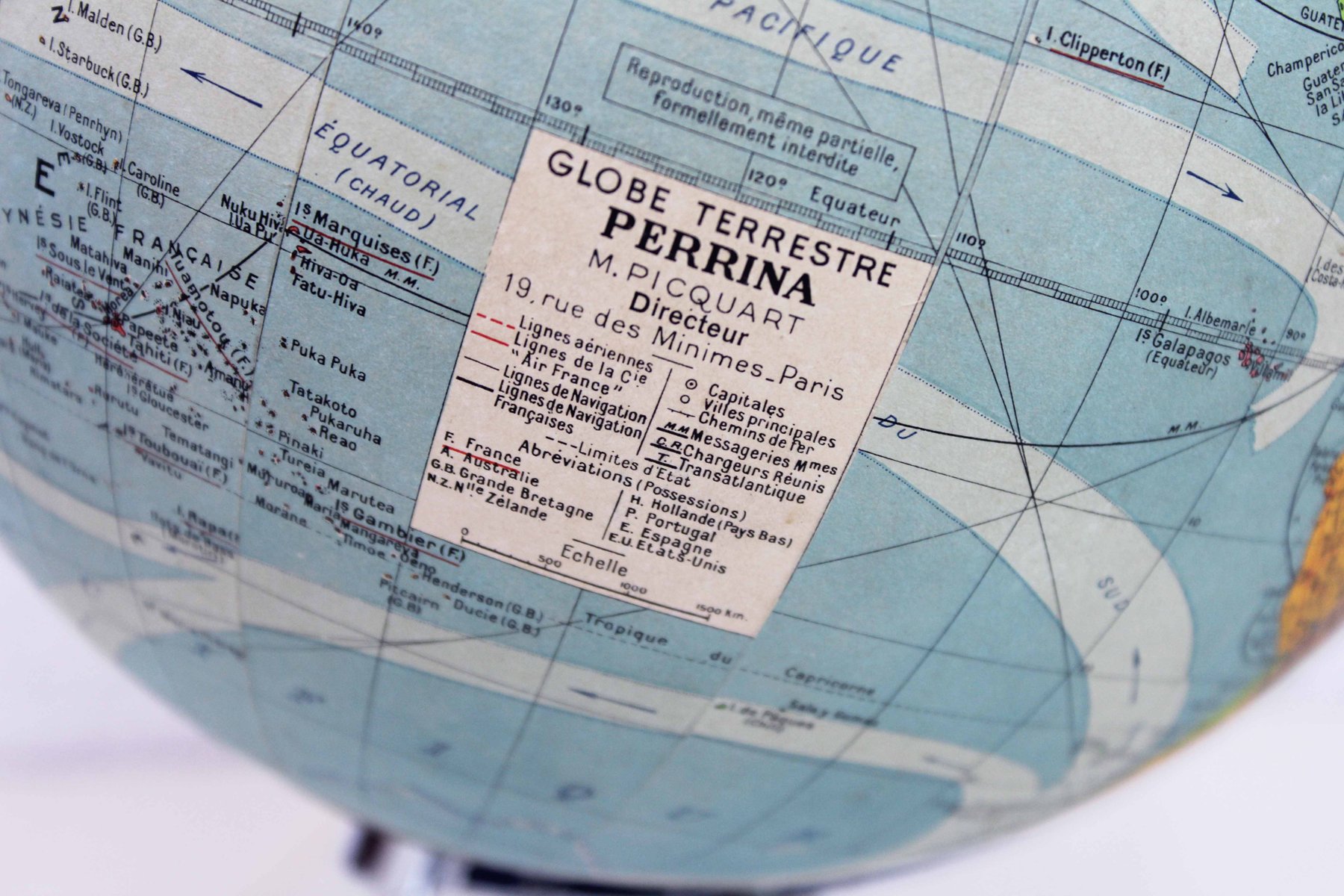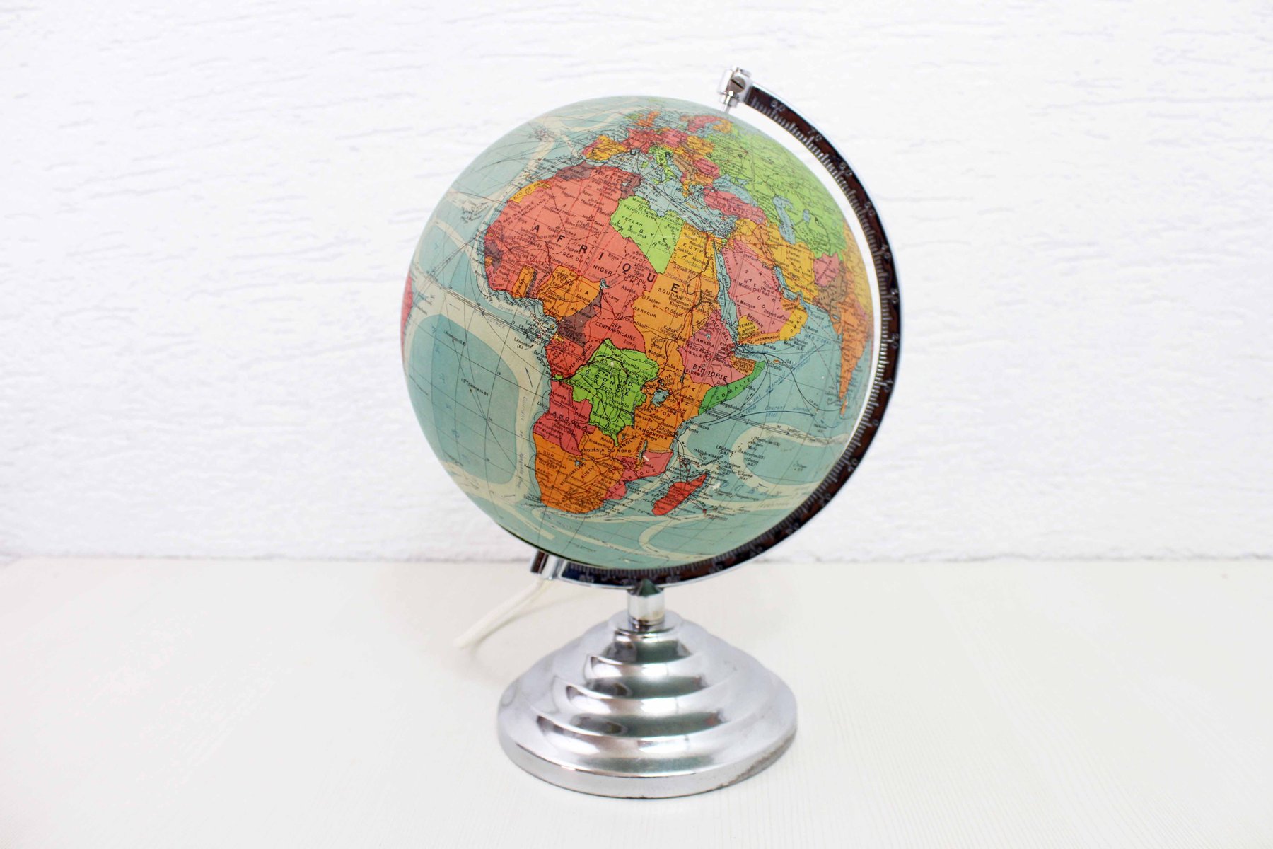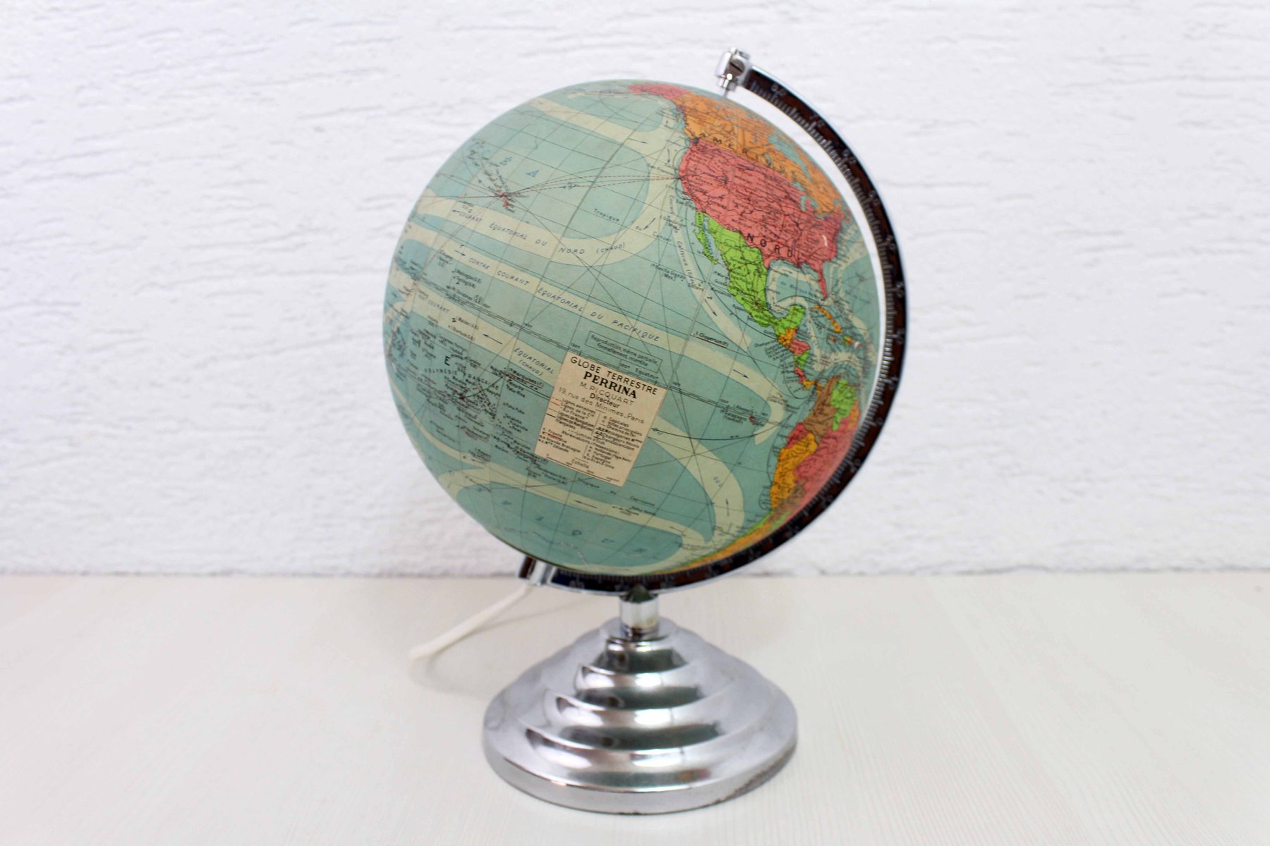 Überprüfen Sie Ihre Geographie mit diesem herrlichen Erdkugel in Kunst Dekoration der berühmten Französisch Marke Perrina.