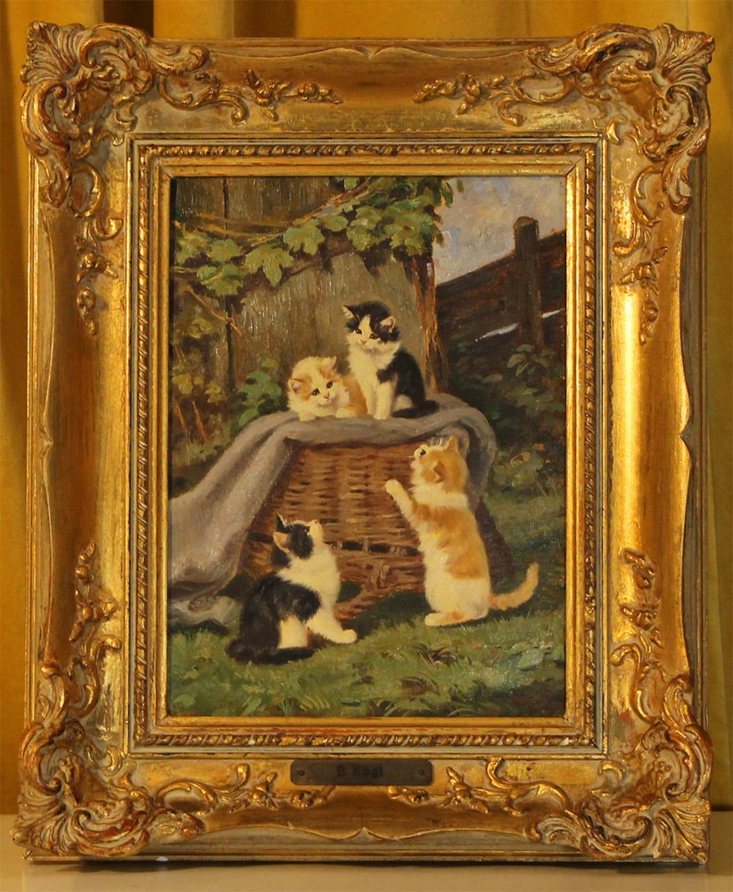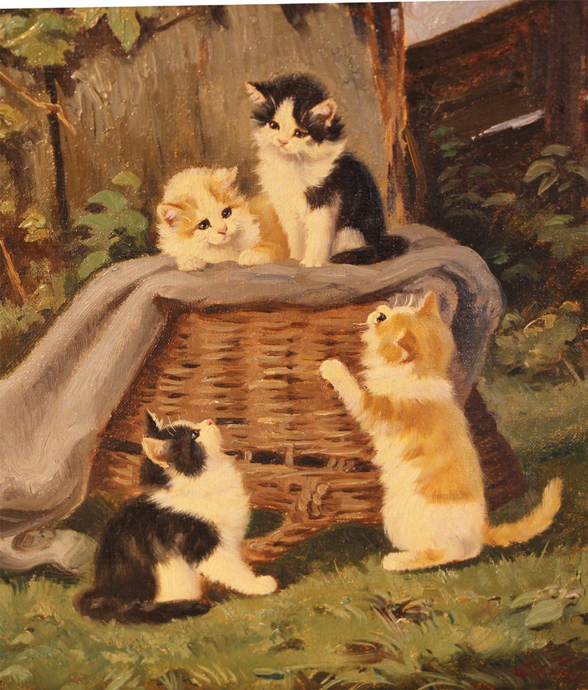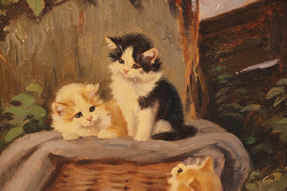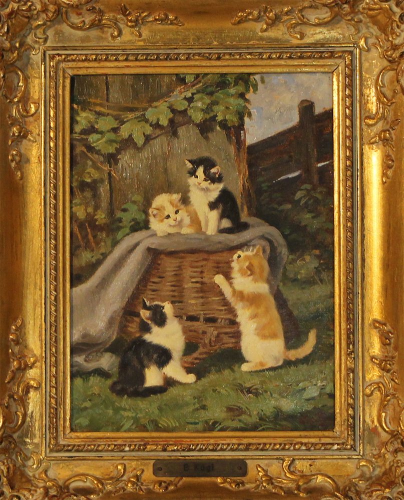Benno Kögl, Vier Kätzchen, Mitte 20. Jh., Öl auf Leinwand, Gerahmt
