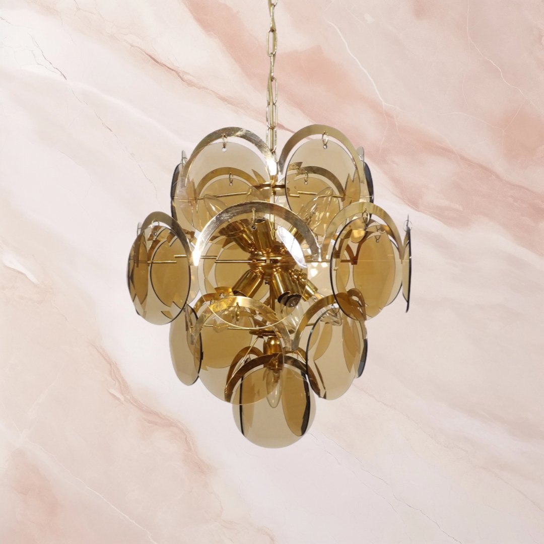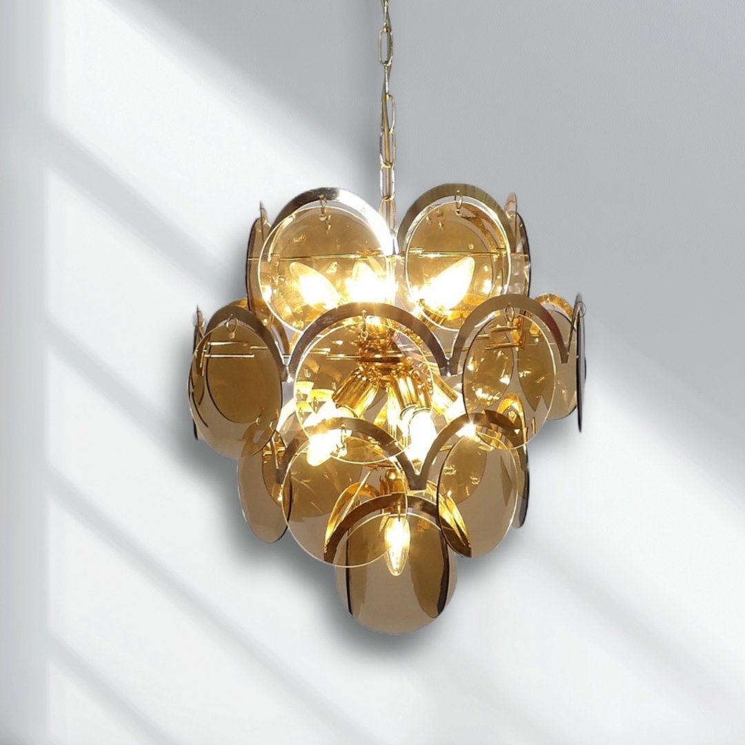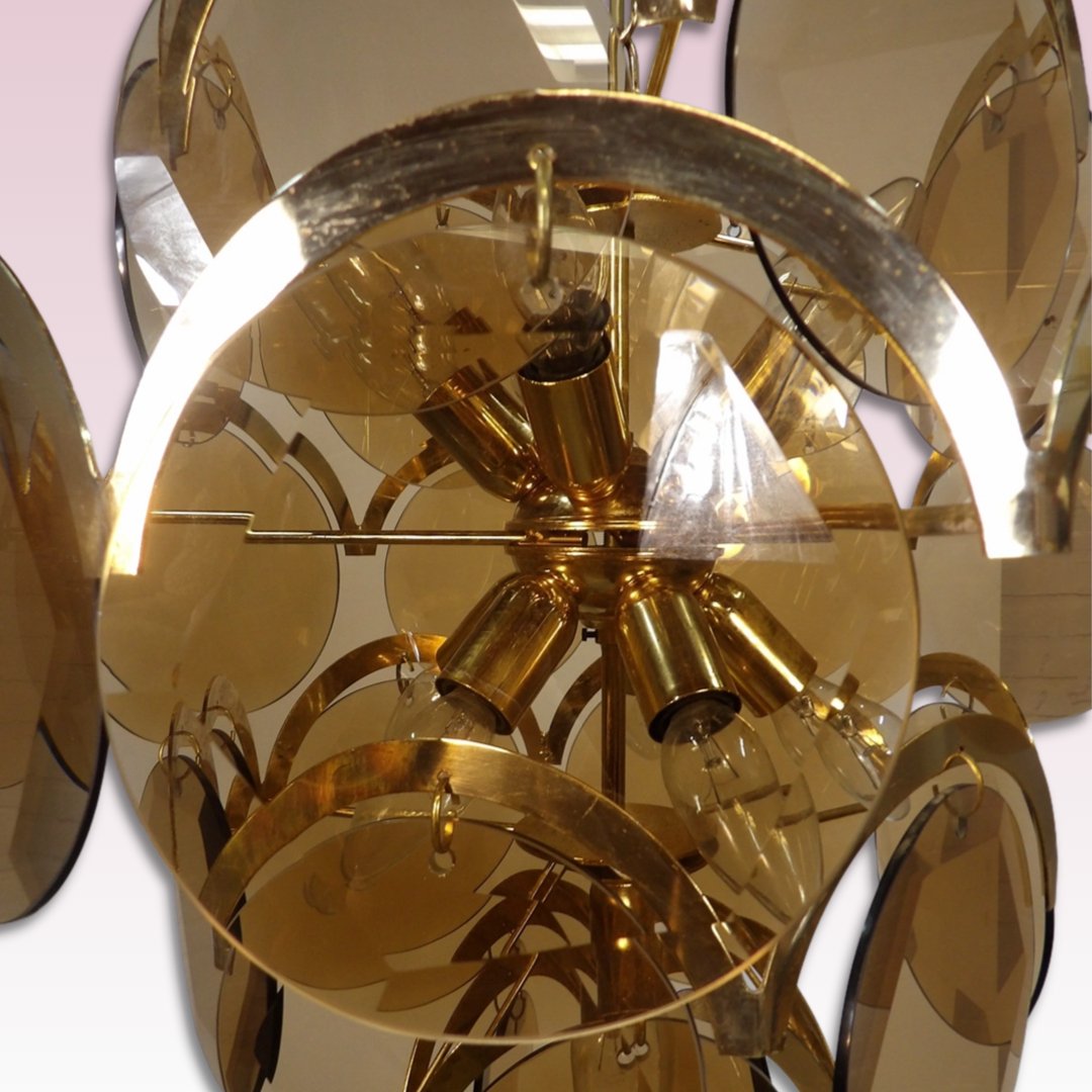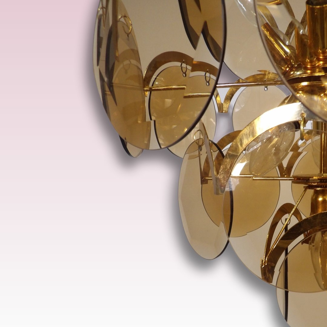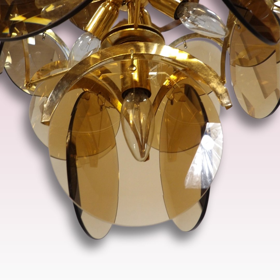 Bernsteinfarbener Glas Kronleuchter mit vergoldetem Rahmen von Vistosi, Italy