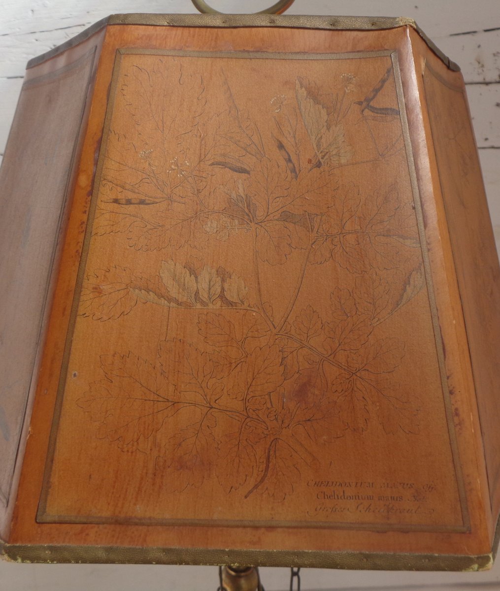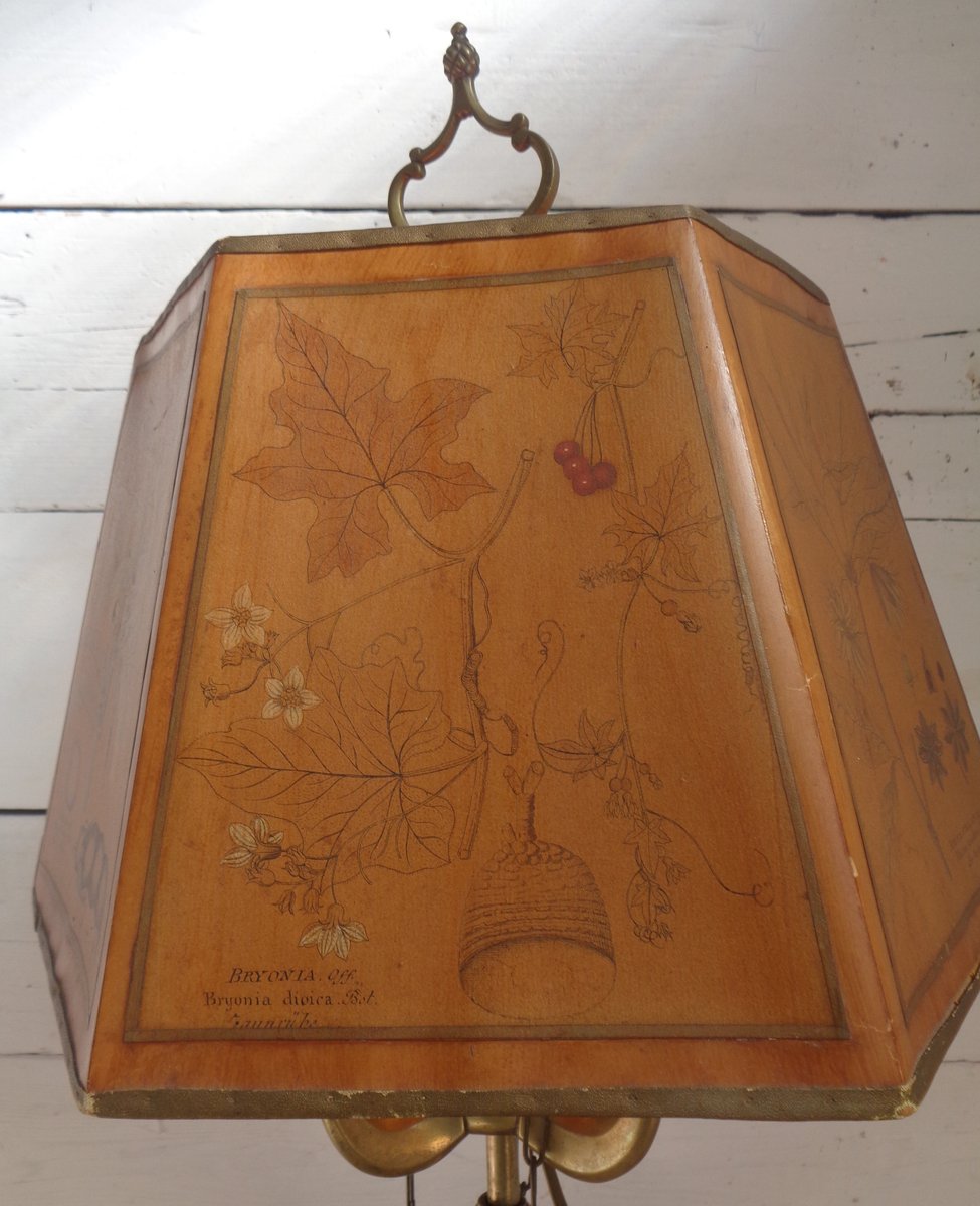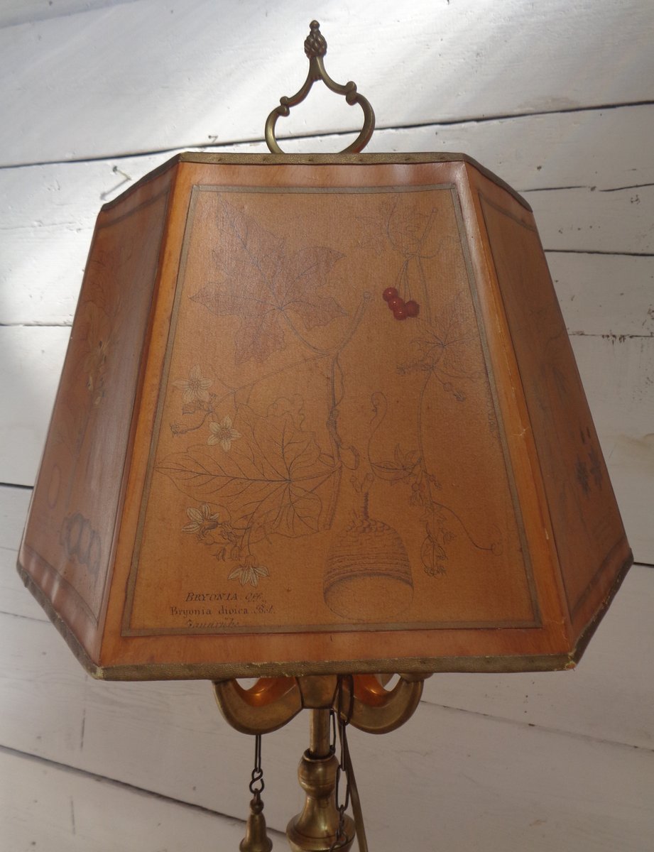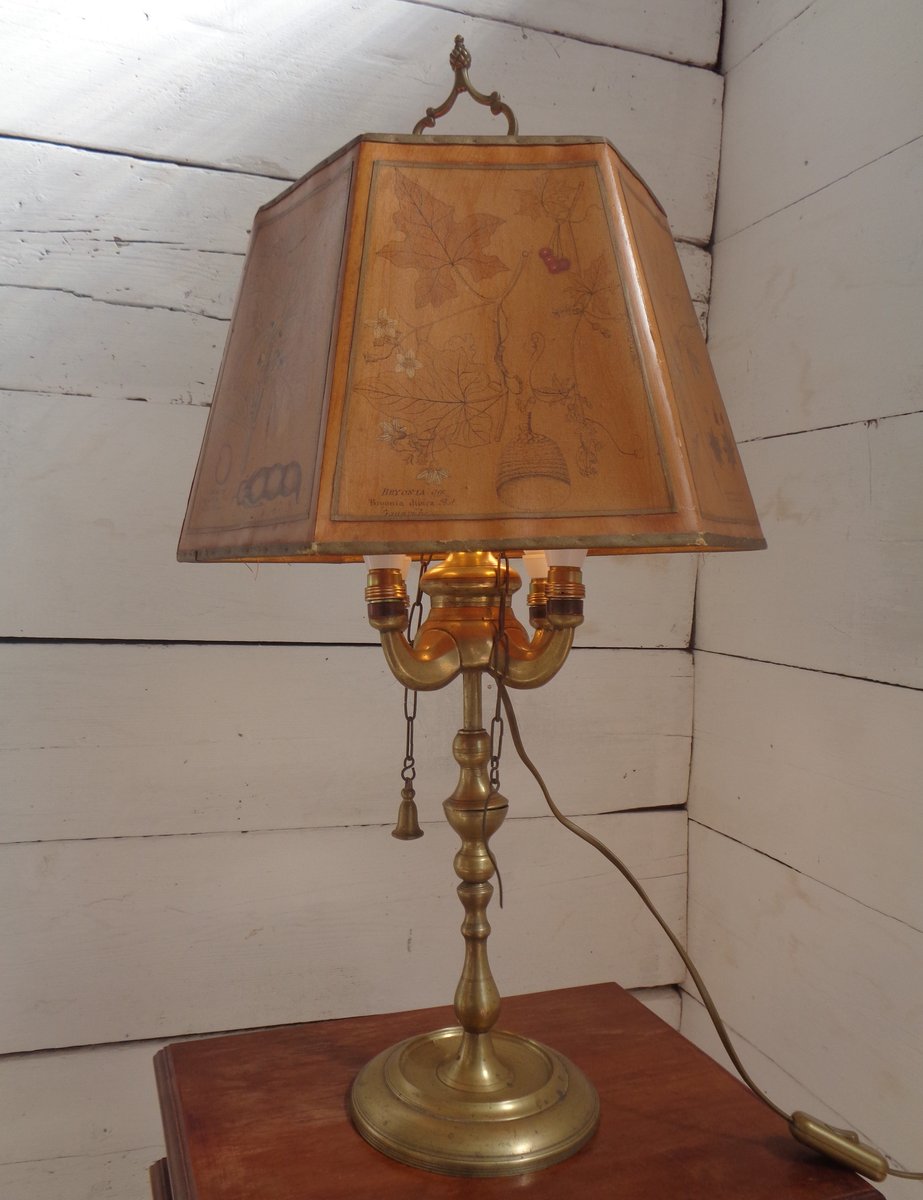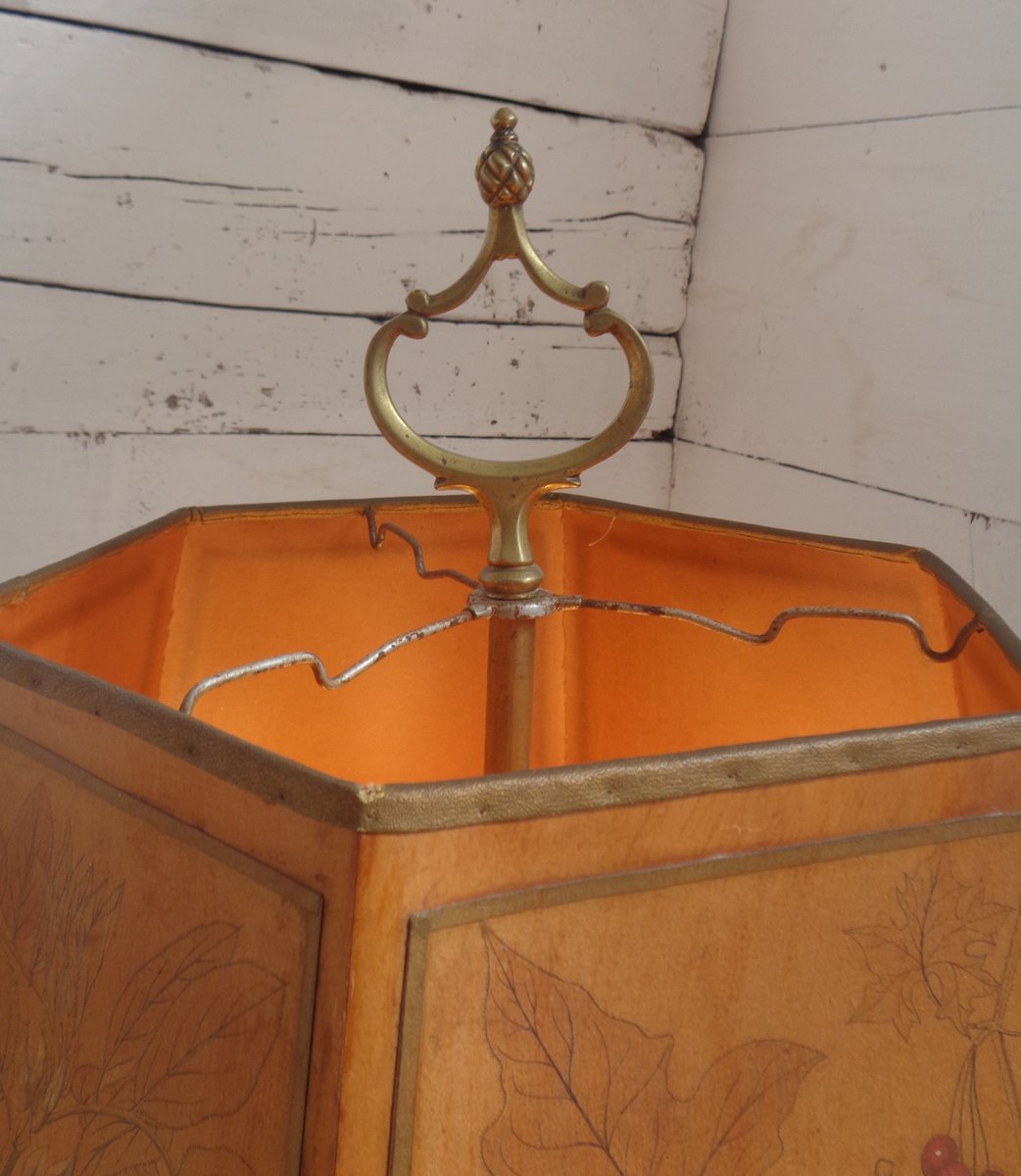Bouillotte Tischlampe mit Achteckigem Hut aus bedrucktem Pergament, 1930er