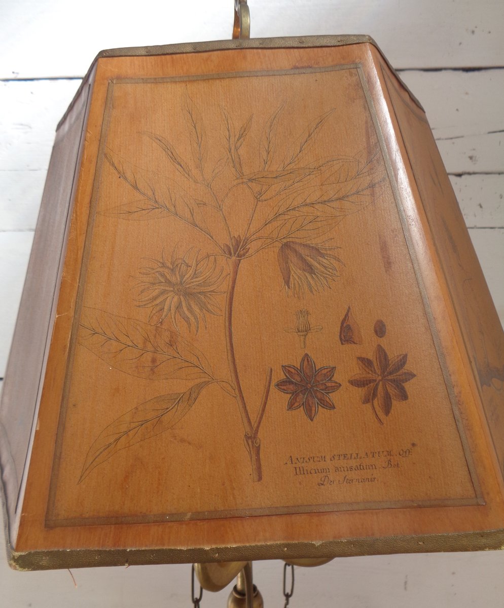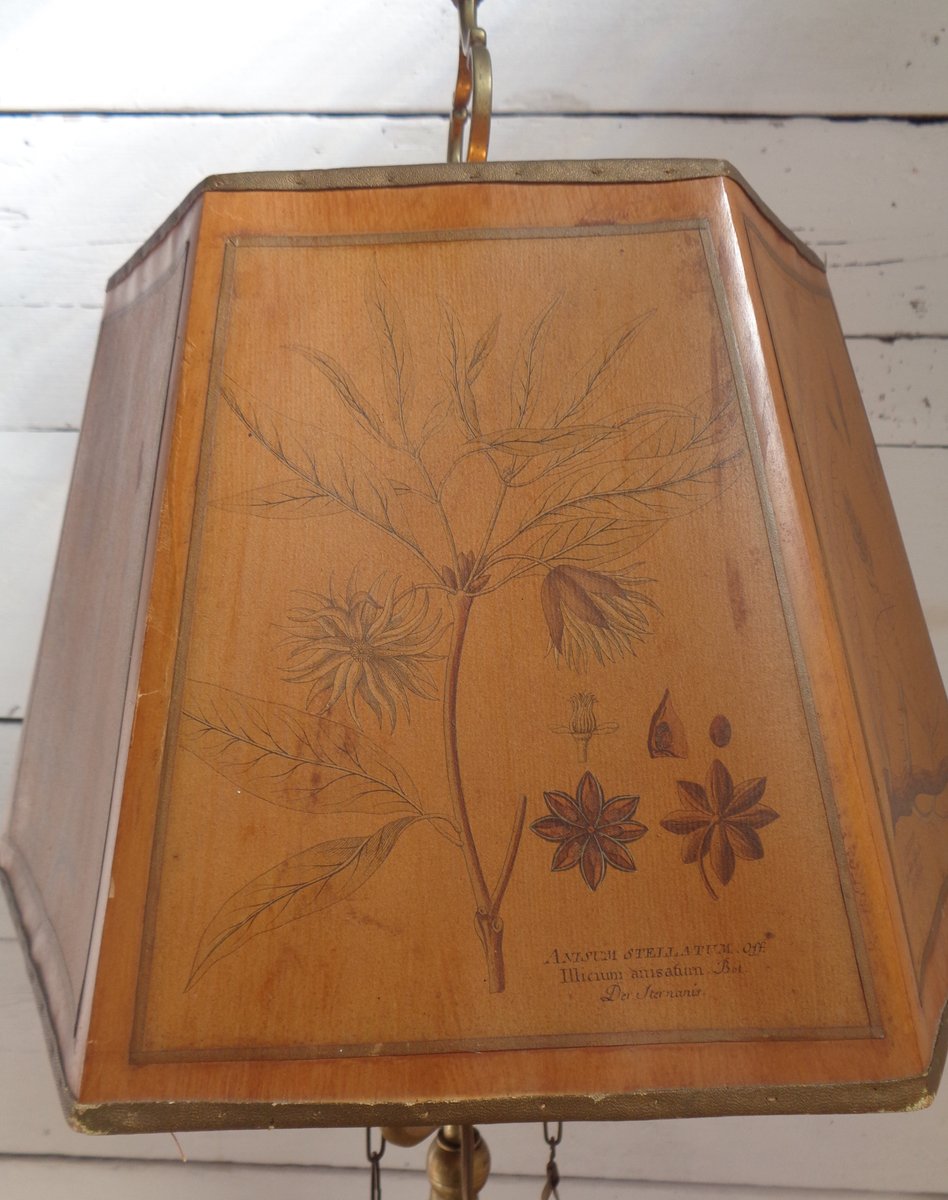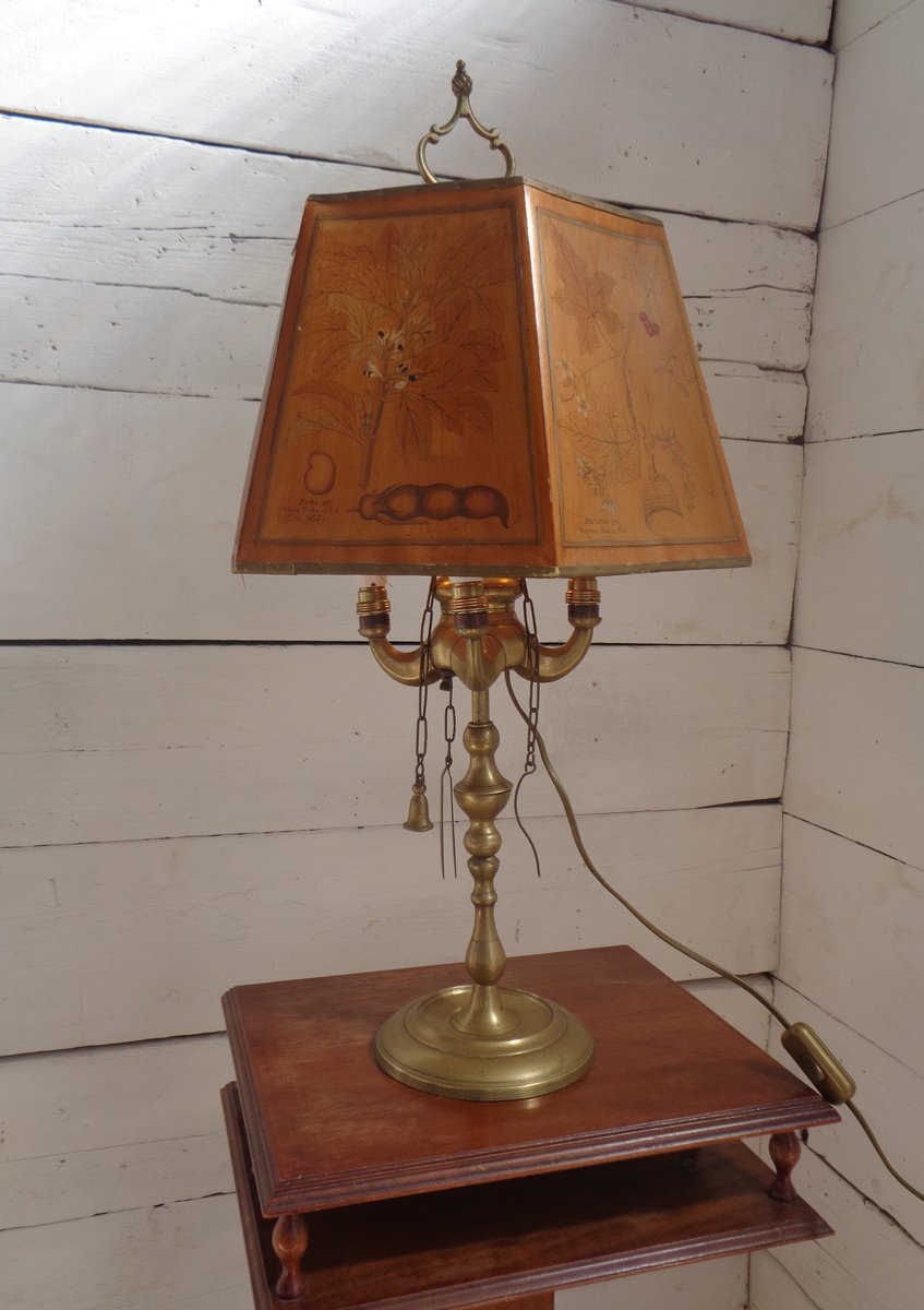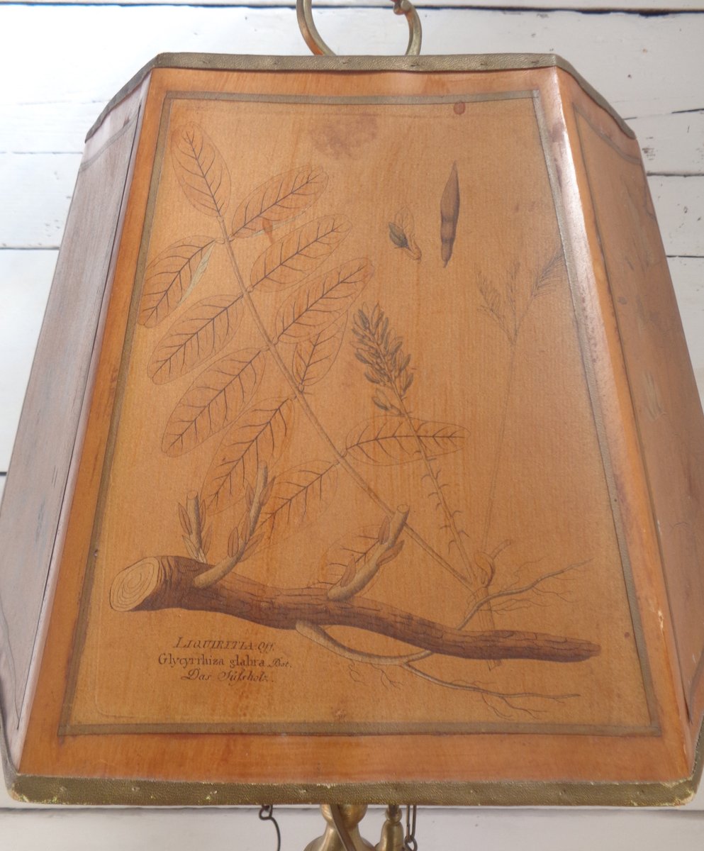Bouillotte Tischlampe mit Achteckigem Hut aus bedrucktem Pergament, 1930er