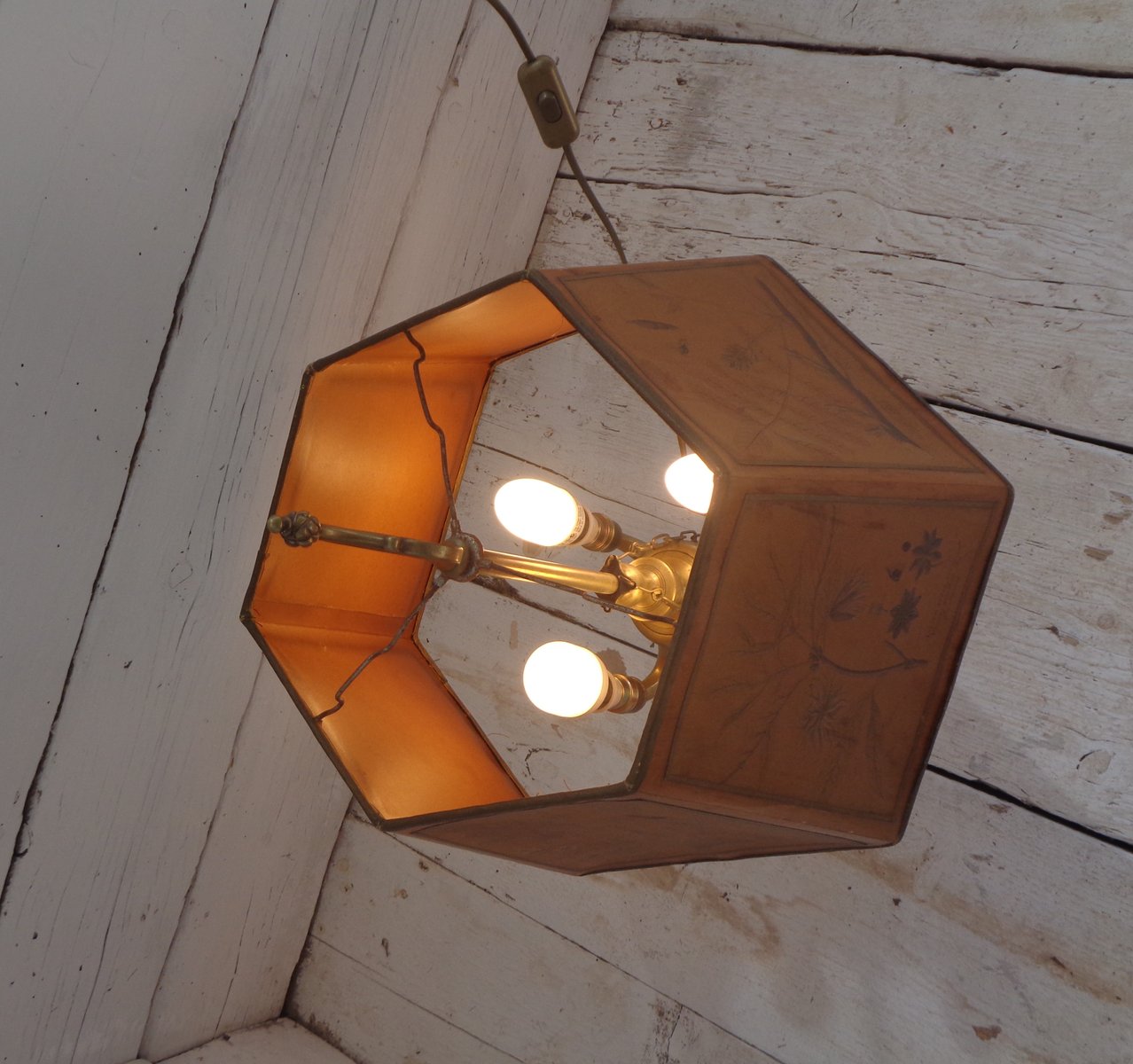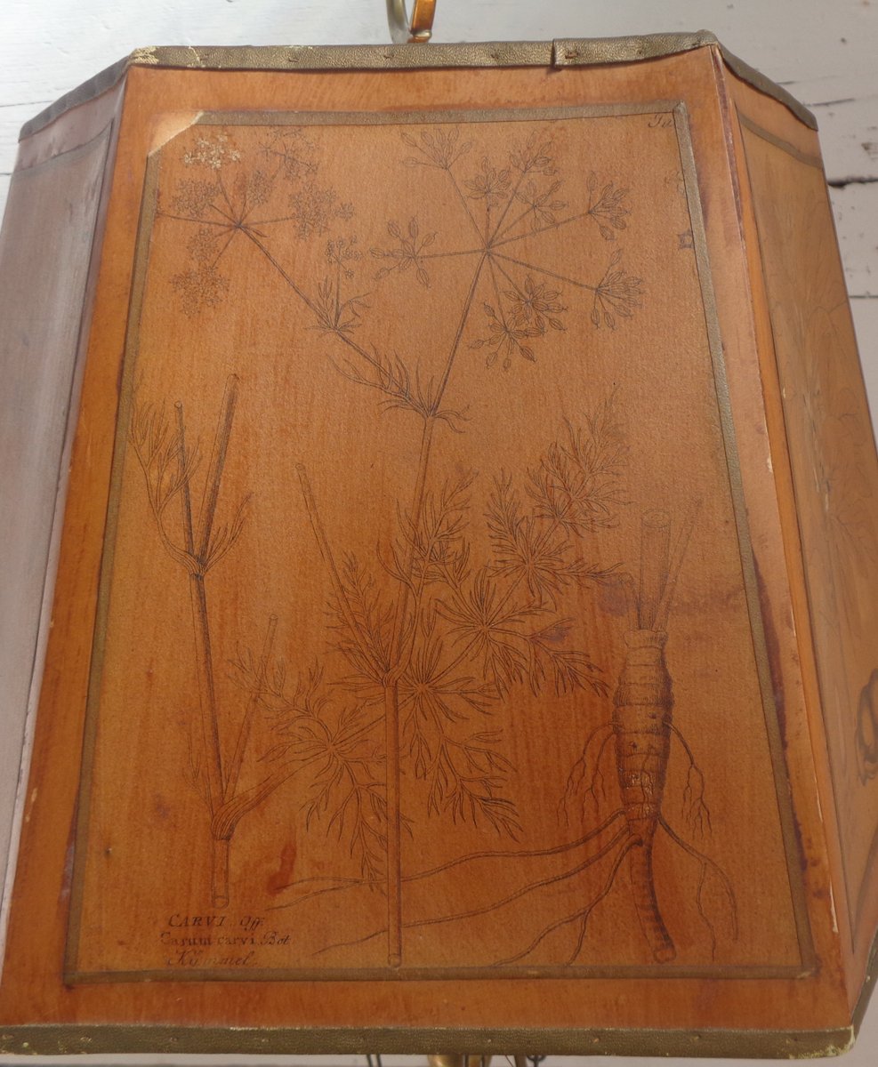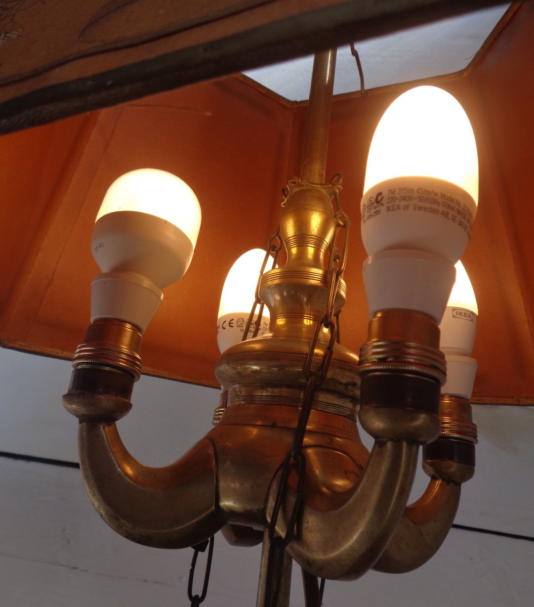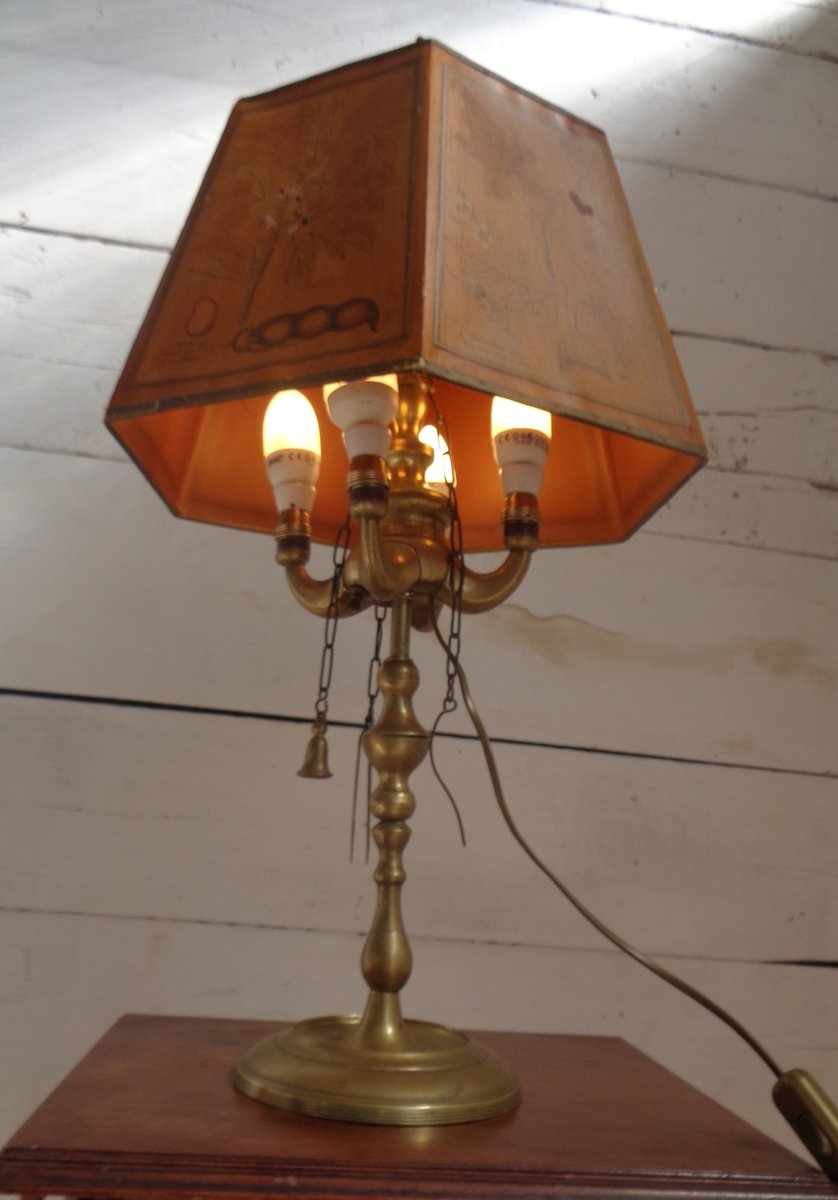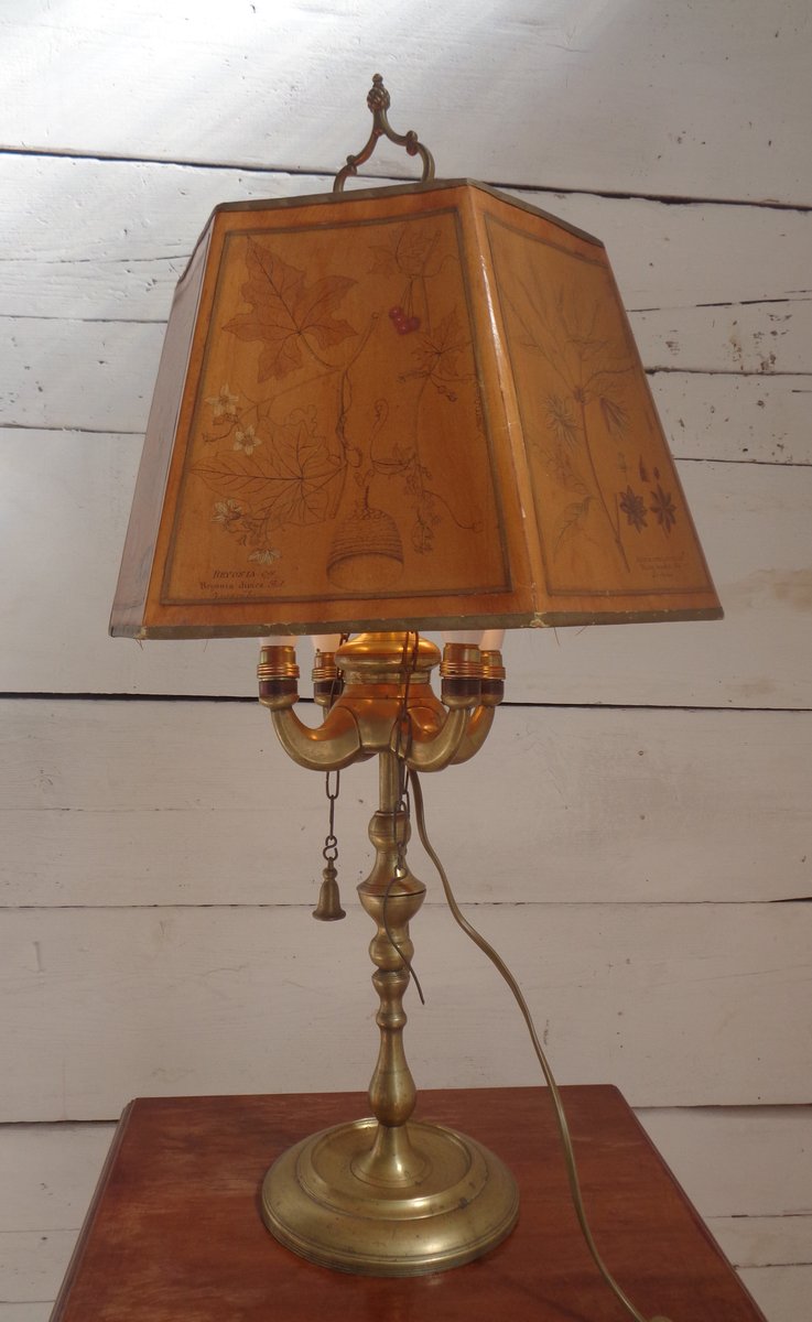 Bouillotte Tischlampe mit Achteckigem Hut aus bedrucktem Pergament, 1930er