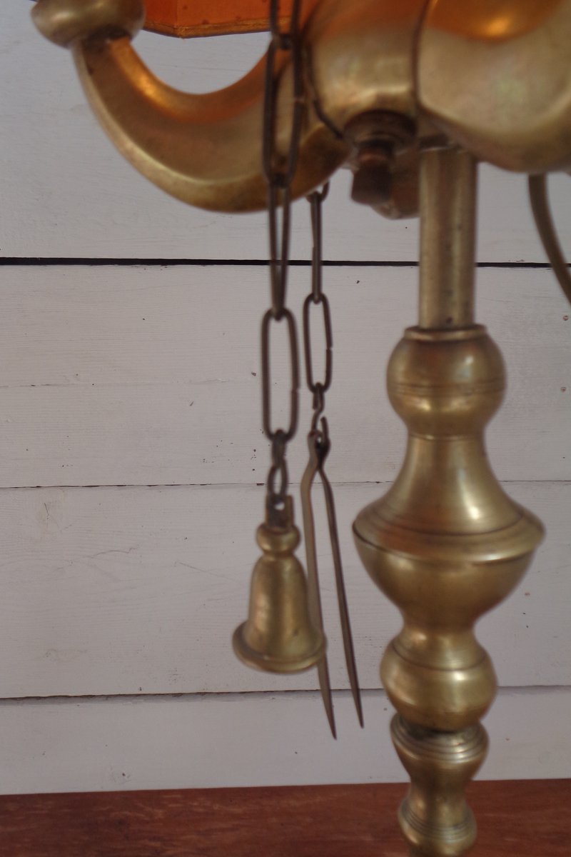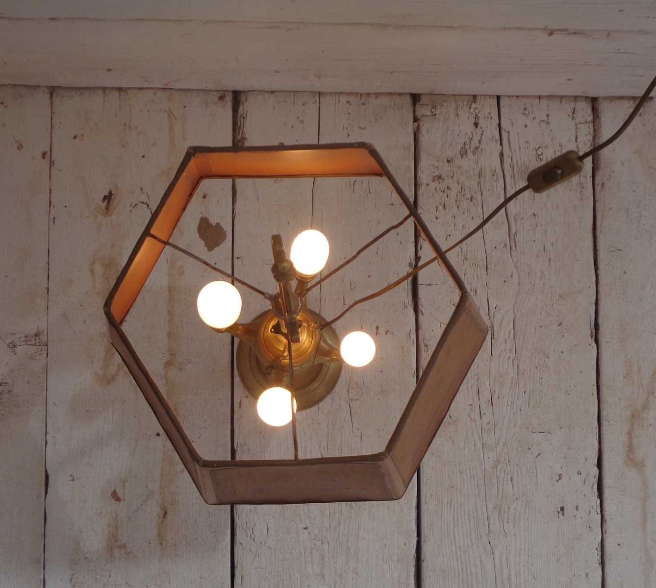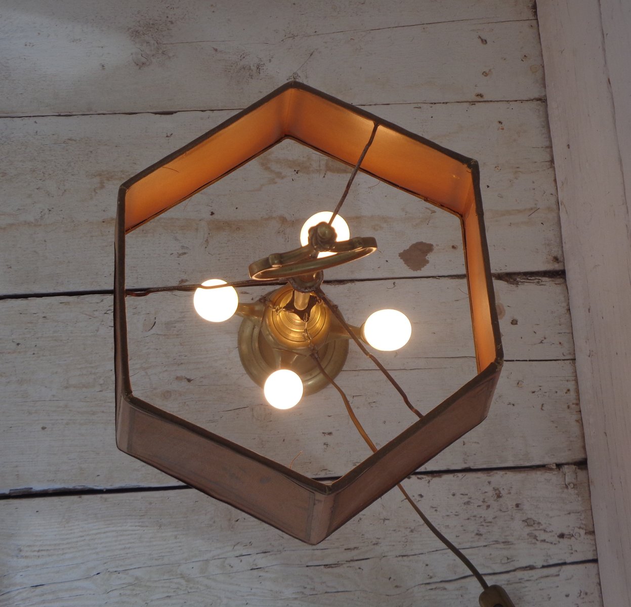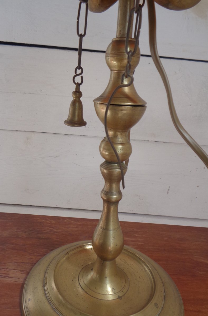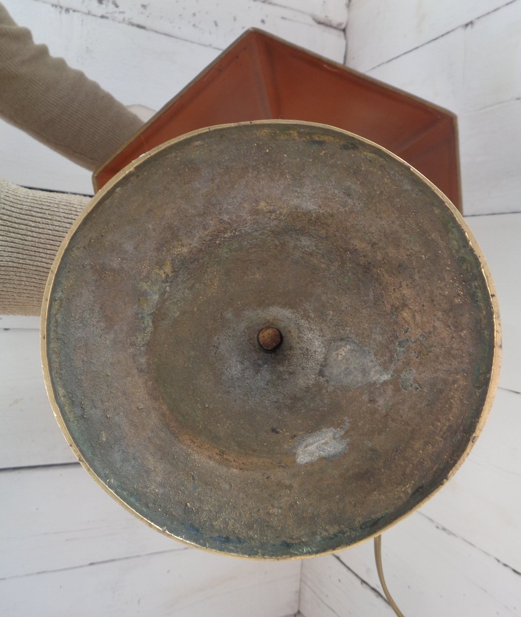 Bouillotte Tischlampe mit Achteckigem Hut aus bedrucktem Pergament, 1930er