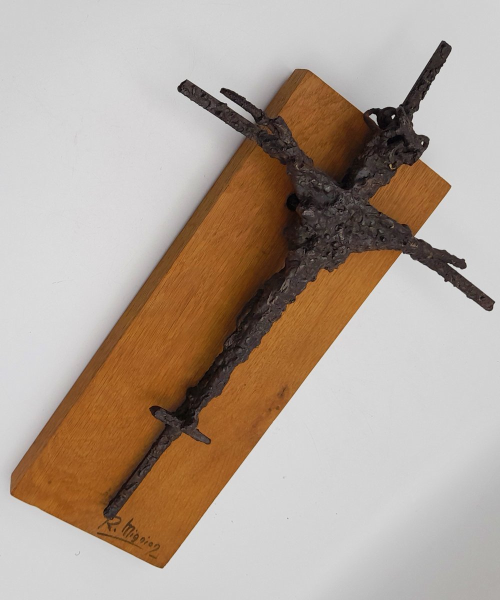 Brutalistische Skulptur Kruzifix von René Mignion, Frankreich, 1967