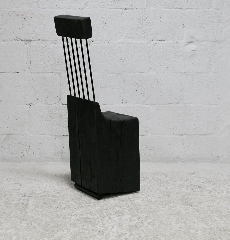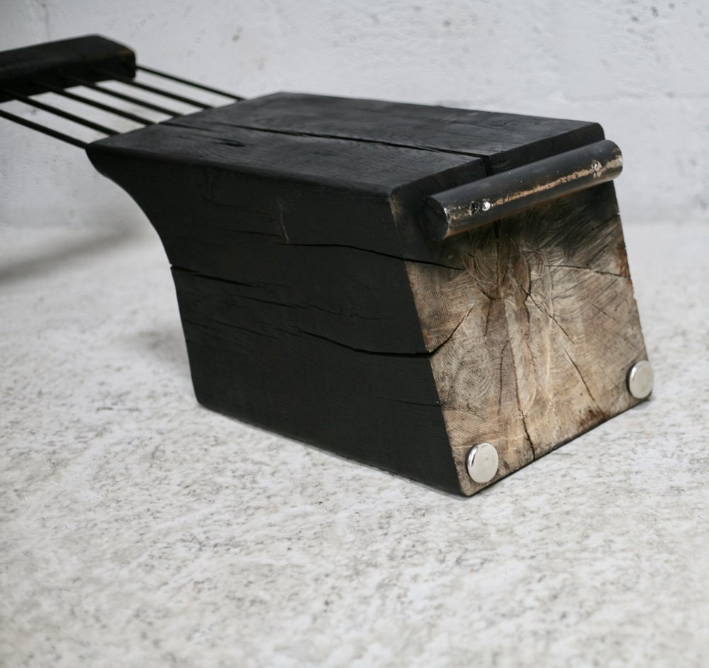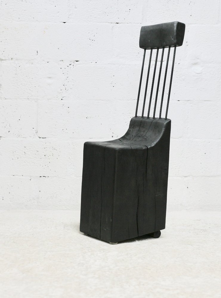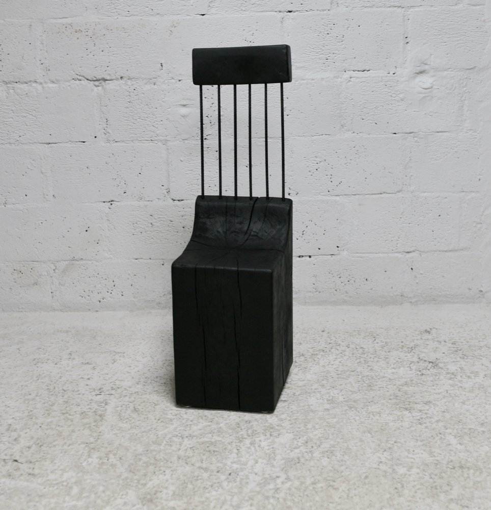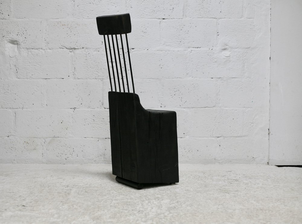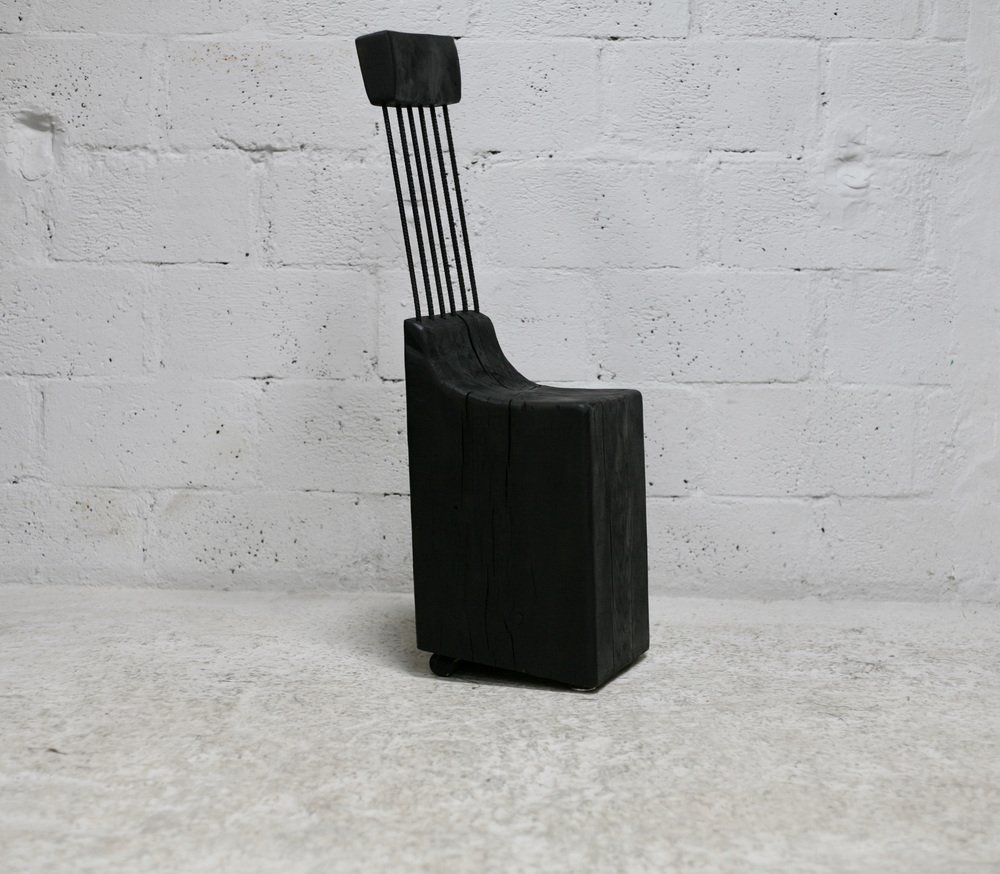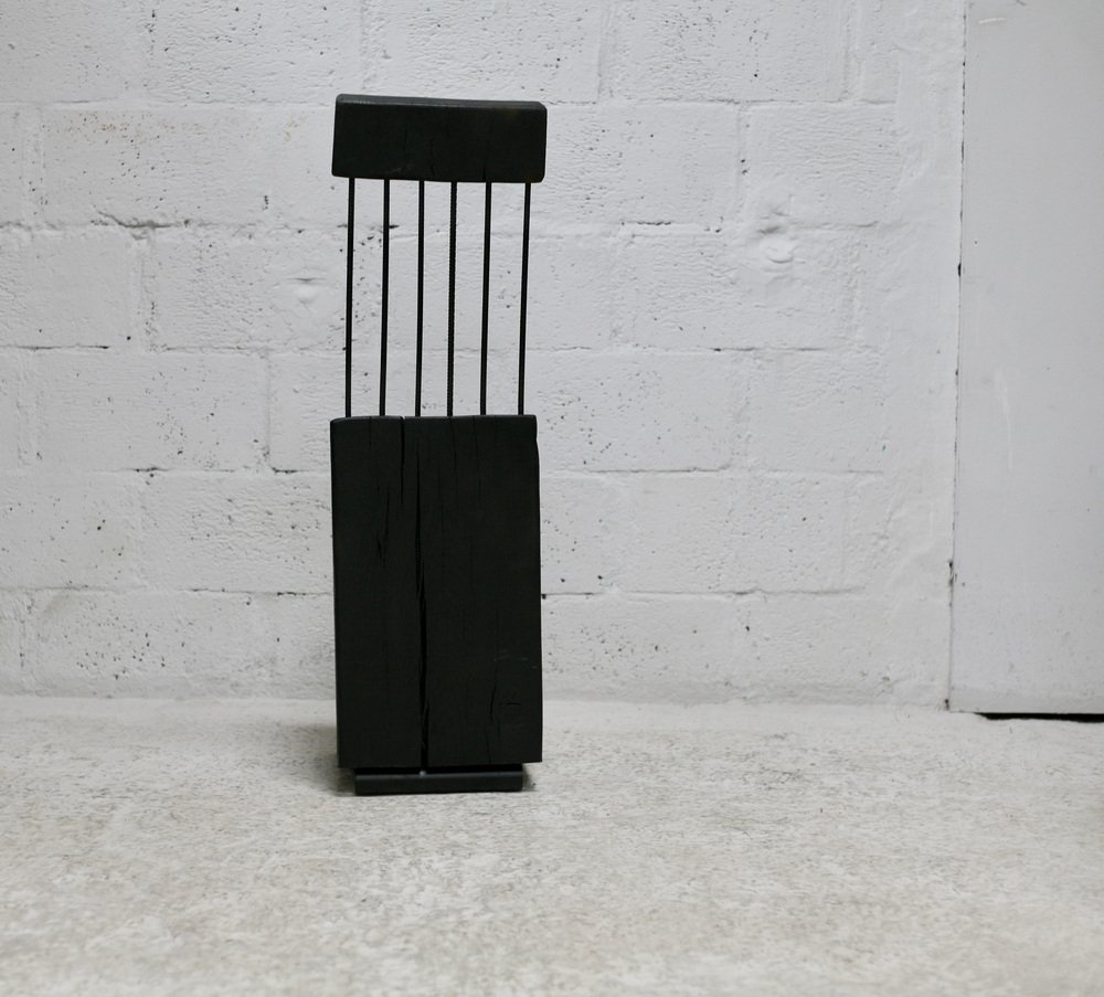 Brutalistischer Stuhl aus Schwarz gebeiztem Rohholz & Stahl, 1970er