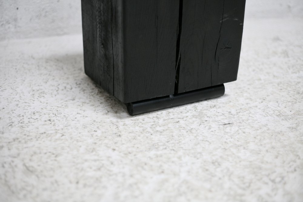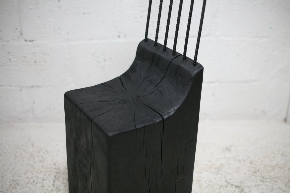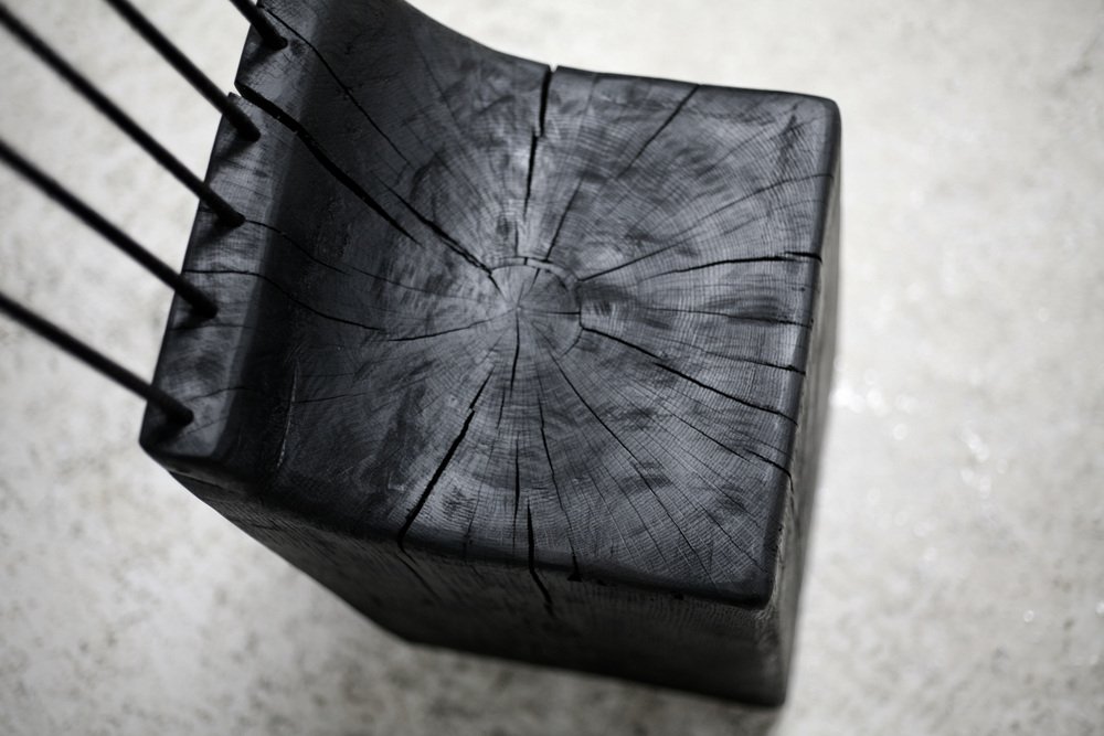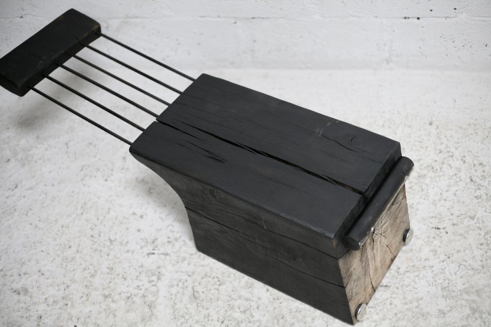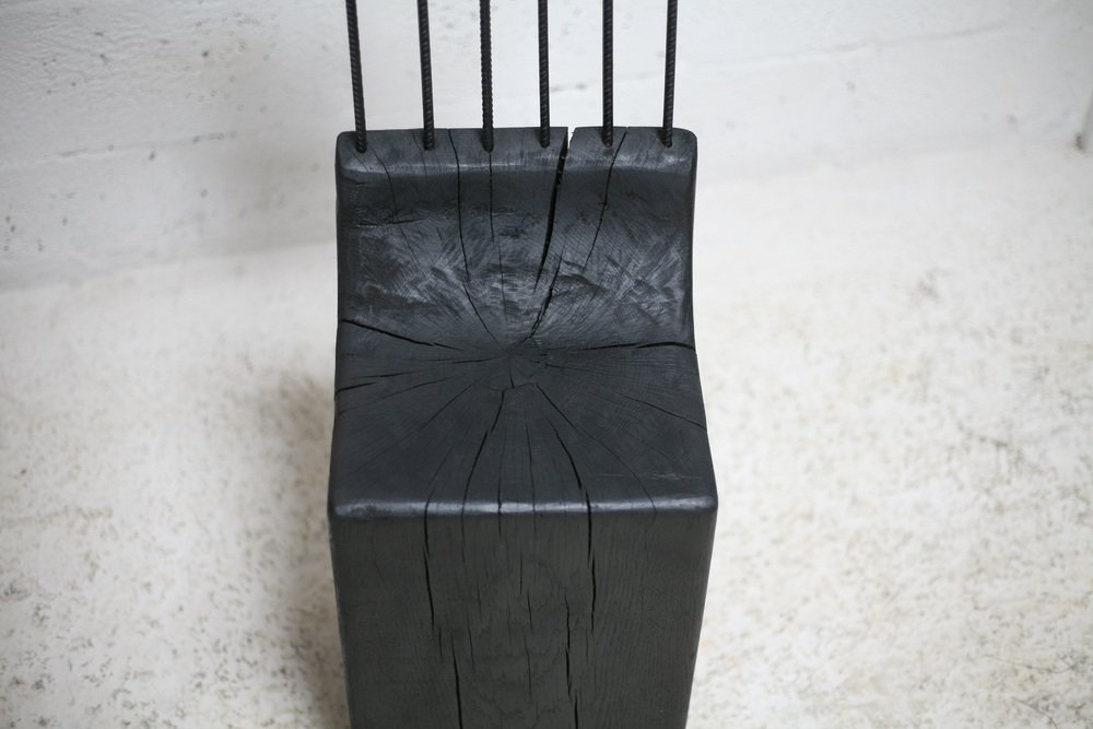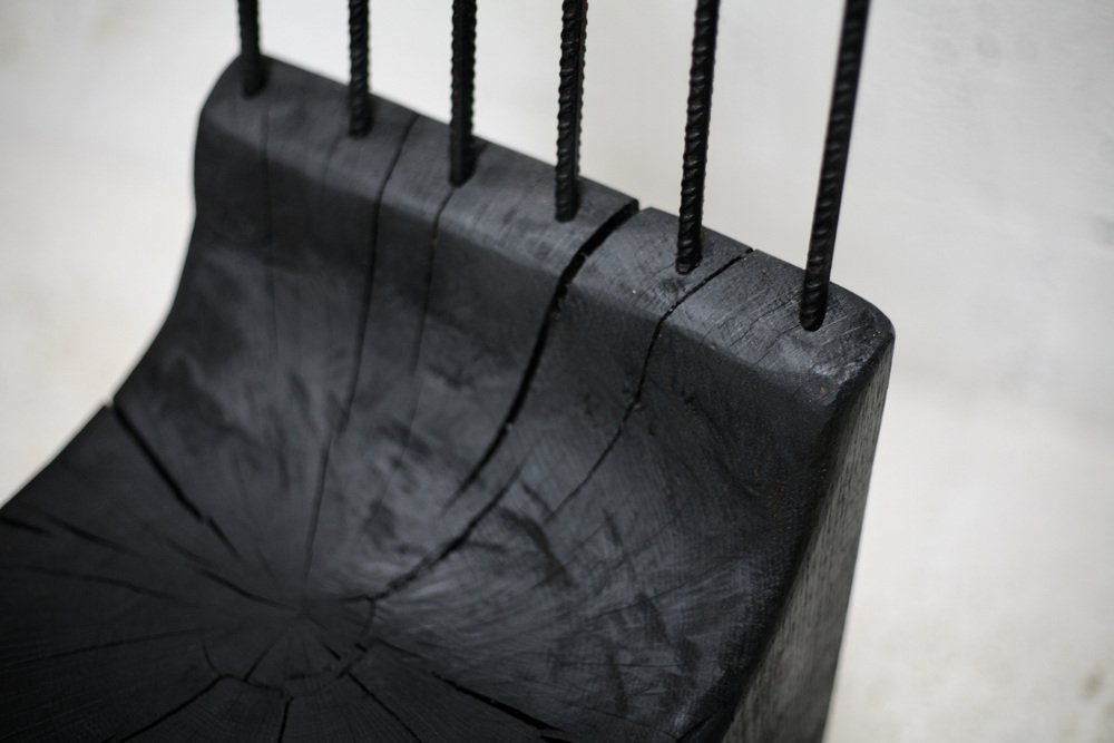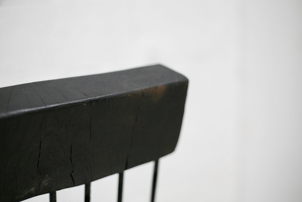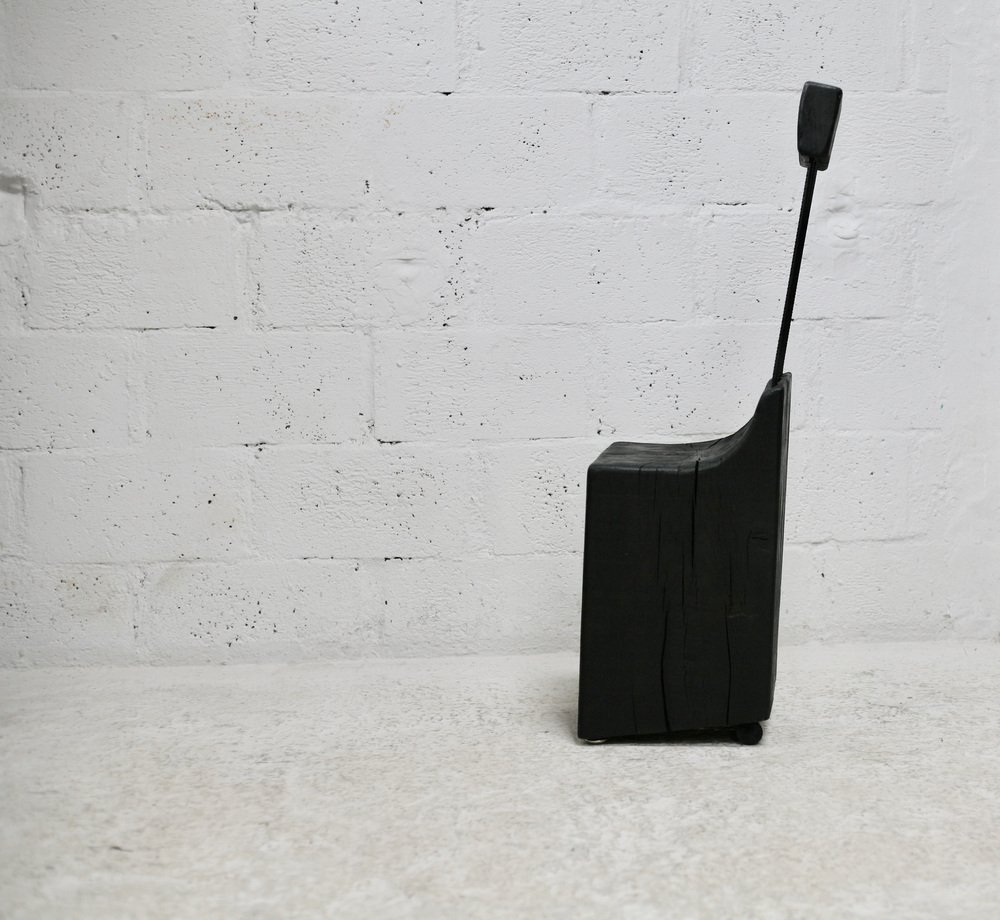 Brutalistischer Stuhl aus Schwarz gebeiztem Rohholz & Stahl, 1970er