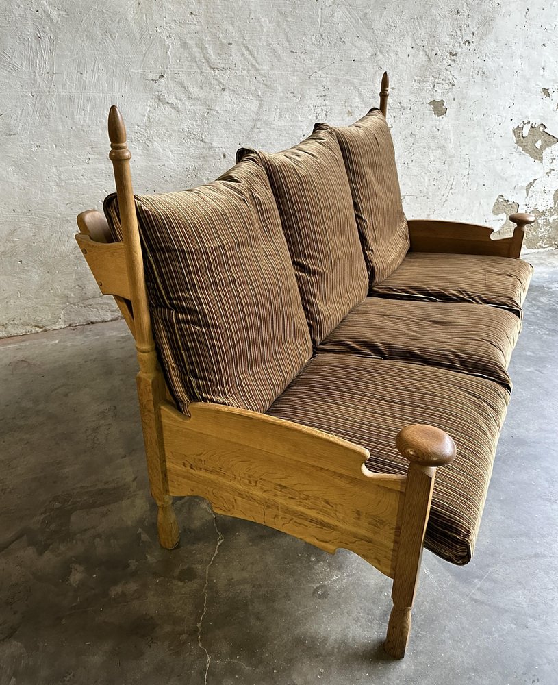 Brutalistisches Thronsofa aus Eiche & Samt im Stil von Guillerme Et Chambron, 1950er