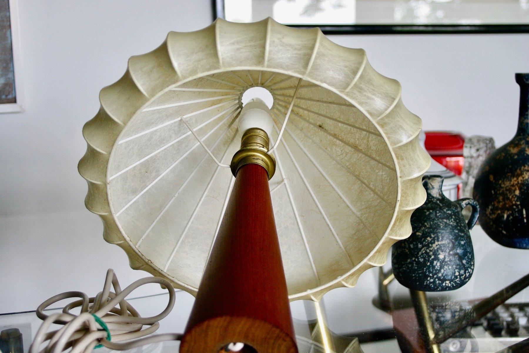 Cocoon Lampe mit Gestell aus Teak von Goldkant Leuchten, 1960er