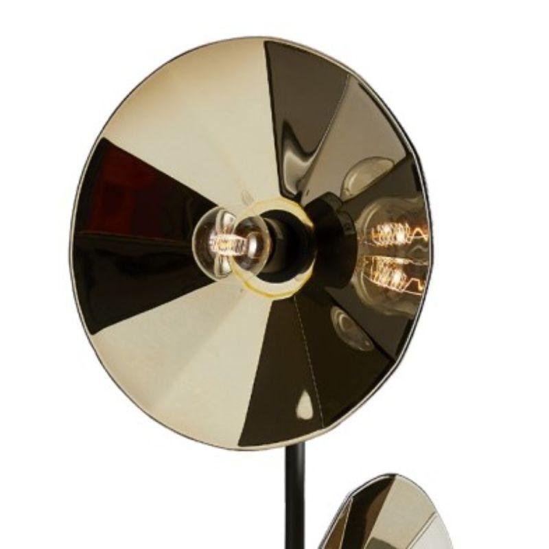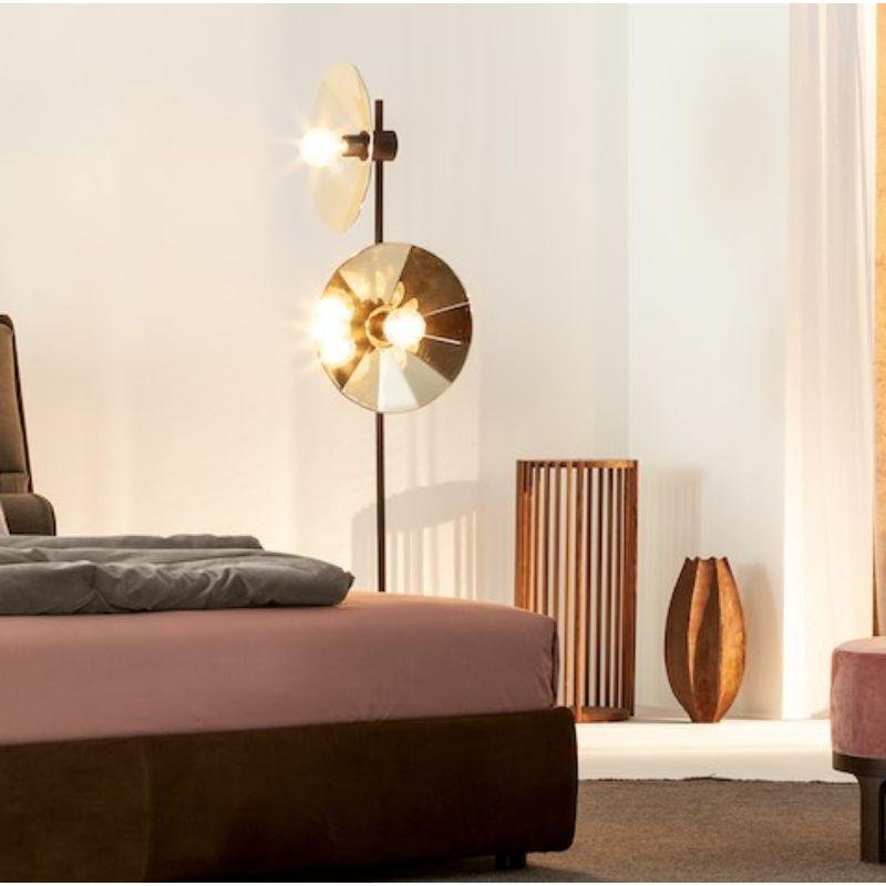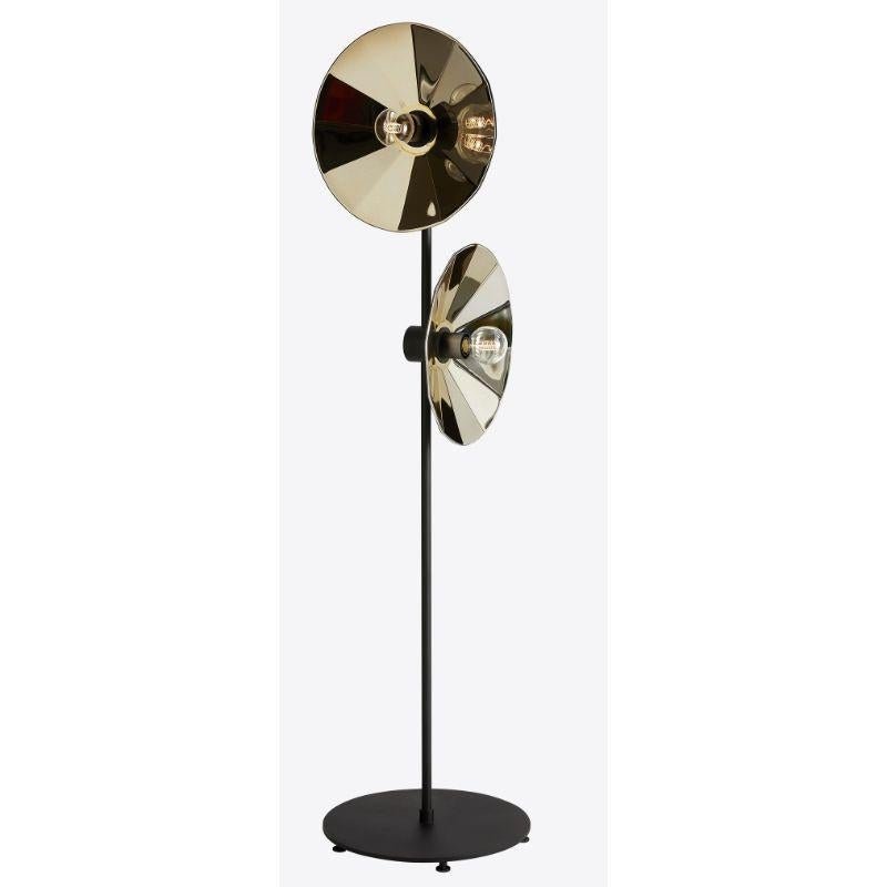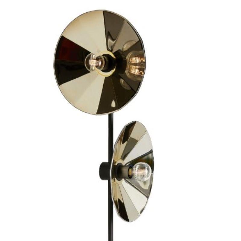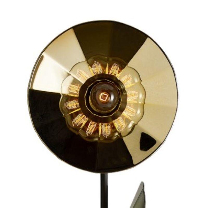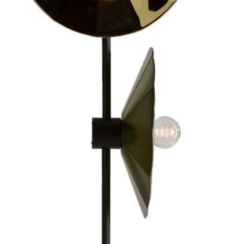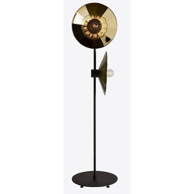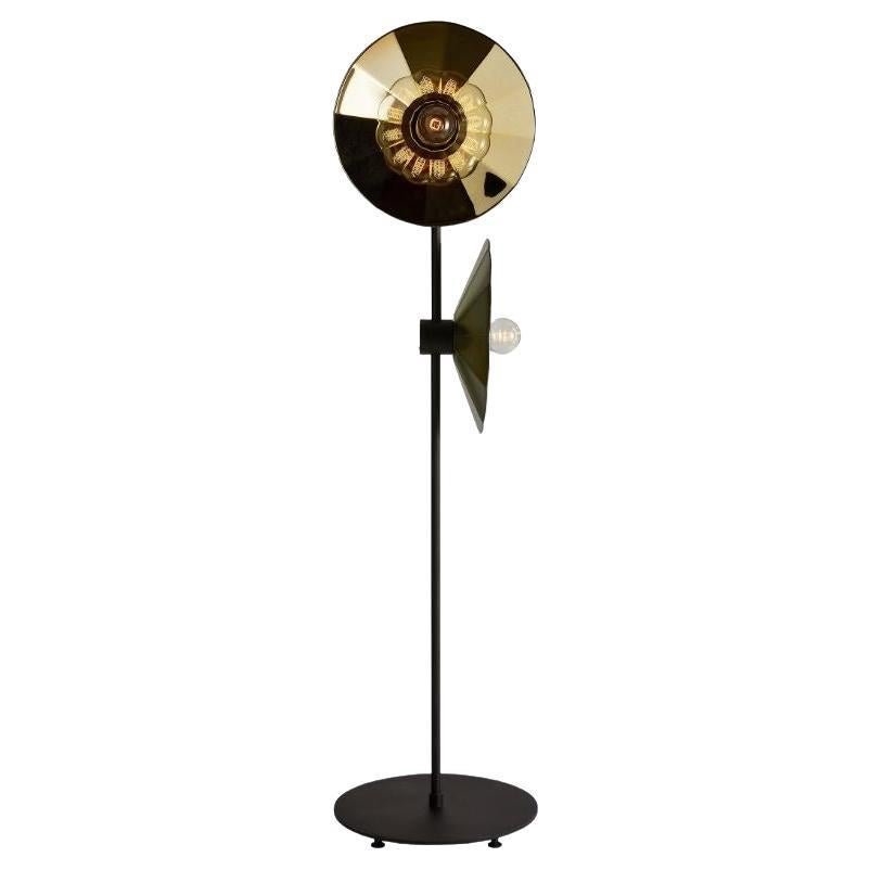 Cometa floor lamp by Radar (Handmade). Design: Bastien Taillard Materials: Thermoformed gold glass, matt black metal structure. Dimensions: D 40, H 160cm. Also Available: Fractale/zenith/nebbia/iris/echo versions, & in silver or bronze. All our lamps can be wired according to each country. If sold to the USA it will be wired for the USA for instance. Elegant, timeless, understated. The RADAR collection allows you to take a welcome break from the teeming world of objects and styles, and proposes practical, beautifully designed products made by aesthetes for aesthetes.