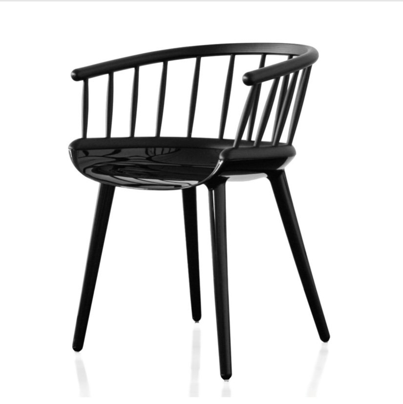 Der Cyborg Stick Chair von Magis besteht aus Polycarbonat, aber unter anderem auch aus Massivholz, was die Rückenlehne zu einem der langlebigsten Elemente macht. Beeindruckend ist auch die Farbauswahl, die von einer weißen Sitzfläche und Beinen bis hin zu einer ganz schwarzen Version reicht, die eine außergewöhnliche Eleganz ausstrahlt und heute zweifellos zu den beliebtesten Varianten gehört.
