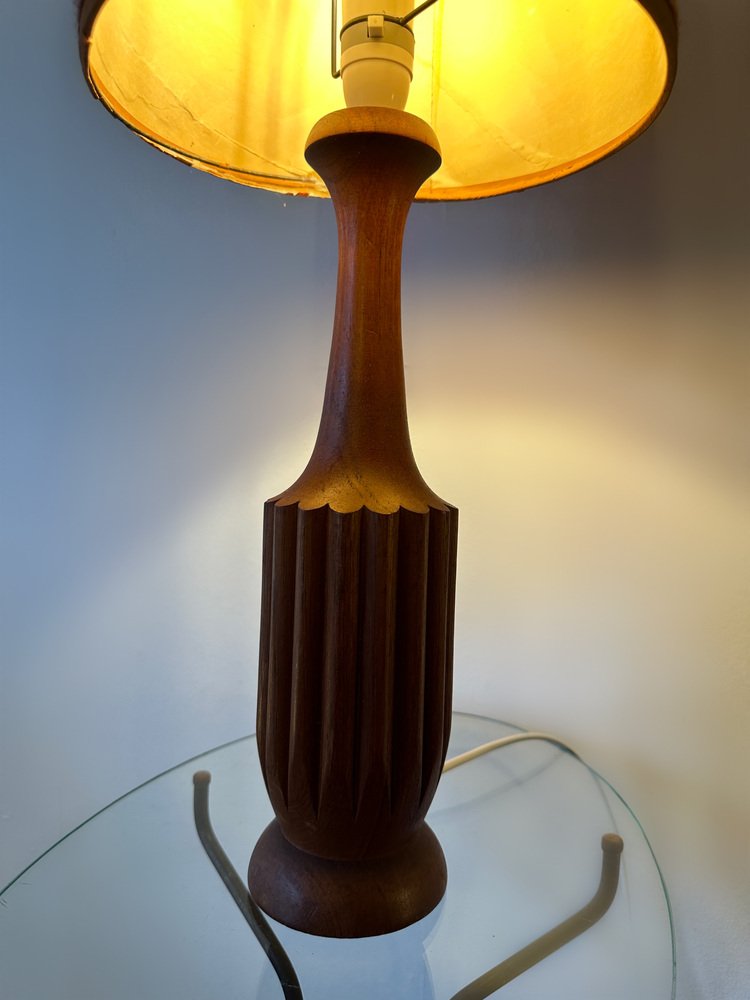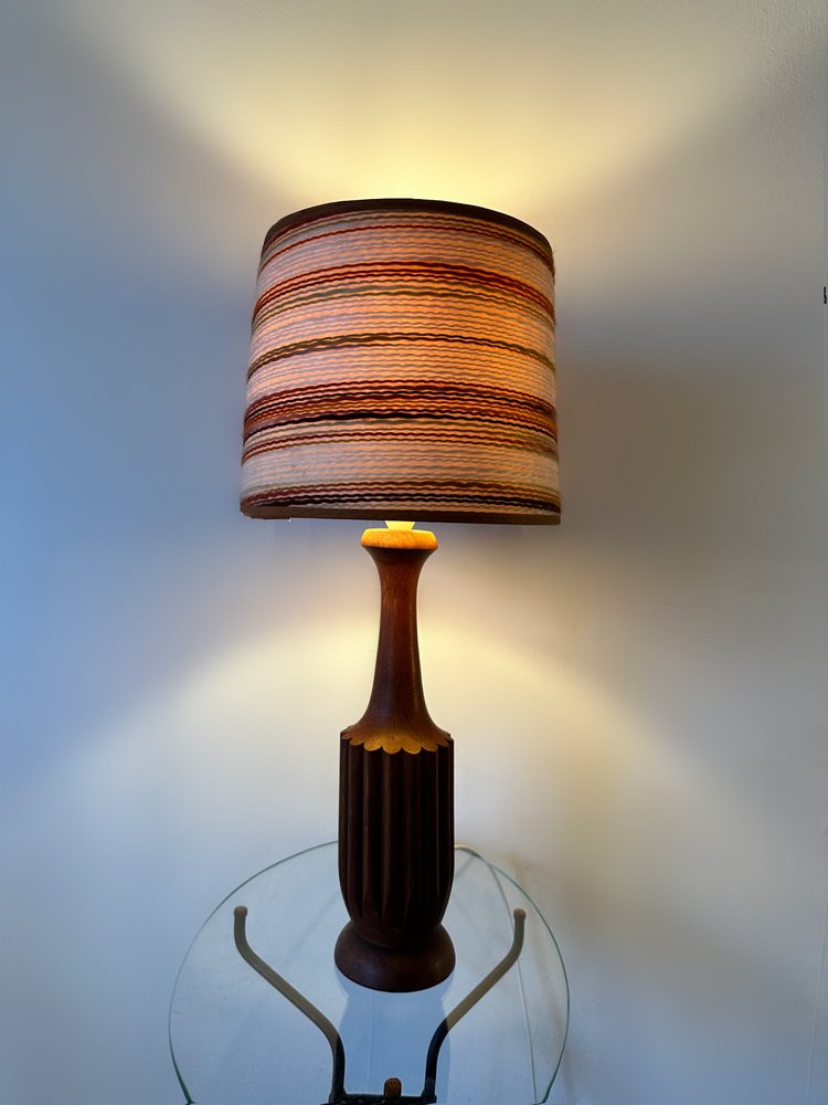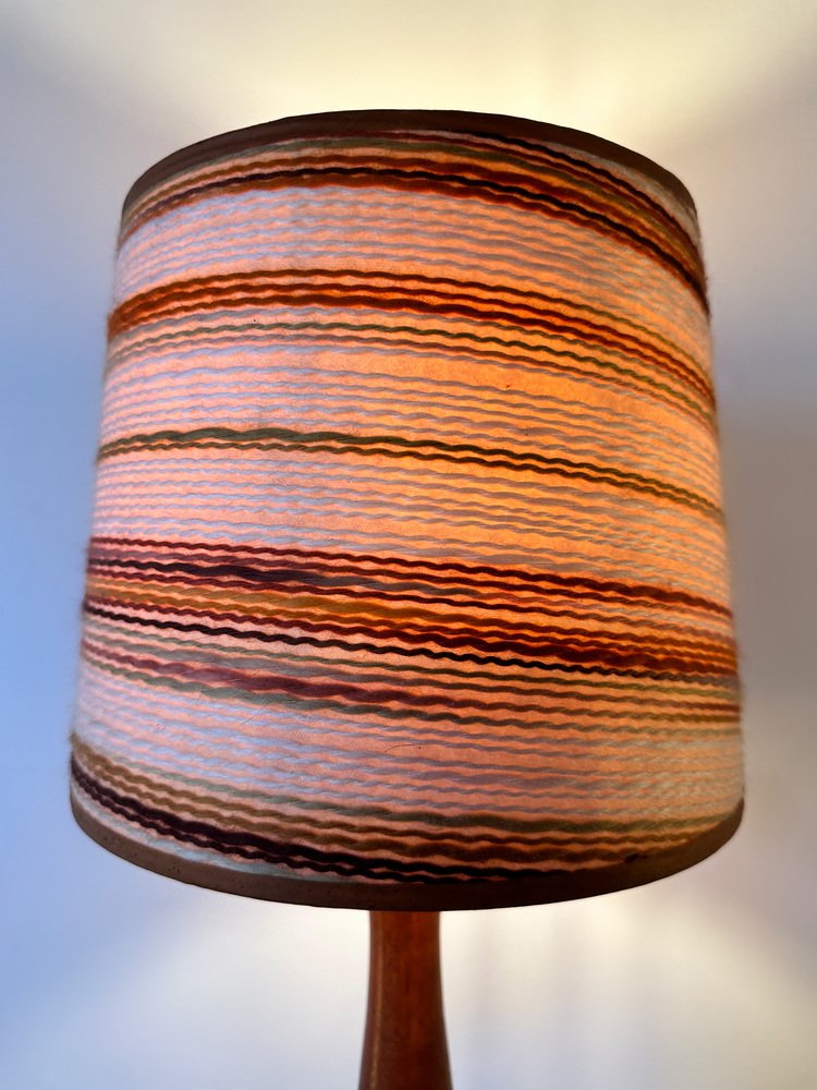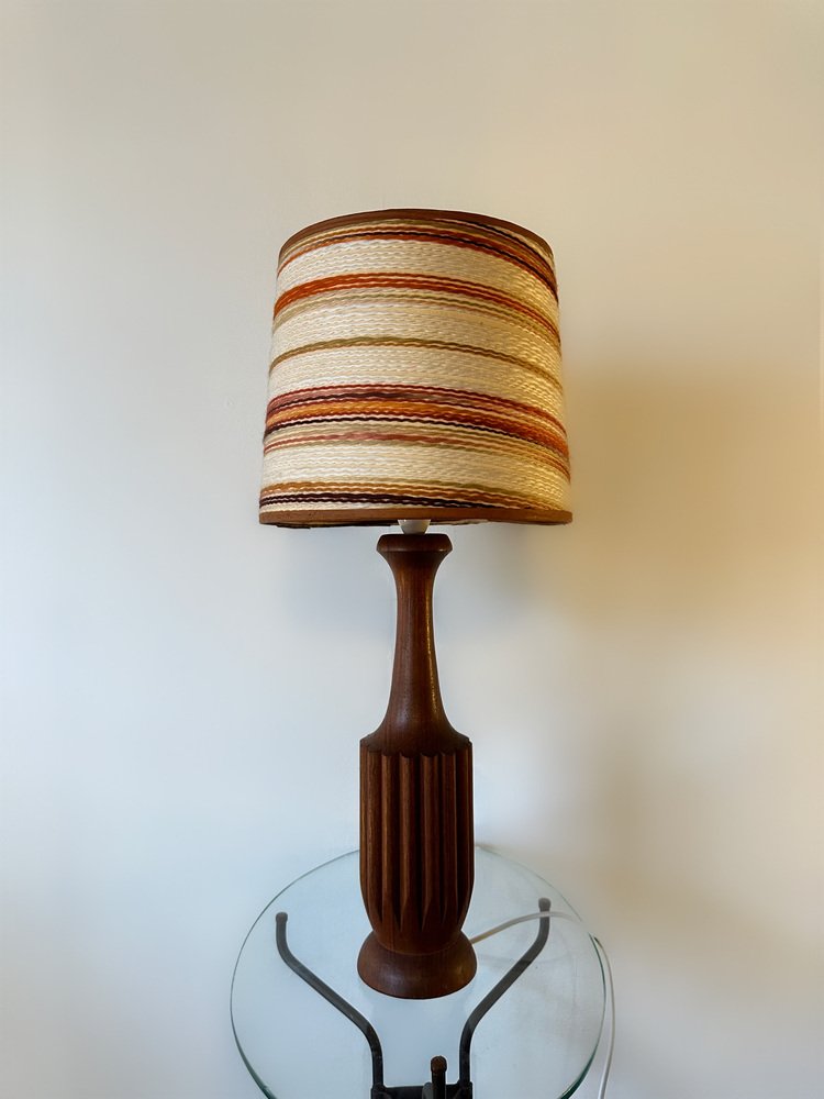 Dänische Mid-Century Teak Lampe mit Original Raffia Schirm, 1960er