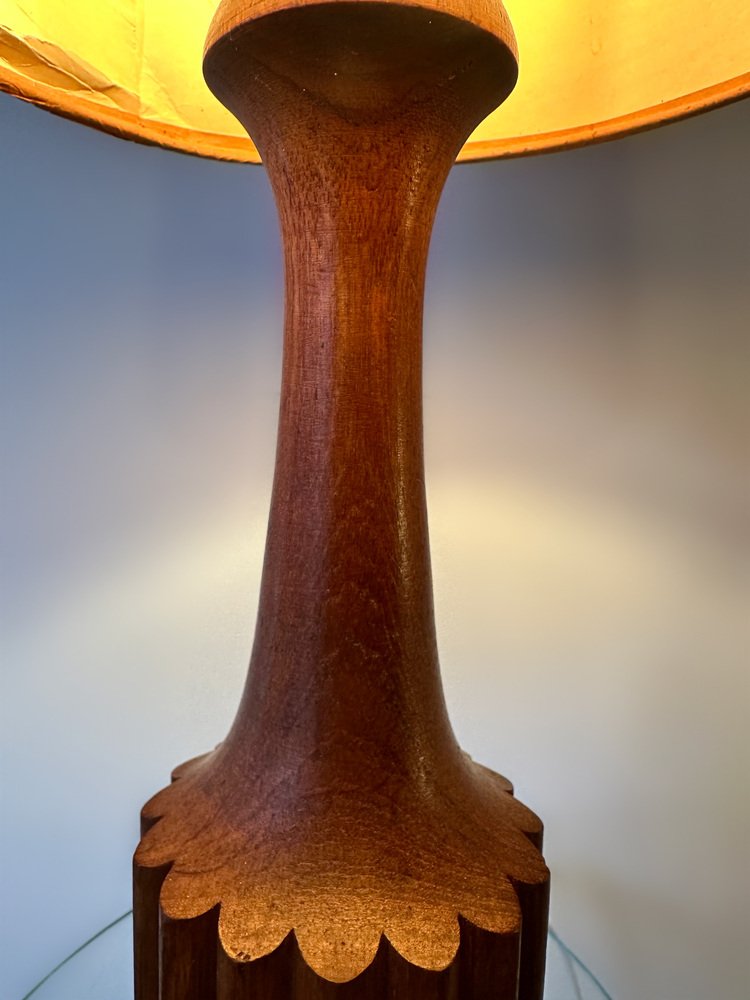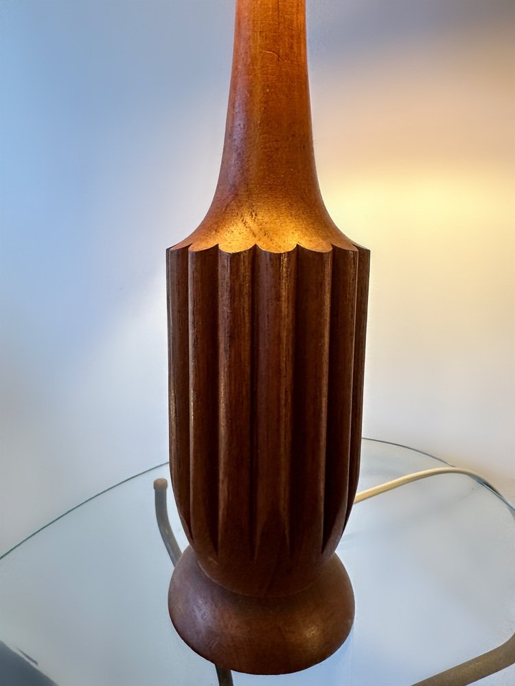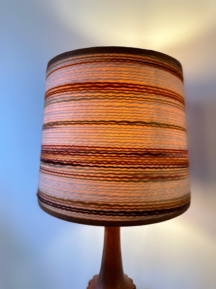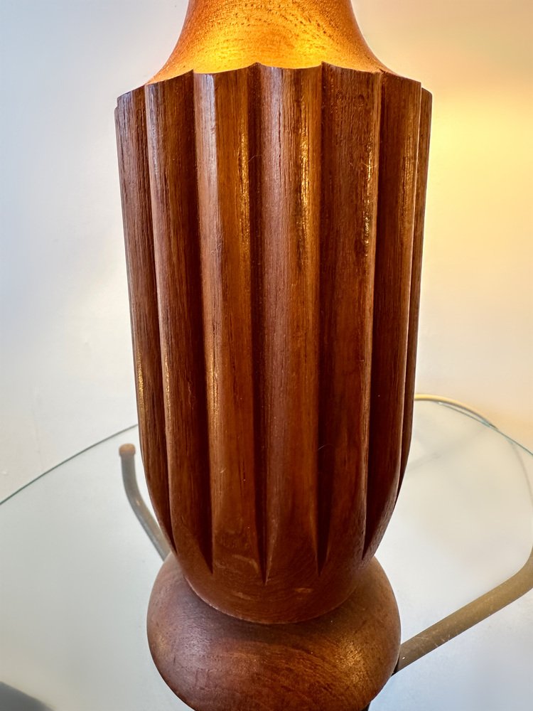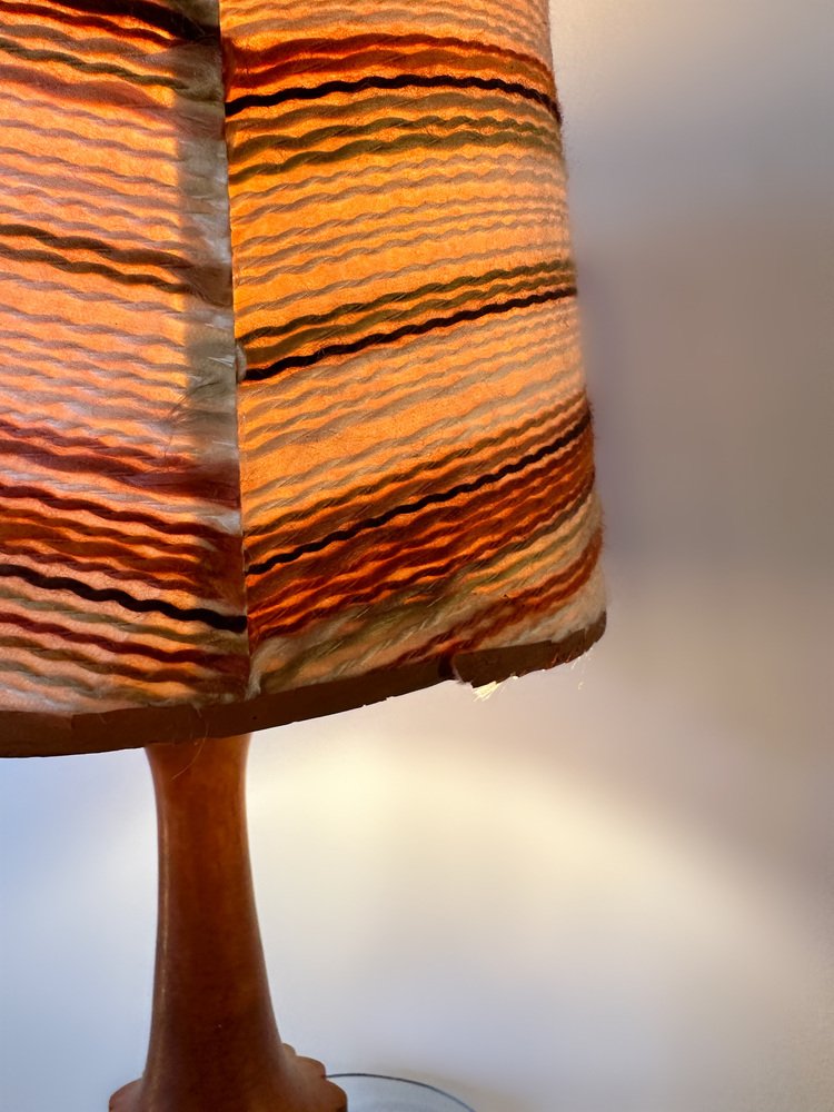Dänische Mid-Century Teak Lampe mit Original Raffia Schirm, 1960er